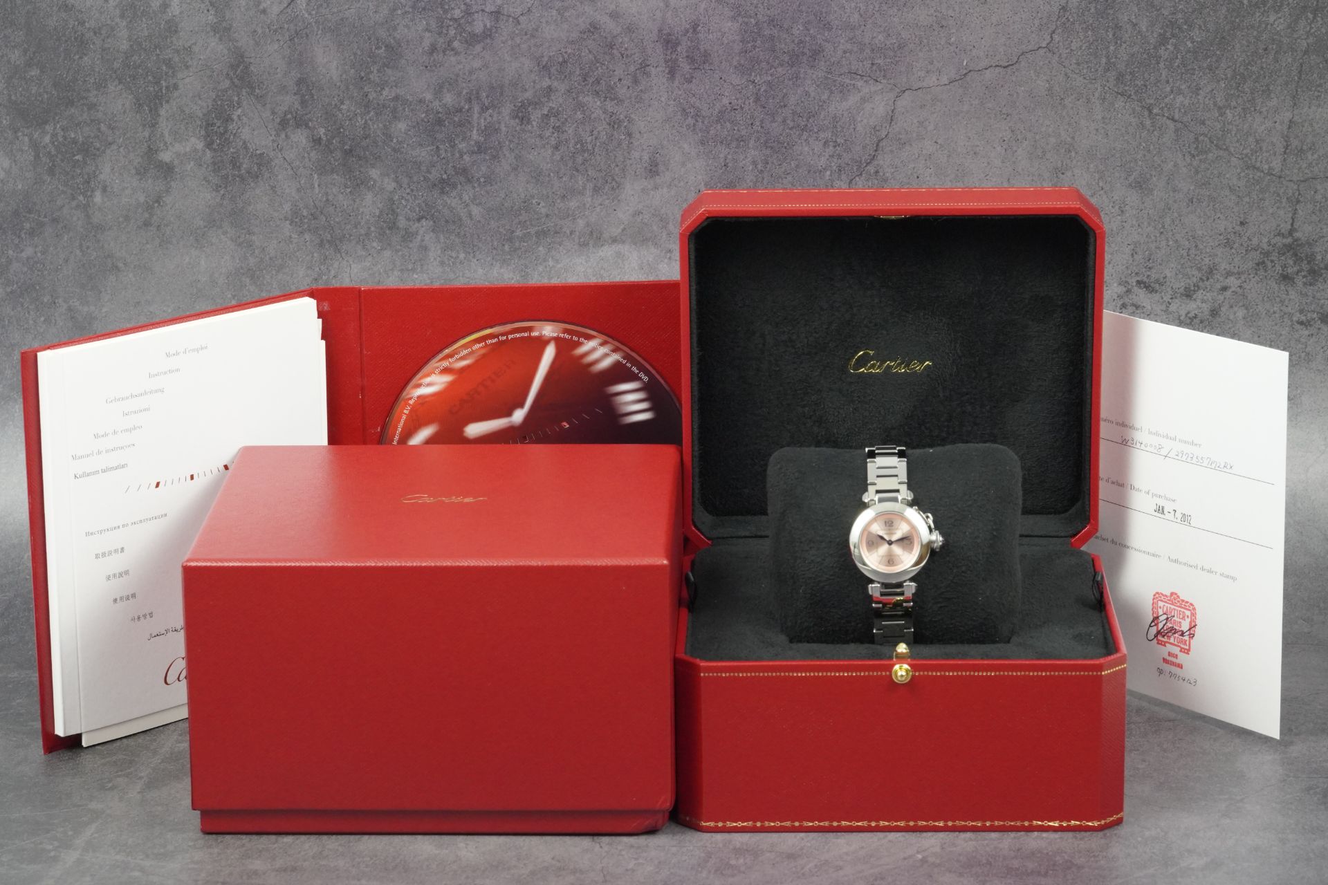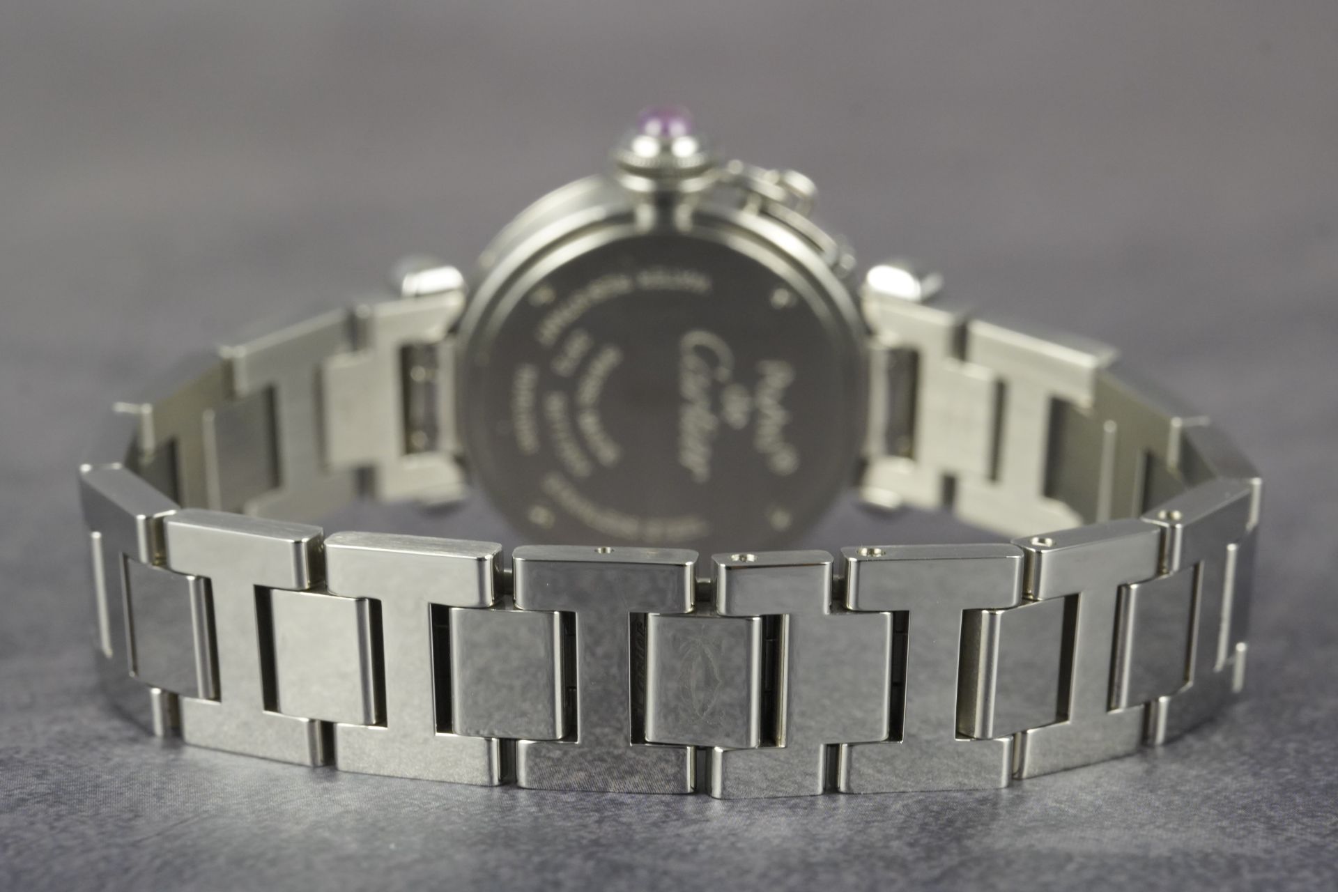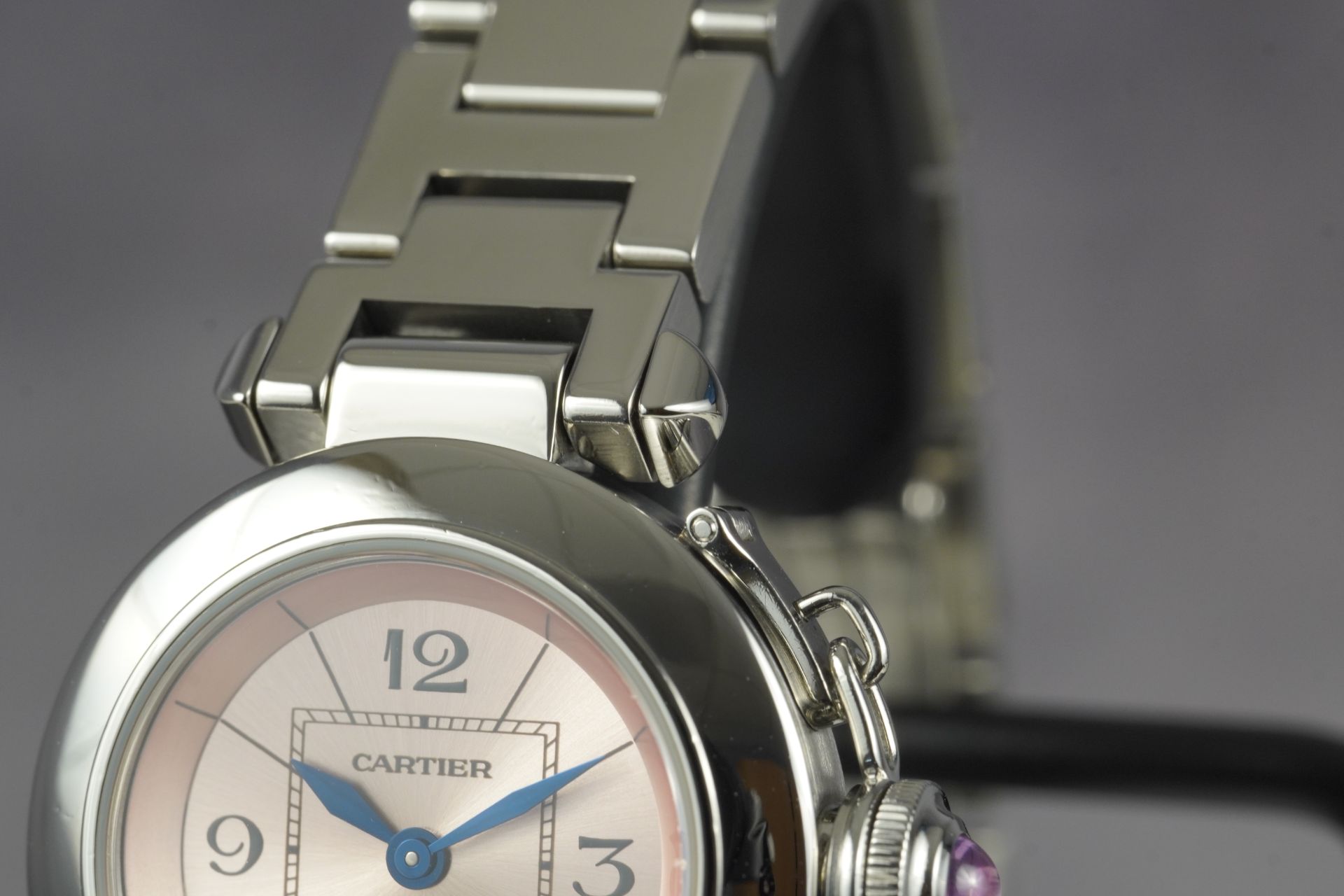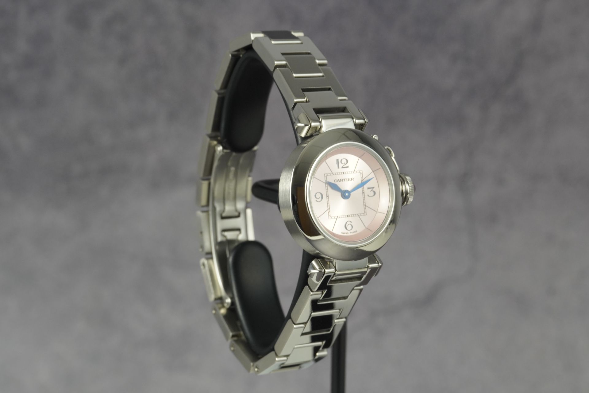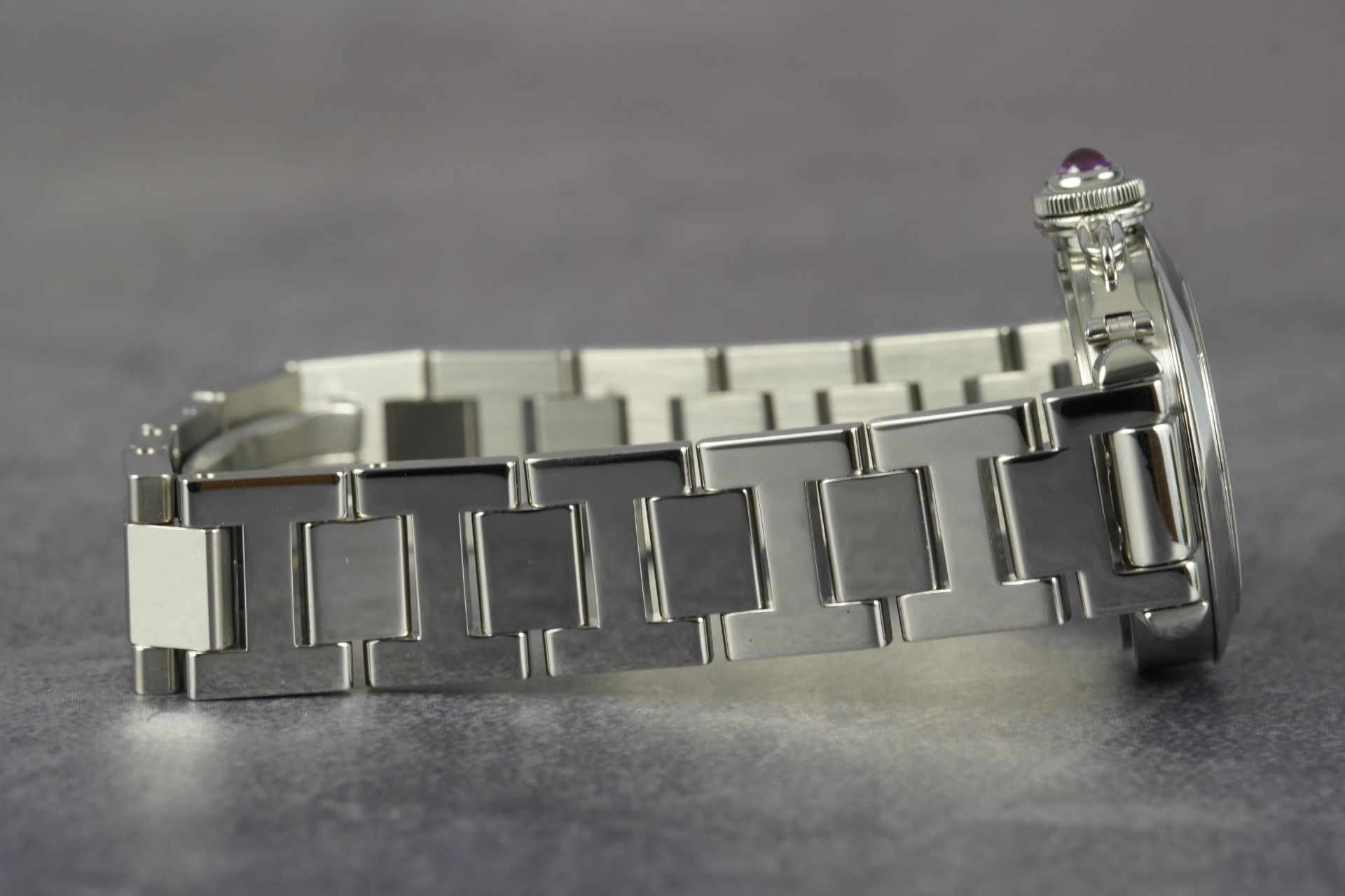 Découvrez l’élégance intemporelle de la montre Cartier Miss Pasha – référence 2973. Conçue spécialement pour la femme moderne, cette magnifique pièce arbore un boîtier en acier de 27 mm qui allie sophistication et robustesse. Son bracelet en acier, d’une taille de 16,5 cm, est à la fois confortable et résistant, tout en conservant une allure raffinée. La montre Miss Pasha se démarque par son design unique et son style chic, faisant d’elle un accessoire incontournable pour toutes les occasions. Avec sa boucle et son bracelet d’origine, cette montre incarne le savoir-faire exceptionnel de Cartier. Offrez-vous ou offrez à un être cher un symbole de luxe et d’élégance avec cette montre à la personnalité affirmée.