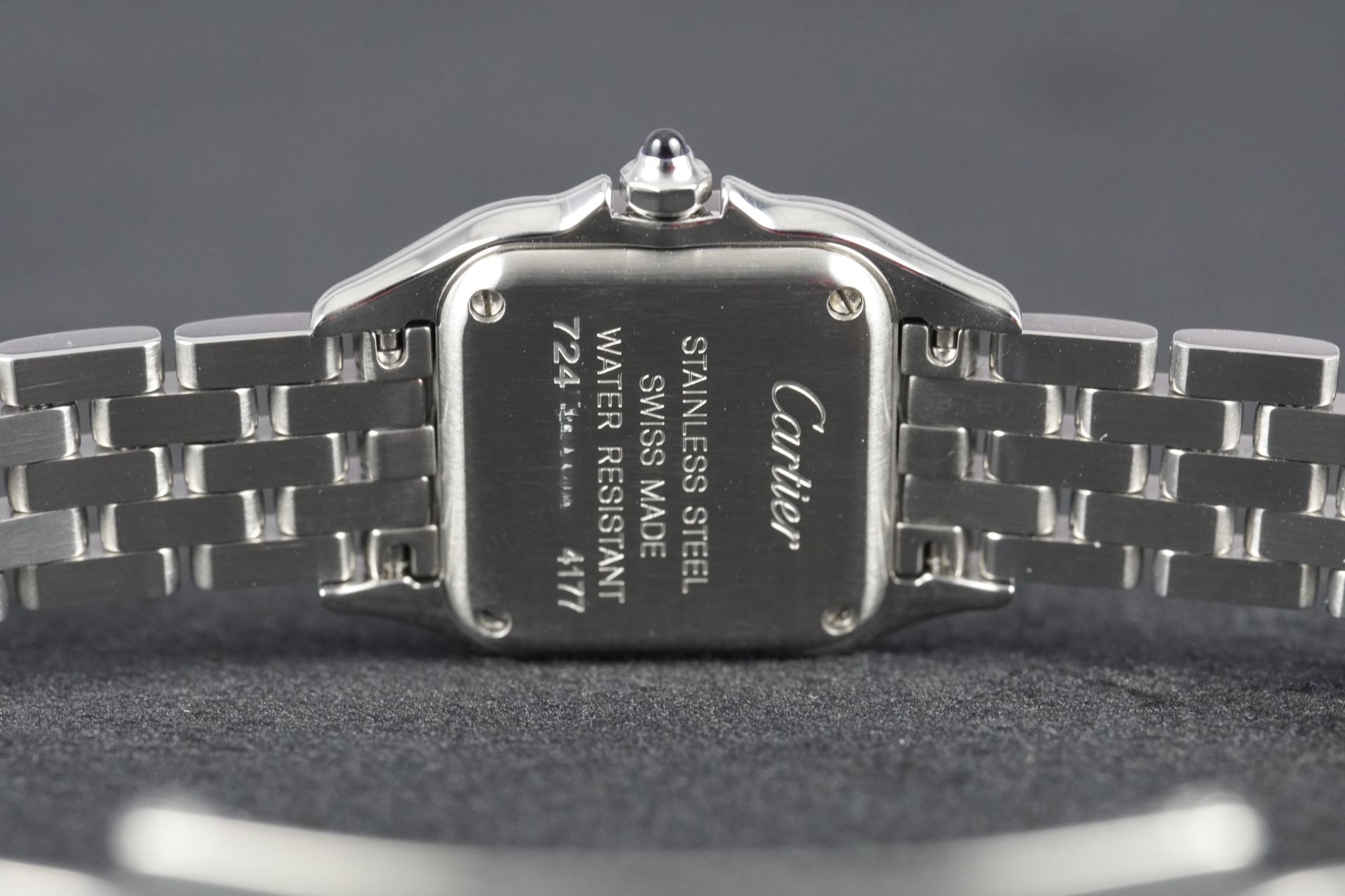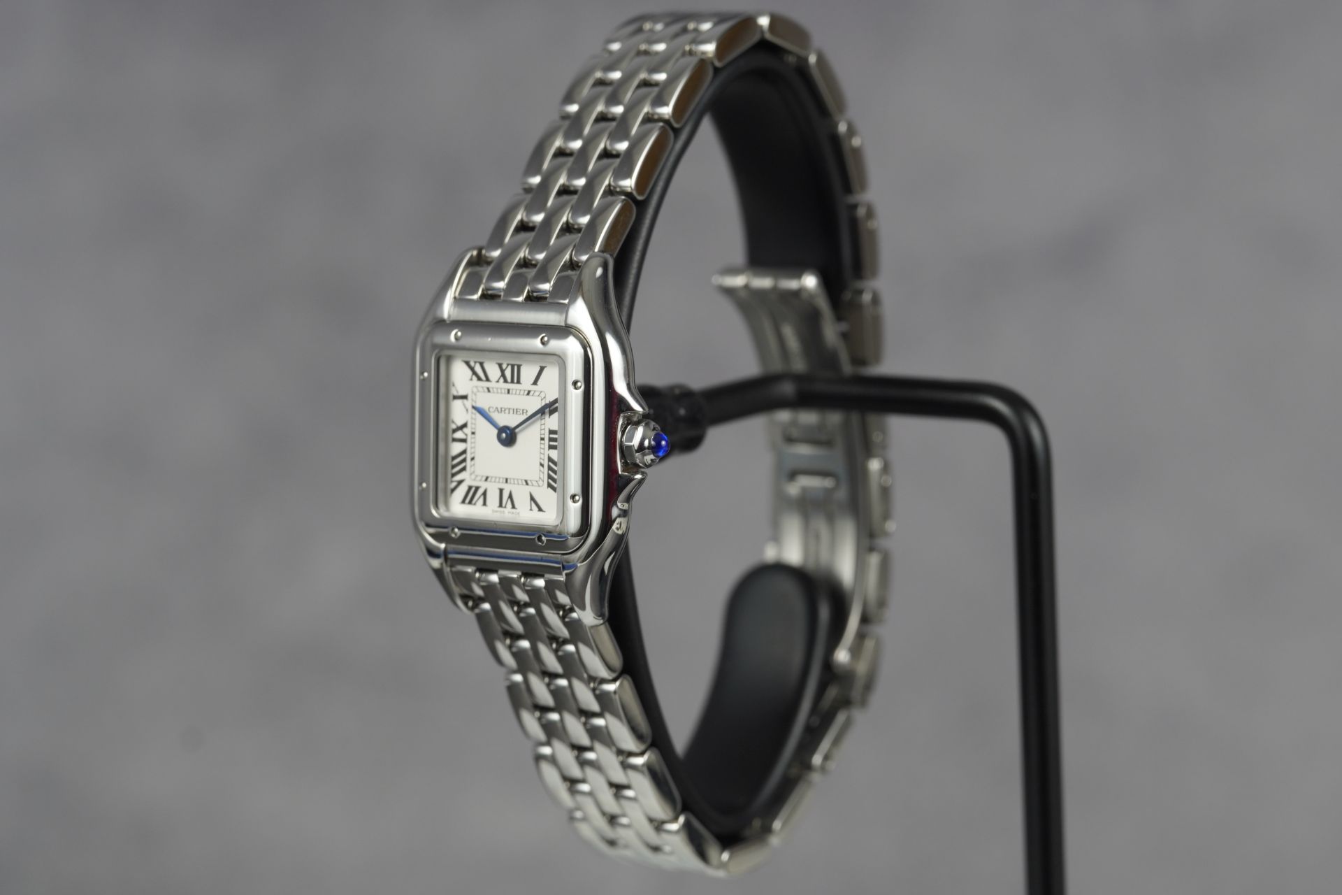 Découvrez la montre Cartier Panthère 4177 – WSPN0006, un véritable bijou d’horlogerie dédié à la femme moderne. Avec son boîtier délicat de 22 mm et son élégant bracelet en acier de 17 cm, elle allie finesse et robustesse avec brio. Ce modèle emblématique de Cartier se distingue par son design intemporel et sa qualité exceptionnelle, faisant de chaque instant une véritable déclaration de style. Sa boucle et son bracelet originaux garantissent un confort optimal, tout en ajoutant une touche de sophistication à n’importe quelle tenue. Que ce soit pour une occasion spéciale ou un usage quotidien, la Panthère illumine votre poignet avec grâce et assurance. Ne manquez pas l’opportunité d’ajouter cette pièce maîtresse à votre collection!