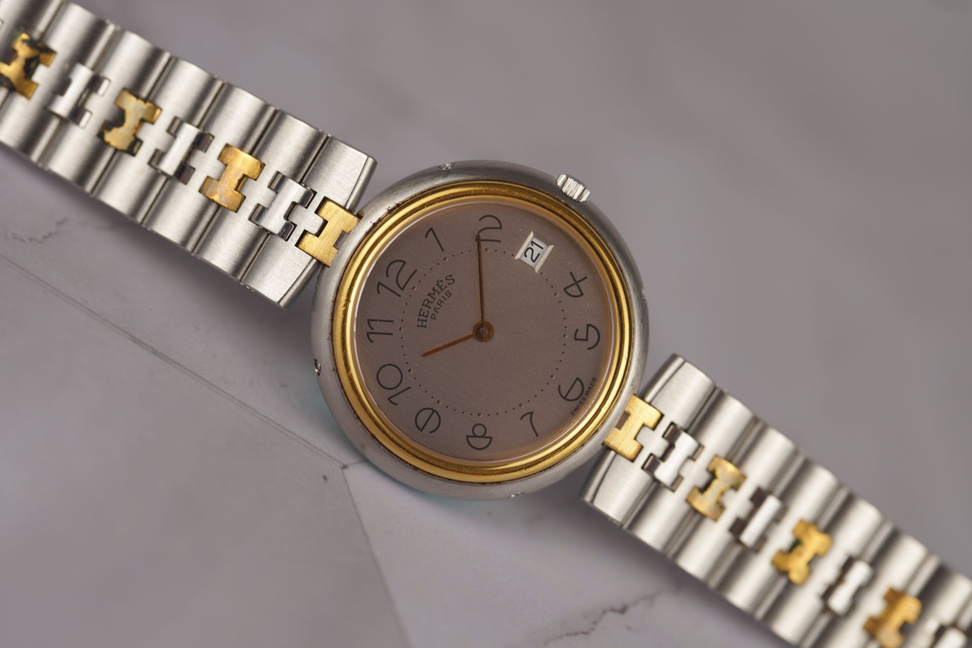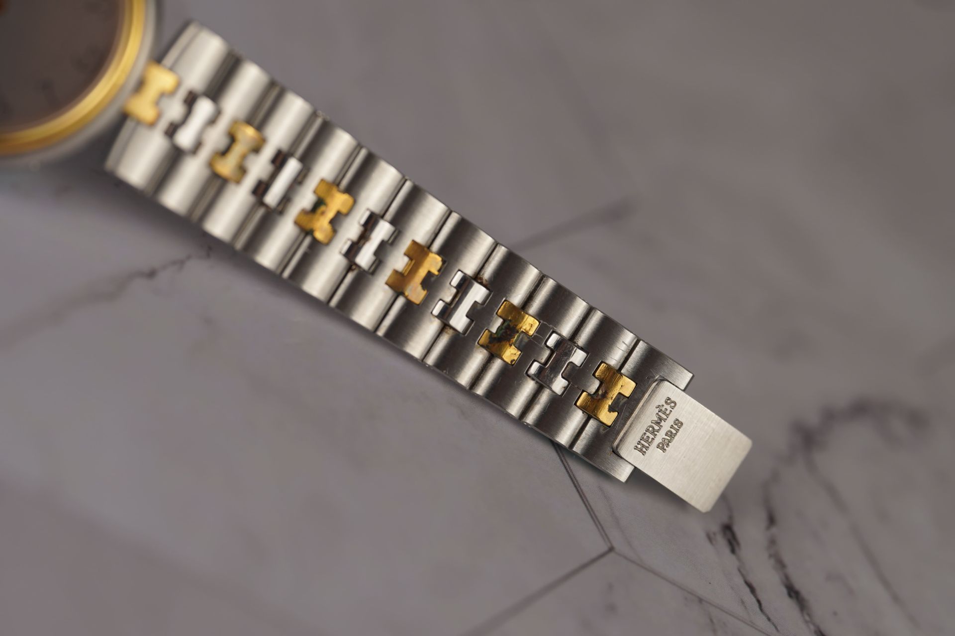 Découvrez l’élégance intemporelle de la montre Hermès Profile, conçue spécialement pour les femmes modernes. Avec son boîtier en acier d’un diamètre de 32,5 mm, cette montre allie sophistication et robustesse. Son bracelet en acier de 17 cm, à la fois luxueux et confortable, garantit un ajustement parfait à votre poignet. Chaque détail, du bracelet à la boucle, est signé Hermès, attestant de l’authenticité et du savoir-faire exceptionnel de la marque. Que ce soit pour une soirée chic ou une journée au bureau, la montre Profile saura rehausser votre élégance avec subtilité et raffinement. Faites de cette pièce emblématique un incontournable de votre collection.
