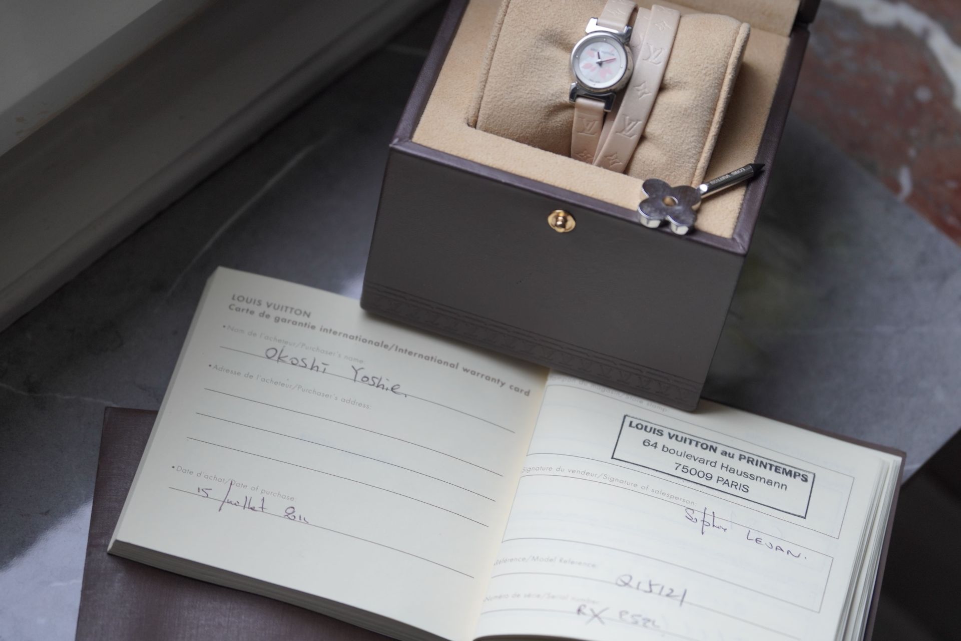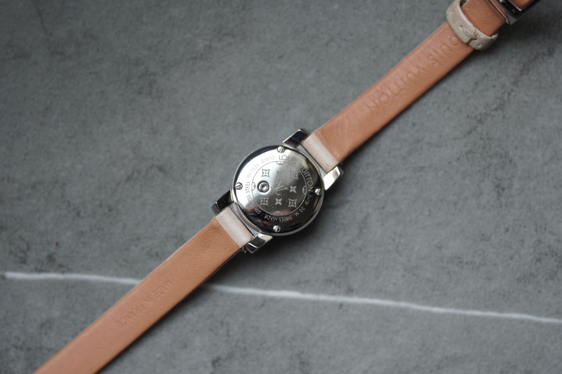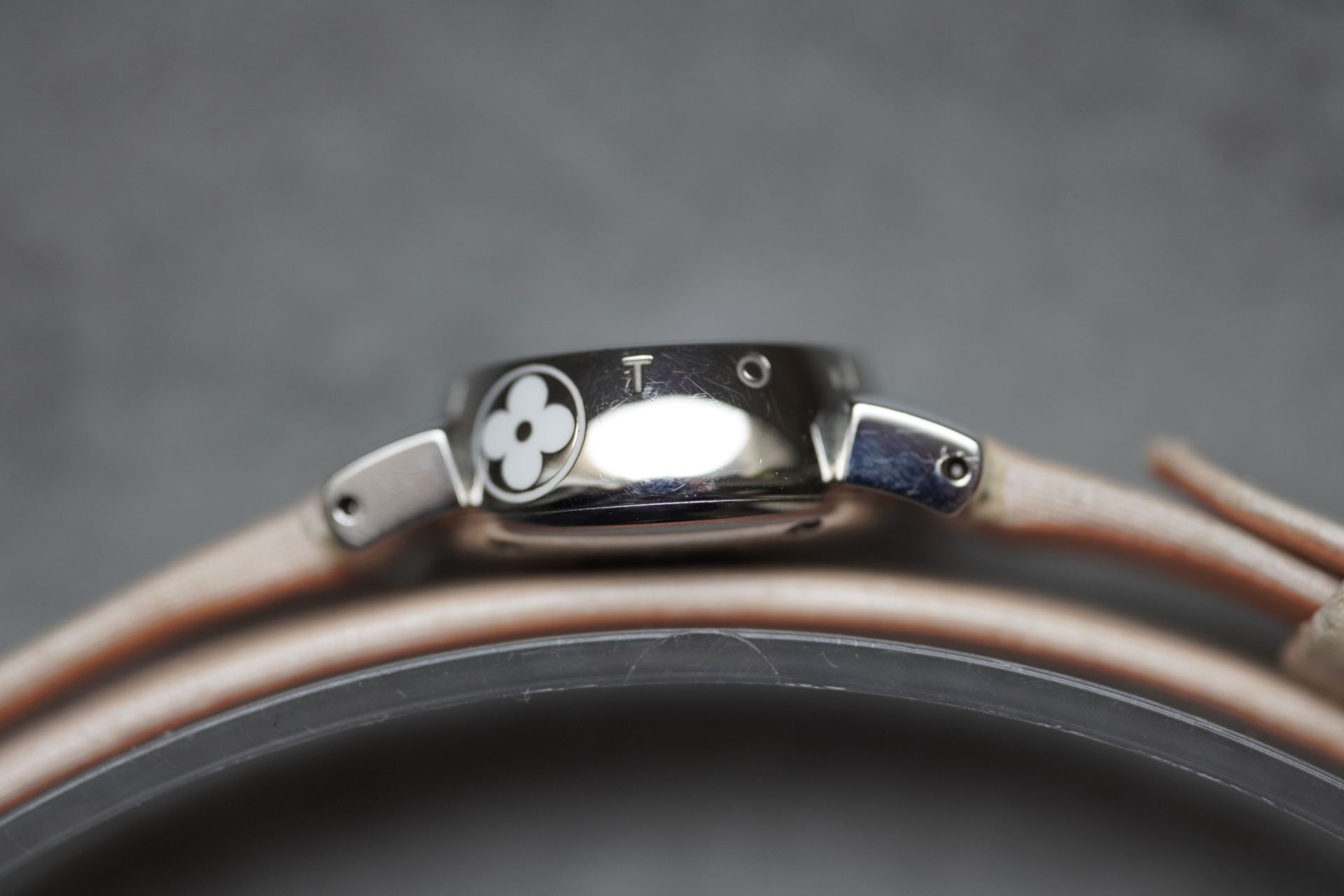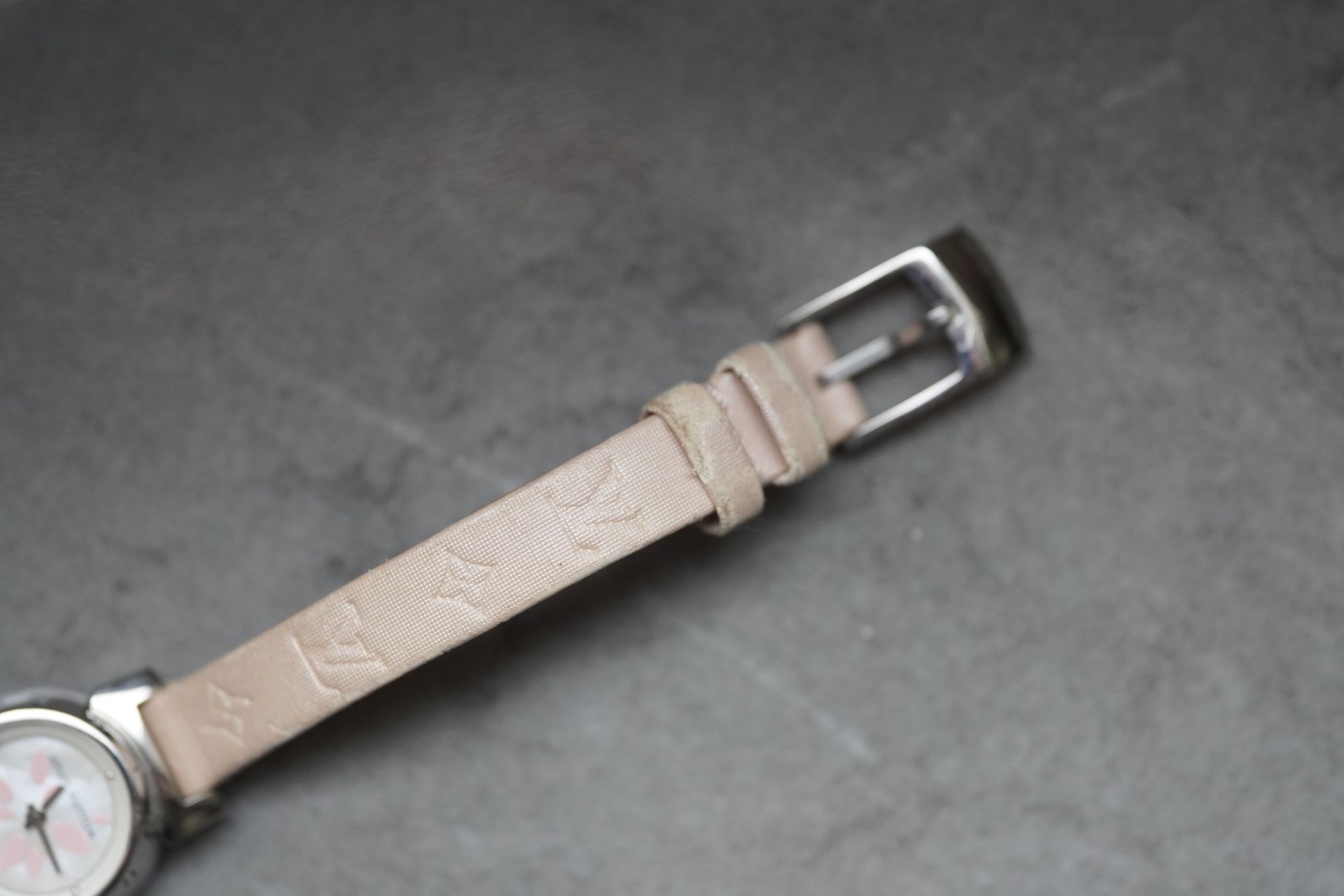 Découvrez l’élégance discrète avec la Louis Vuitton Tambour Petal, Référence Commerciale Q1512. Cette montre pour femme, référence TOT-10365, allie subtilement le raffinement horloger à l’esthétique distinctive de la Maison. Son boîtier en acier de 18 mm de diamètre et 7.7 mm d’épaisseur abrite un mouvement à quartz d’une fiabilité éprouvée. Le bracelet original en cuir rose, accompagné d’une boucle ardillon originale, souligne une féminité délicate. D’une étanchéité de 3 ATM, cette pièce en bon état de 2011 est proposée avec son contenu complet et bénéficie d’une garantie de 12 mois.