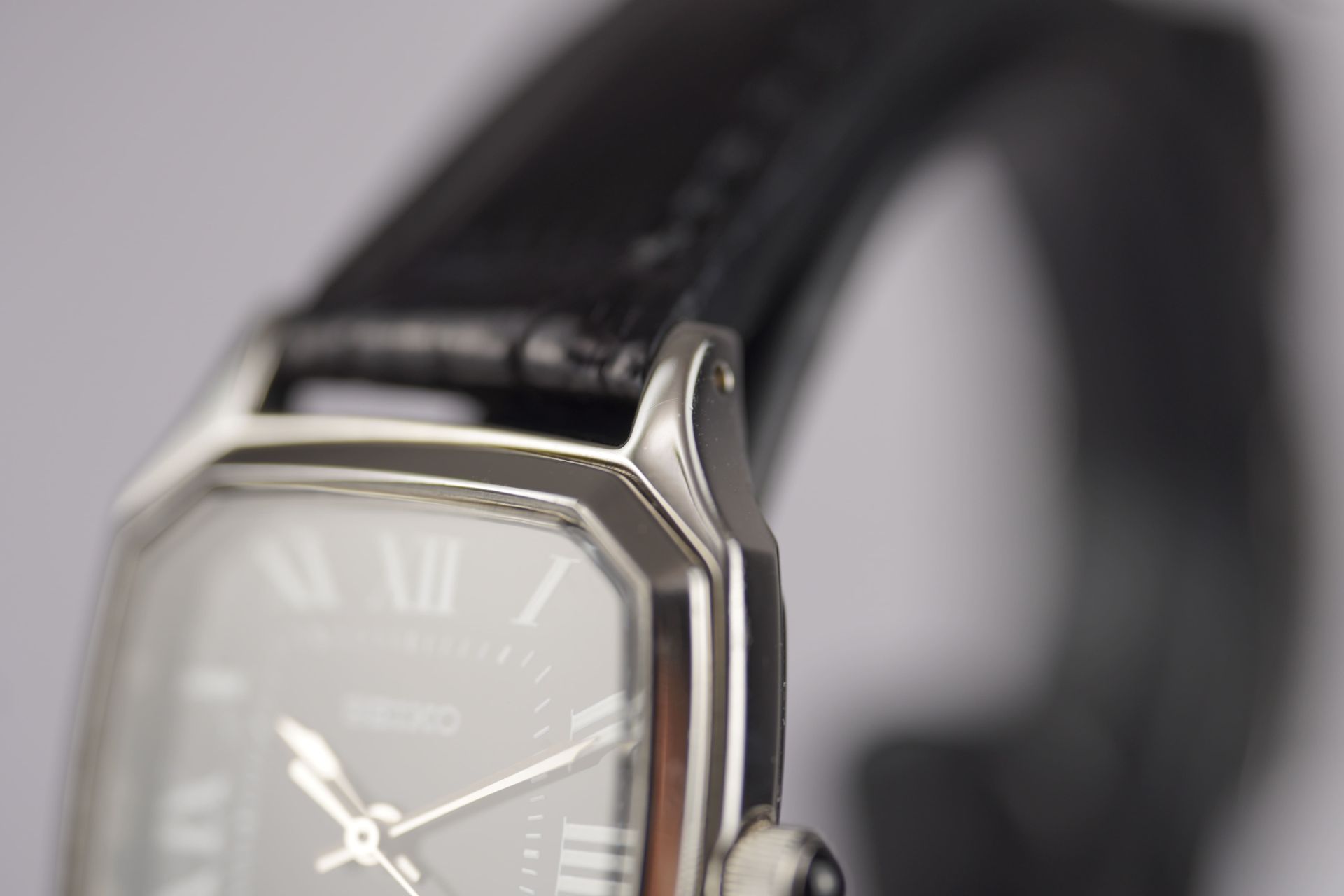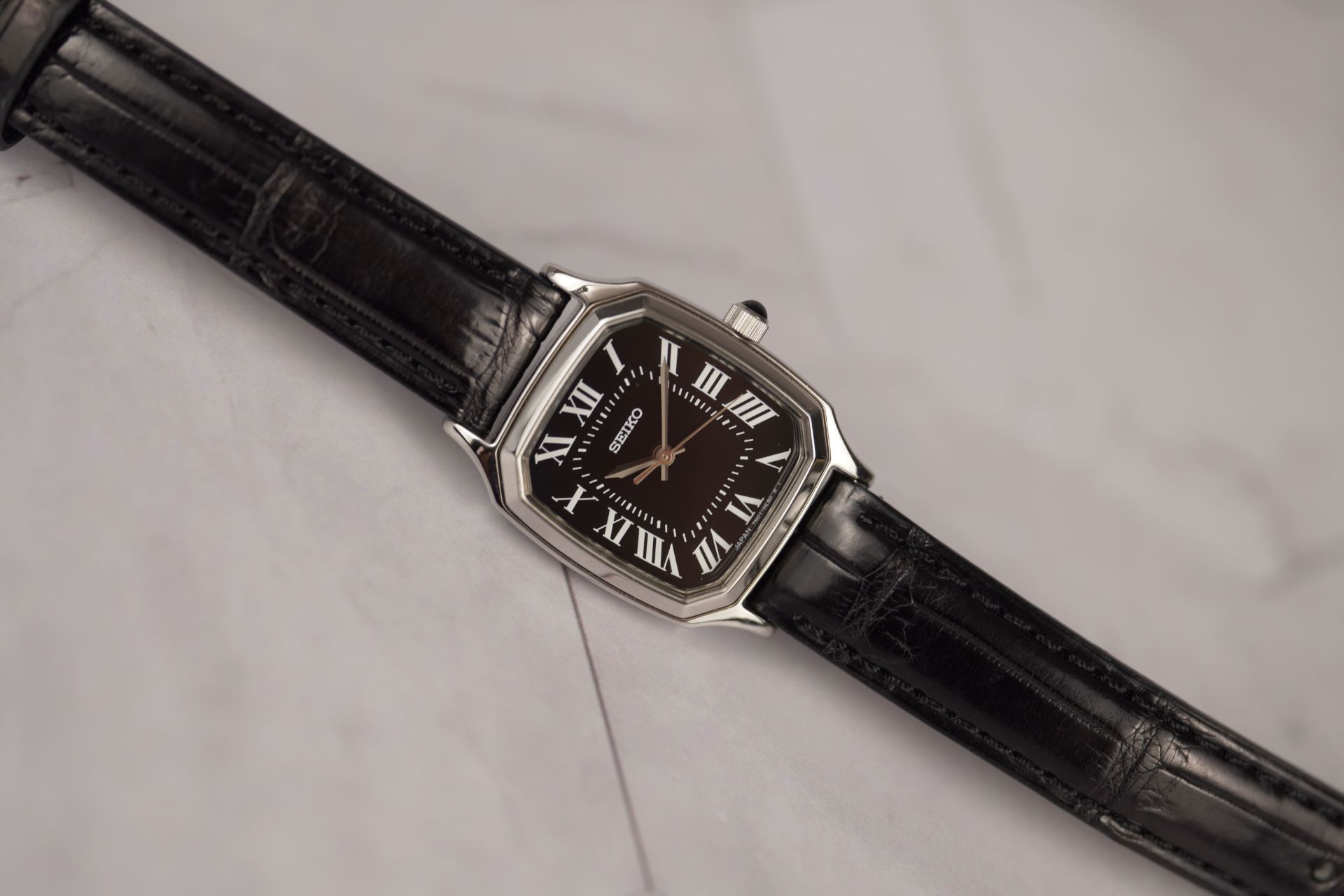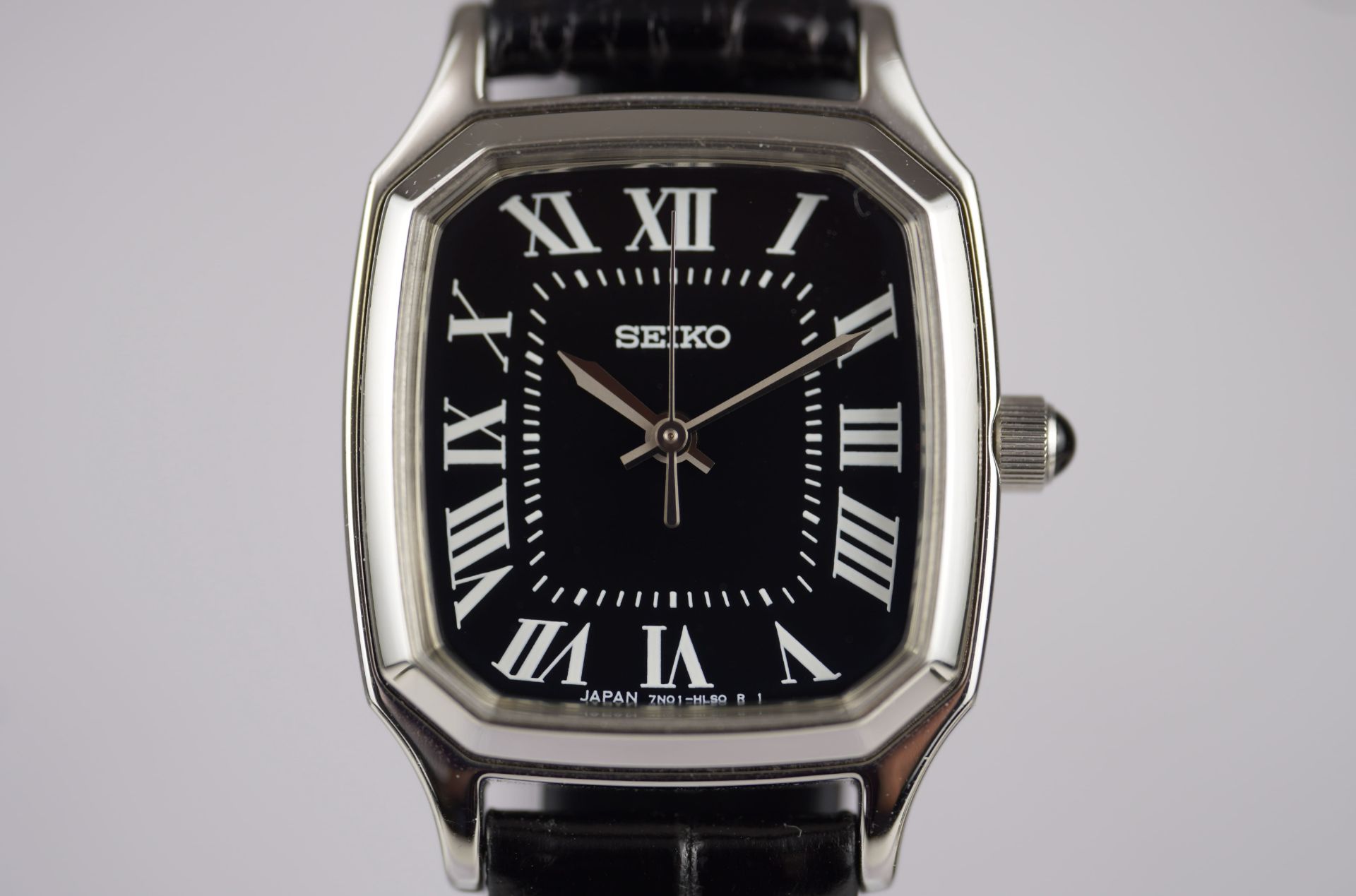 Découvrez l’élégance discrète avec cette montre Seiko Shinzone Quartz pour femme, référence commerciale 7N01-HAD0. Son boîtier raffiné en acier de 23.2mm de diamètre et d’une épaisseur de 6.2mm abrite un mouvement à quartz précis. Le bracelet en cuir noir, d’origine, assure un confort optimal, tandis que l’étanchéité de 3 ATM la protège des éclaboussures. Cette pièce est livrée seule. Bien que sa boucle ardillon ait été remplacée, son bon état général et sa garantie de 12 mois témoignent de sa qualité intemporelle.