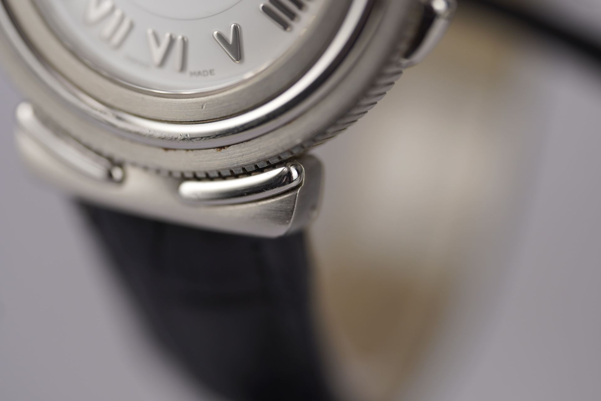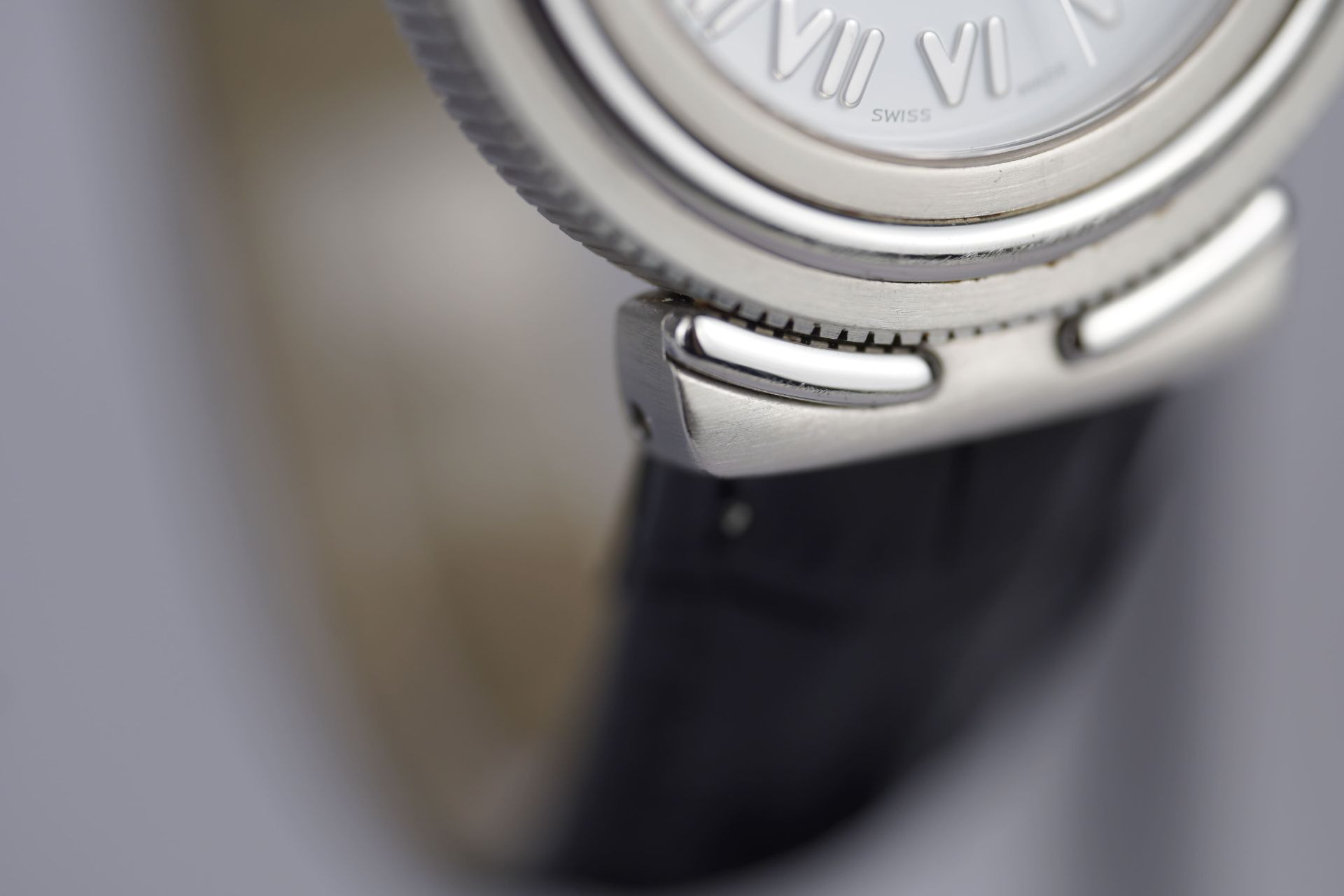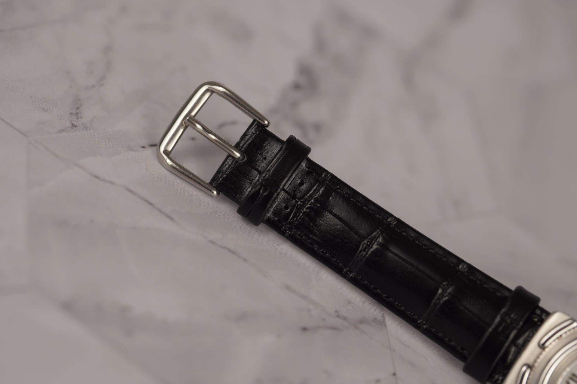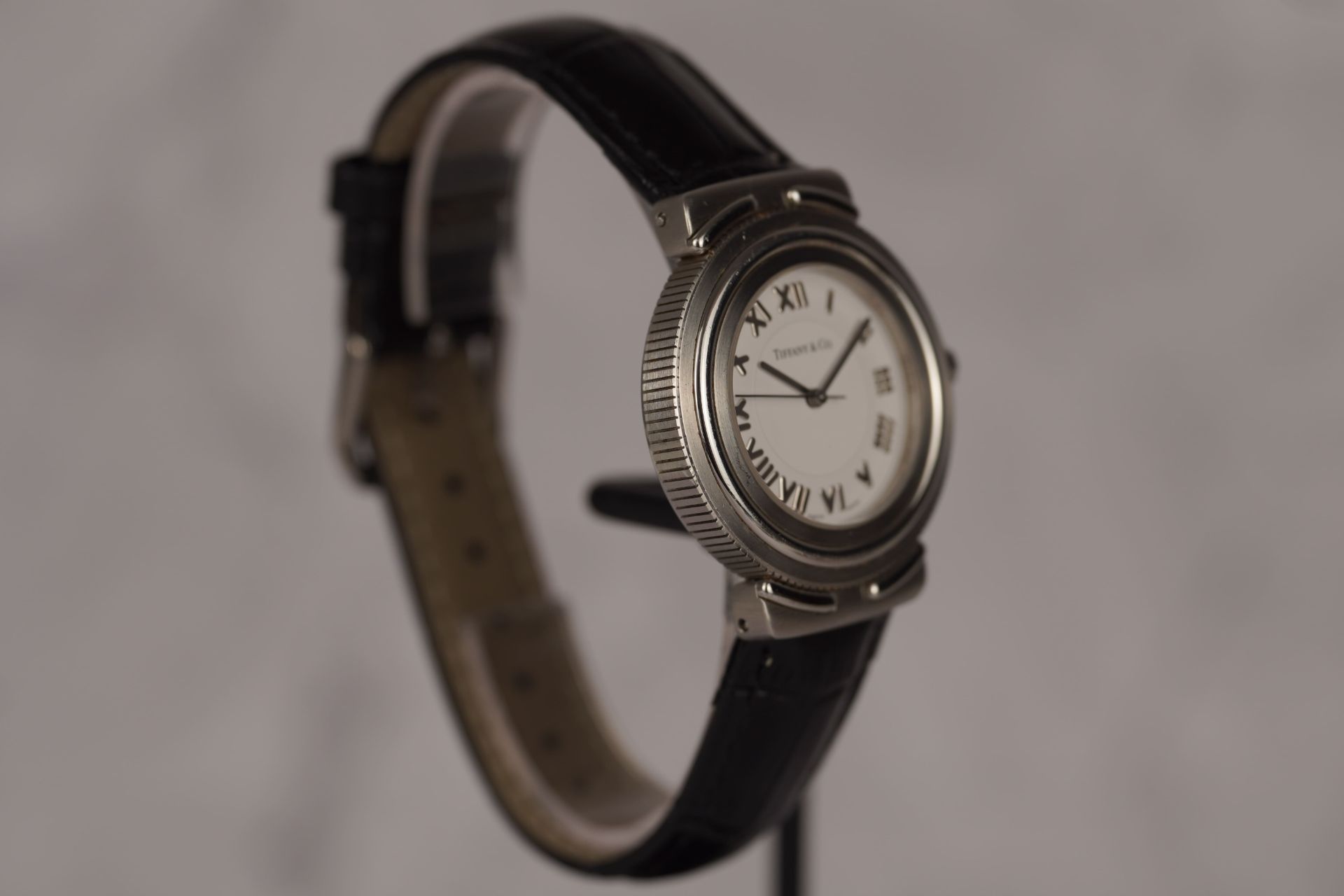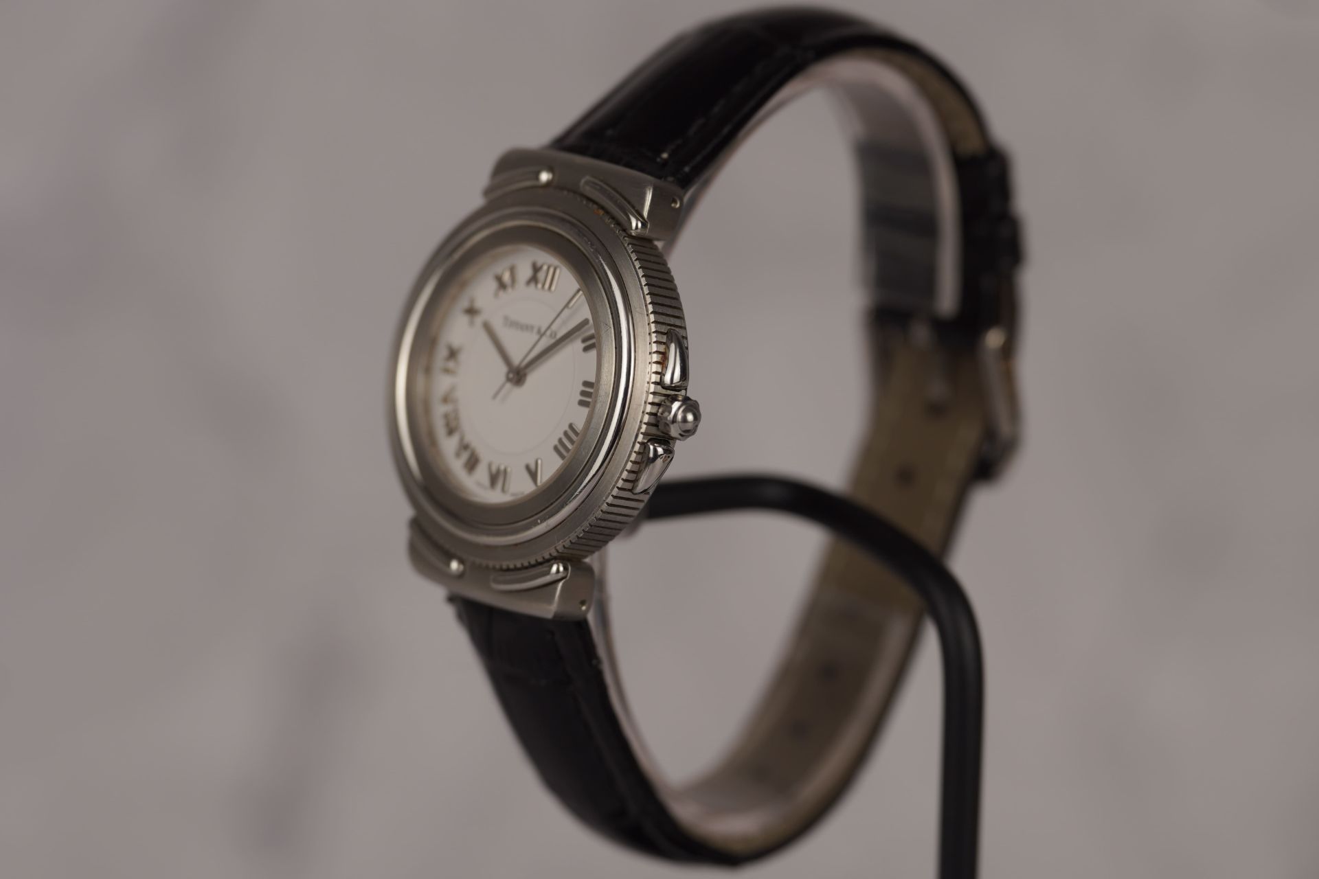 Explorez l’élégance intemporelle avec cette montre Tiffany Intaglio pour femme, référence commerciale M 0810. Datant de l’année 2000, elle se distingue par son boîtier en acier de 36 mm de diamètre et 7.2 mm d’épaisseur, lui conférant une finesse remarquable. Animée par un mouvement à Quartz précis, cette pièce offre une étanchéité de 3 ATM. Le bracelet en cuir noir non-original, agrémenté d’une boucle ardillon non-originale, confère à cette montre un charme distinctif. Ce modèle, en bon état, est fourni seul et bénéficie d’une garantie d’un an, vous assurant tranquillité et confiance.