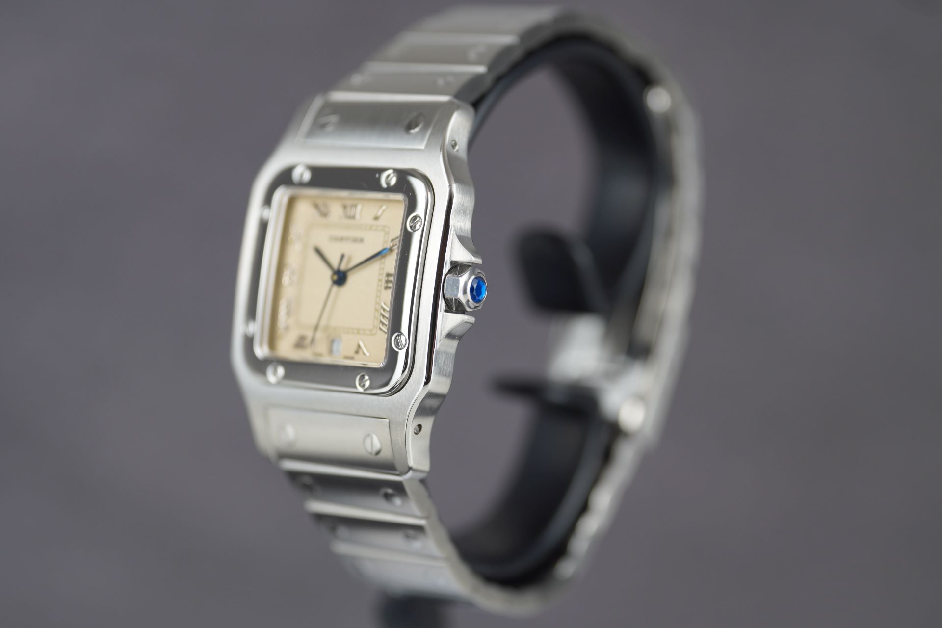 Découvrez l’élégance intemporelle de la montre Cartier Santos Galbée, référence 1564. Conçue avec un boîtier en acier inoxydable de 29 mm, cette montre unisexe allie sophistication et robustesse, parfaite pour l’homme moderne ou la femme audacieuse. Son bracelet en acier, mesurant 17.8 cm, assure un confort optimal tout en préservant le style inimitable de Cartier. Dotée d’une boucle originale, la Santos Galbée est l’accessoire idéal pour sublimer toute tenue, que ce soit au quotidien ou pour des occasions spéciales. Avec ce modèle emblématique, plongez dans un univers de luxe et d’authenticité.