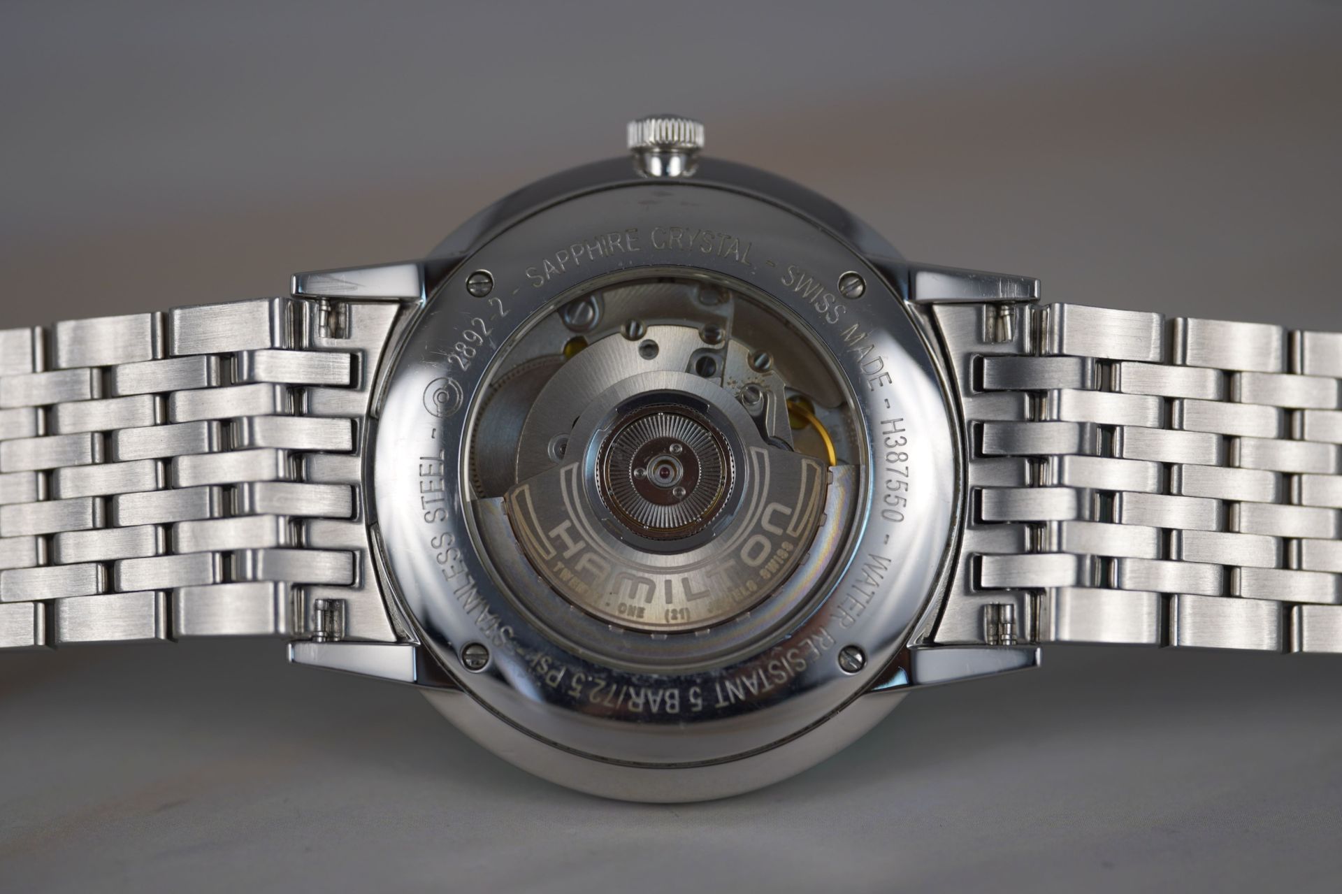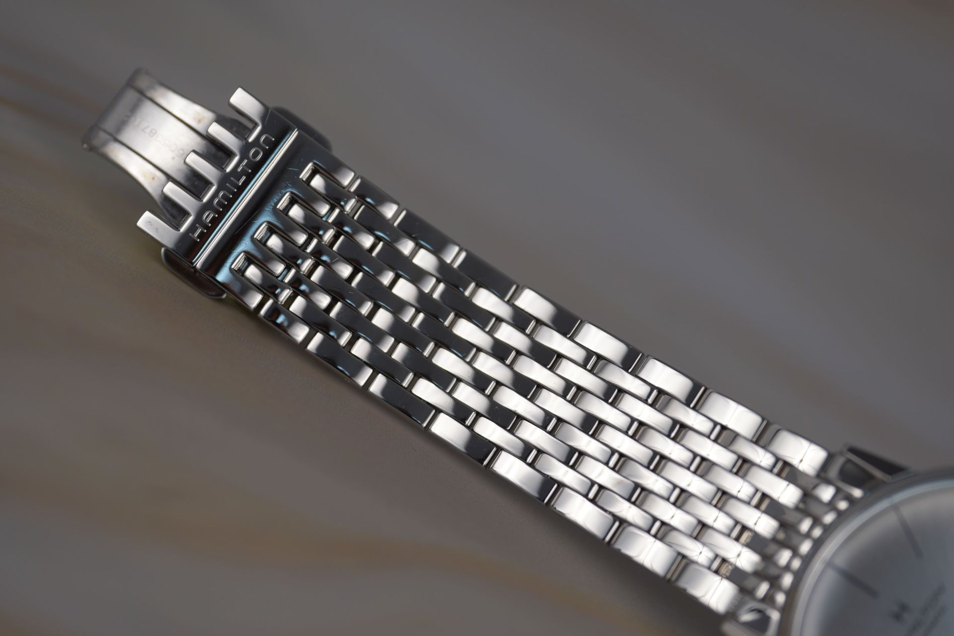 La Hamilton American Classic Intra-Matic (Réf. H387550) incarne l’élégance intemporelle de l’horlogerie. Son boîtier en acier de 42mm de diamètre loge un mouvement à remontage automatique, témoignage d’une excellence mécanique. Le bracelet original en acier, doté d’une boucle double plis également originale, assure une parfaite continuité esthétique et un confort optimal. Avec une étanchéité de 5 ATM, cette montre unisexe allie raffinement et polyvalence. Bénéficiant d’un excellent état et d’une garantie de 12 mois, cette pièce est livrée seule.