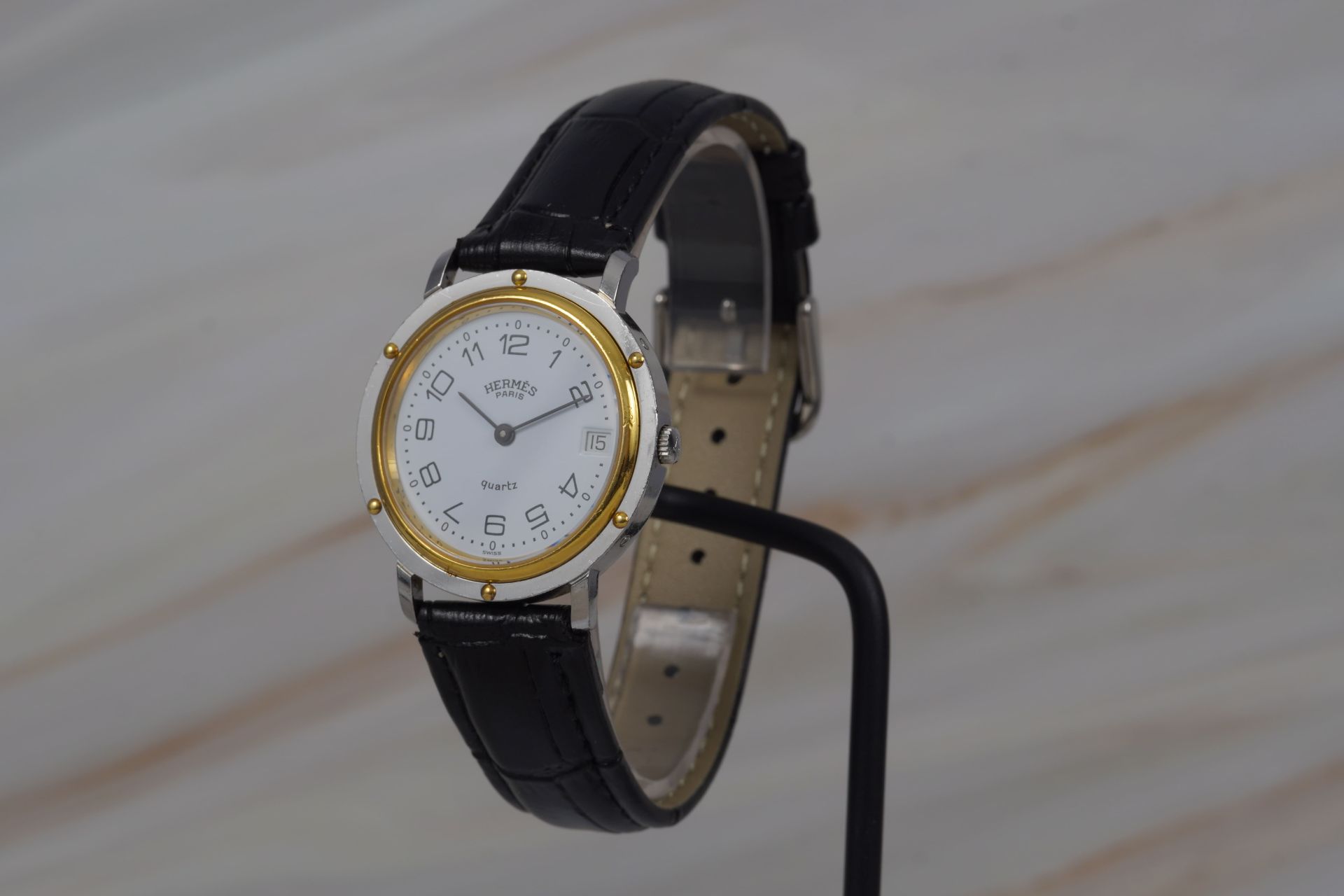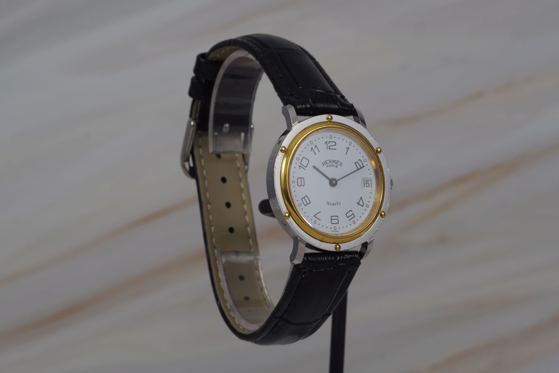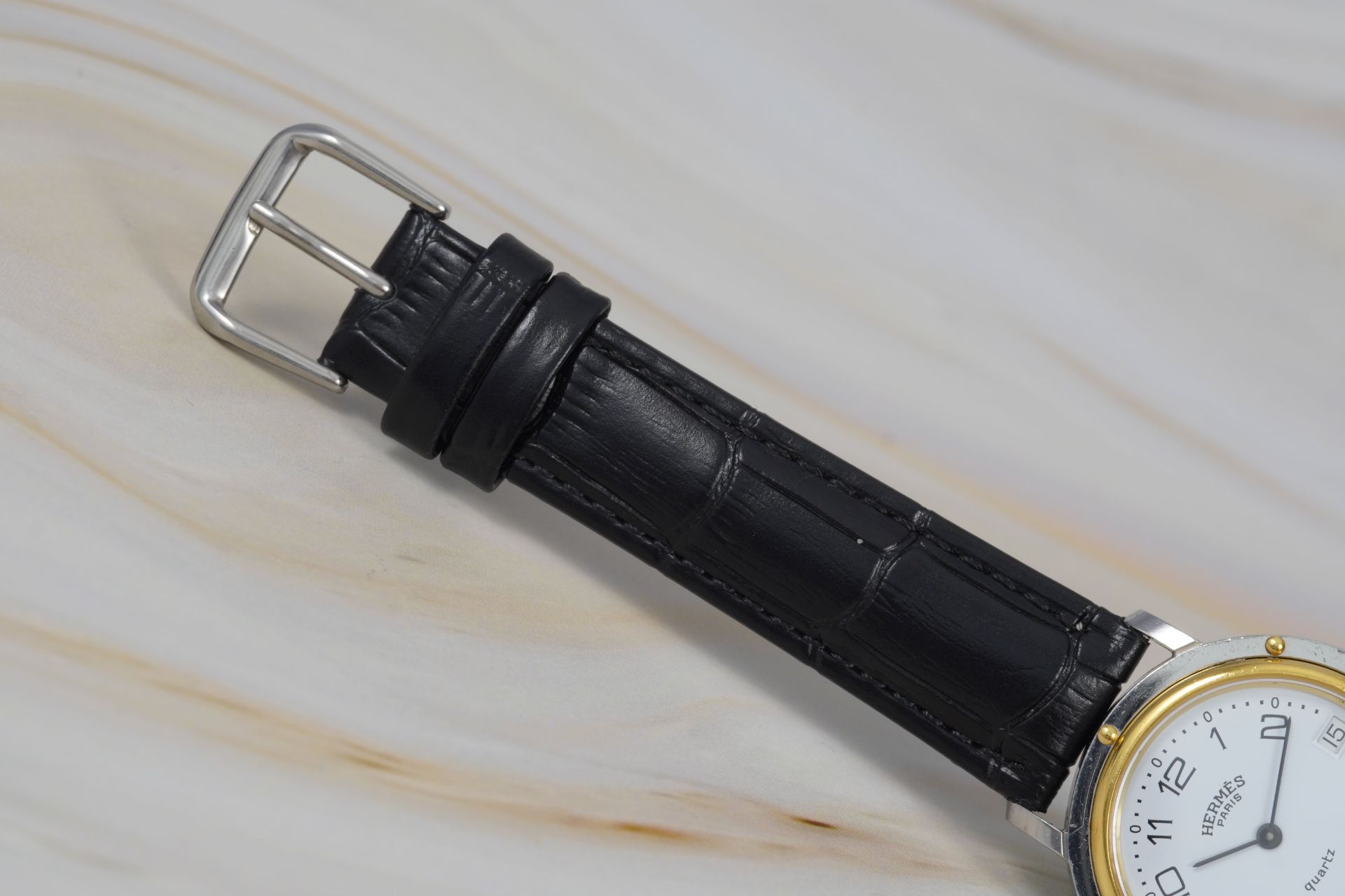 Découvrez l’élégance intemporelle avec cette montre Hermès Clipper pour femme, référence commerciale 111.03.48. Animée par un mouvement Quartz d’une précision irréprochable, elle incarne la finesse et le savoir-faire de la maison Hermès. Son boîtier en acier, d’un diamètre délicat de 33.8 mm et d’une épaisseur de 6.2 mm, se marie harmonieusement à un bracelet en cuir noir (non-original) et une boucle ardillon (non-originale). Cette pièce, étanche jusqu’à 3 ATM, est proposée en bon état et bénéficie d’une garantie de 12 mois. La montre est livrée seule.