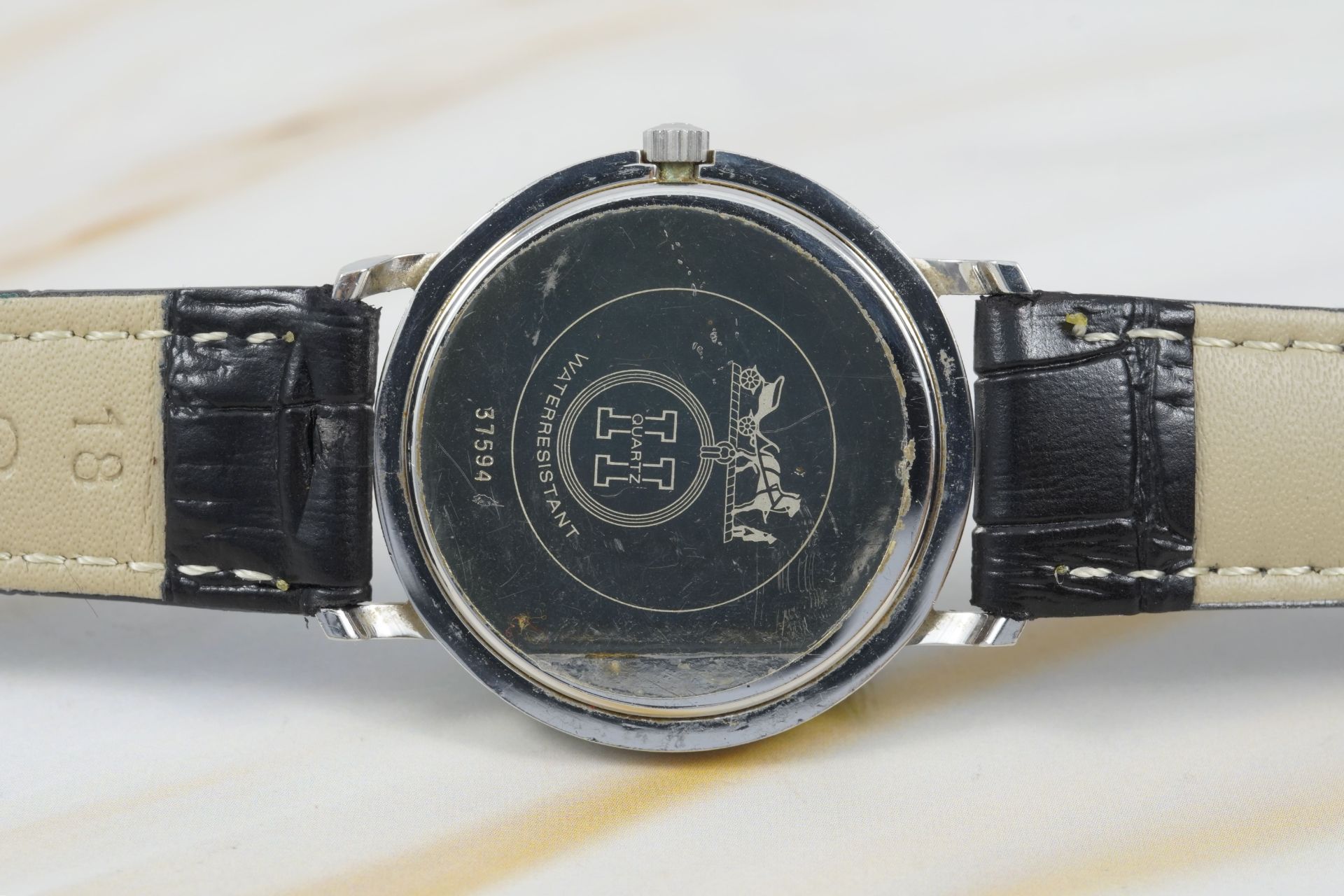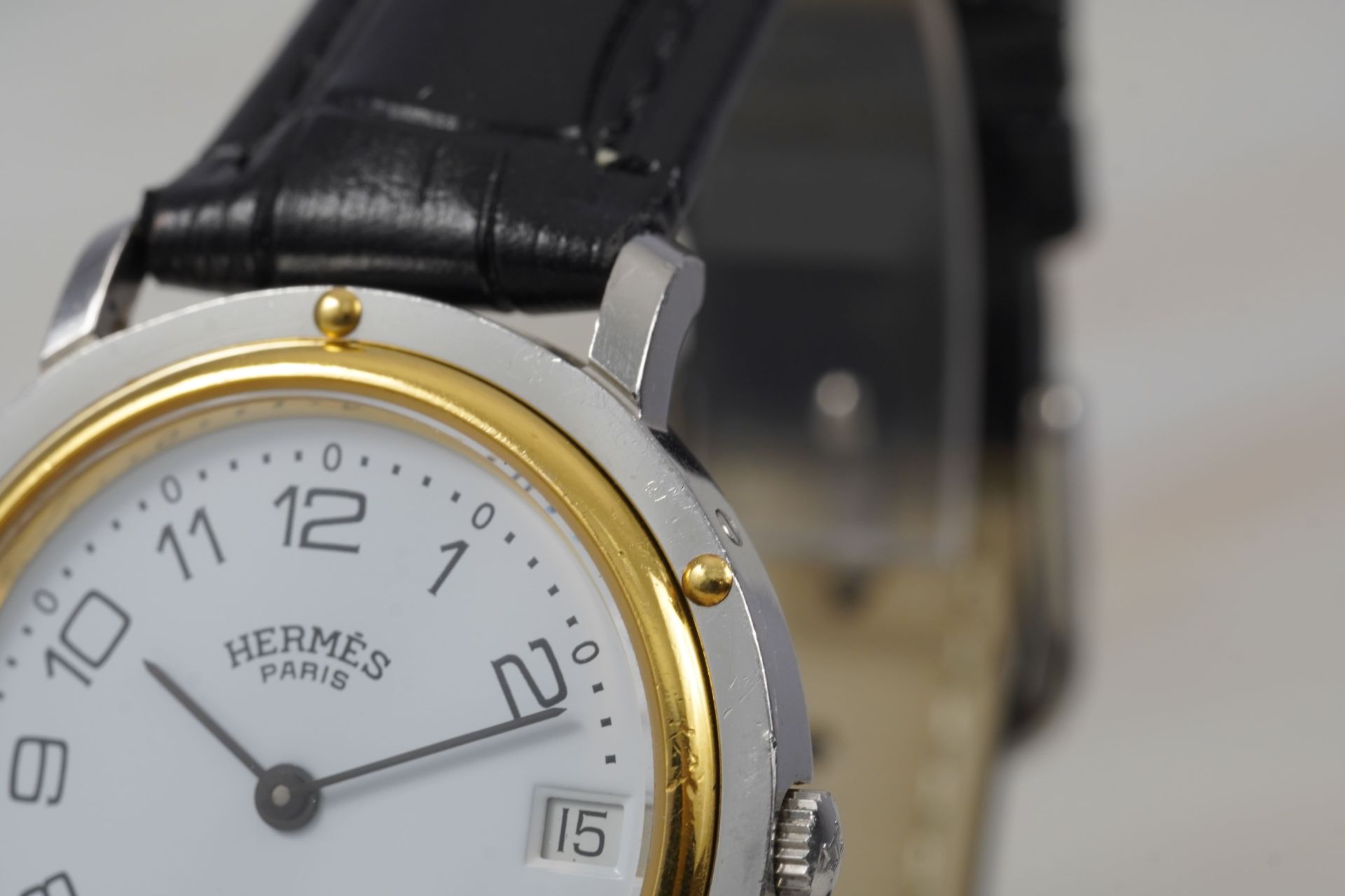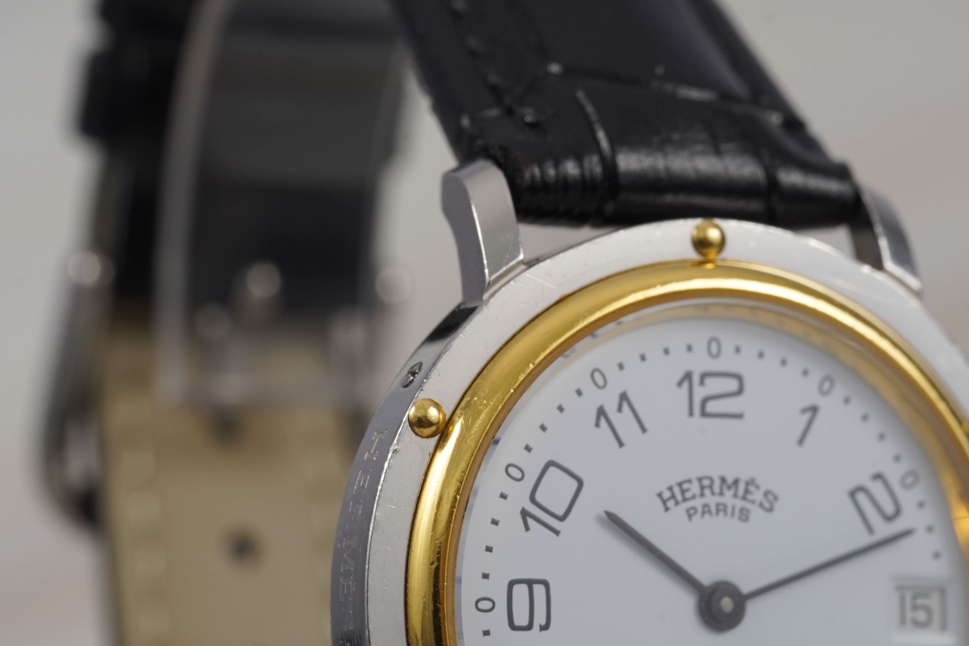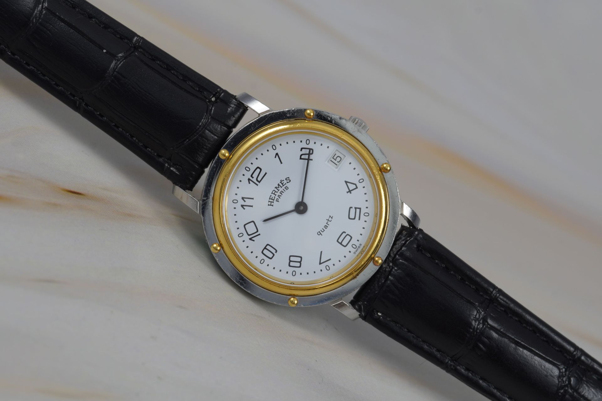 Découvrez l’élégance intemporelle avec cette montre Hermès Clipper pour femme, référence commerciale 111.03.48. Animée par un mouvement Quartz d’une précision irréprochable, elle incarne la finesse et le savoir-faire de la maison Hermès. Son boîtier en acier, d’un diamètre délicat de 33.8 mm et d’une épaisseur de 6.2 mm, se marie harmonieusement à un bracelet en cuir noir (non-original) et une boucle ardillon (non-originale). Cette pièce, étanche jusqu’à 3 ATM, est proposée en bon état et bénéficie d’une garantie de 12 mois. La montre est livrée seule.