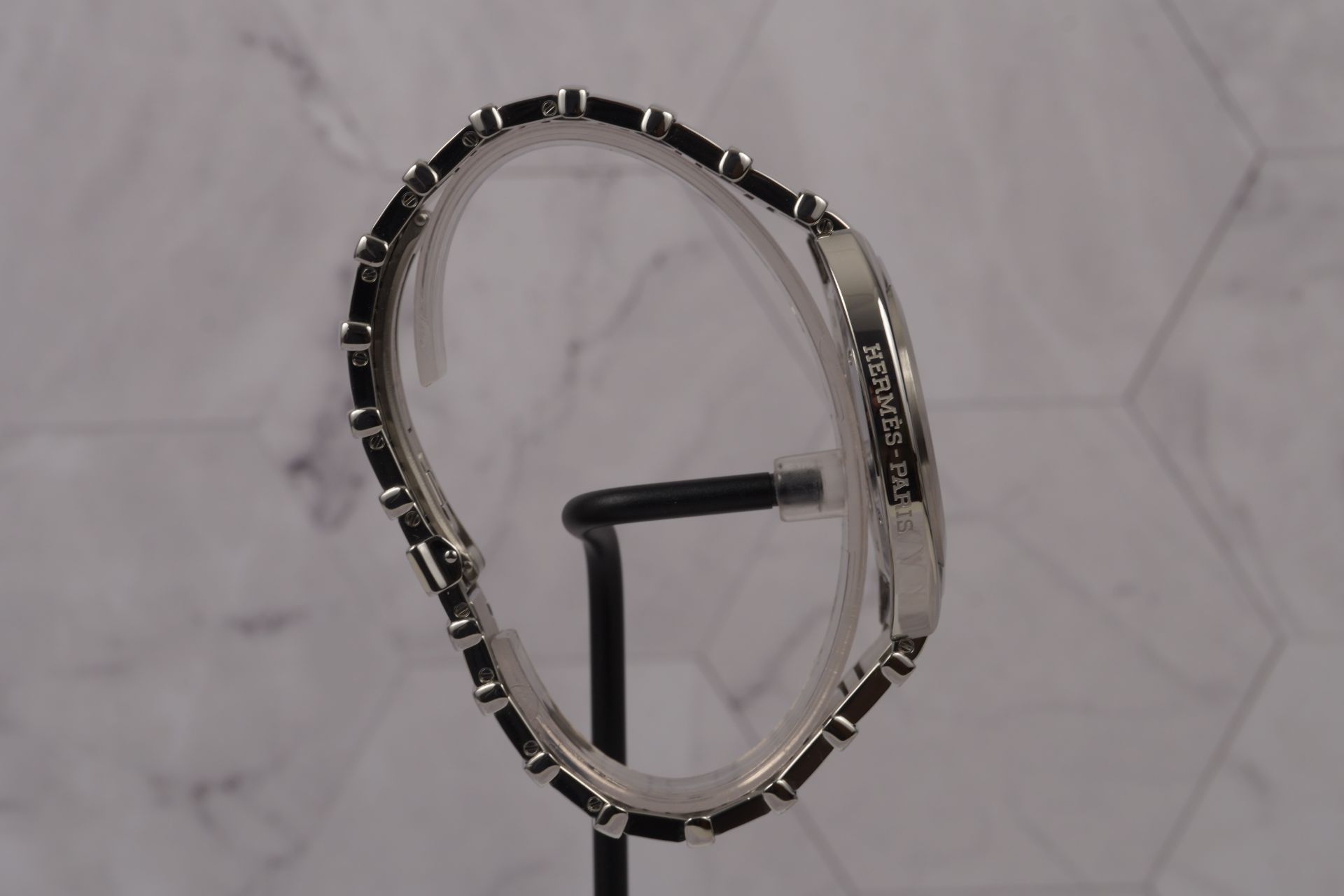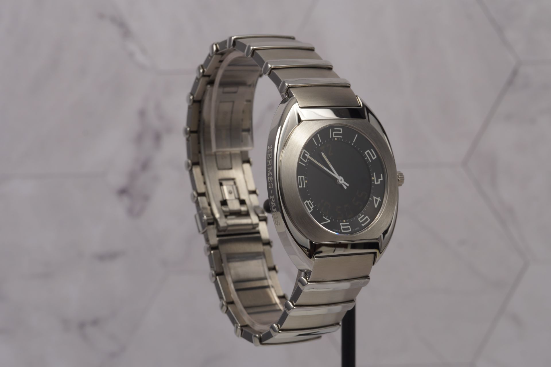 Découvrez la montre Hermès Espace Analog Digital – ES1.710, un bijou d’élégance qui allie modernité et sophistication. Conçue en acier inoxydable, cette montre unisexe présente un boîtier de 38 mm qui se distingue par son design audacieux et contemporain. Son bracelet en acier, d’une taille de 19.5 cm, assure un confort optimal tout en ajoutant une touche de raffinement à votre poignet. Le mélange ingénieux d’une interface analogique et numérique offre une fonctionnalité unique, parfaite pour les hommes modernes en quête de style. Que ce soit pour une occasion spéciale ou au quotidien, la Hermès Espace Analog Digital est le choix idéal pour ceux qui apprécient la perfection horlogère. Offrez-vous ce chef-d’œuvre d’horlogerie et affirmez votre personnalité avec classe.