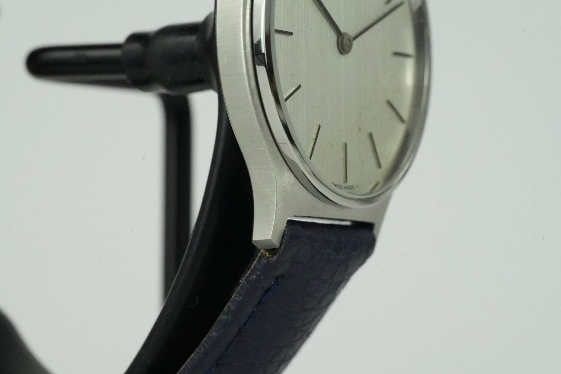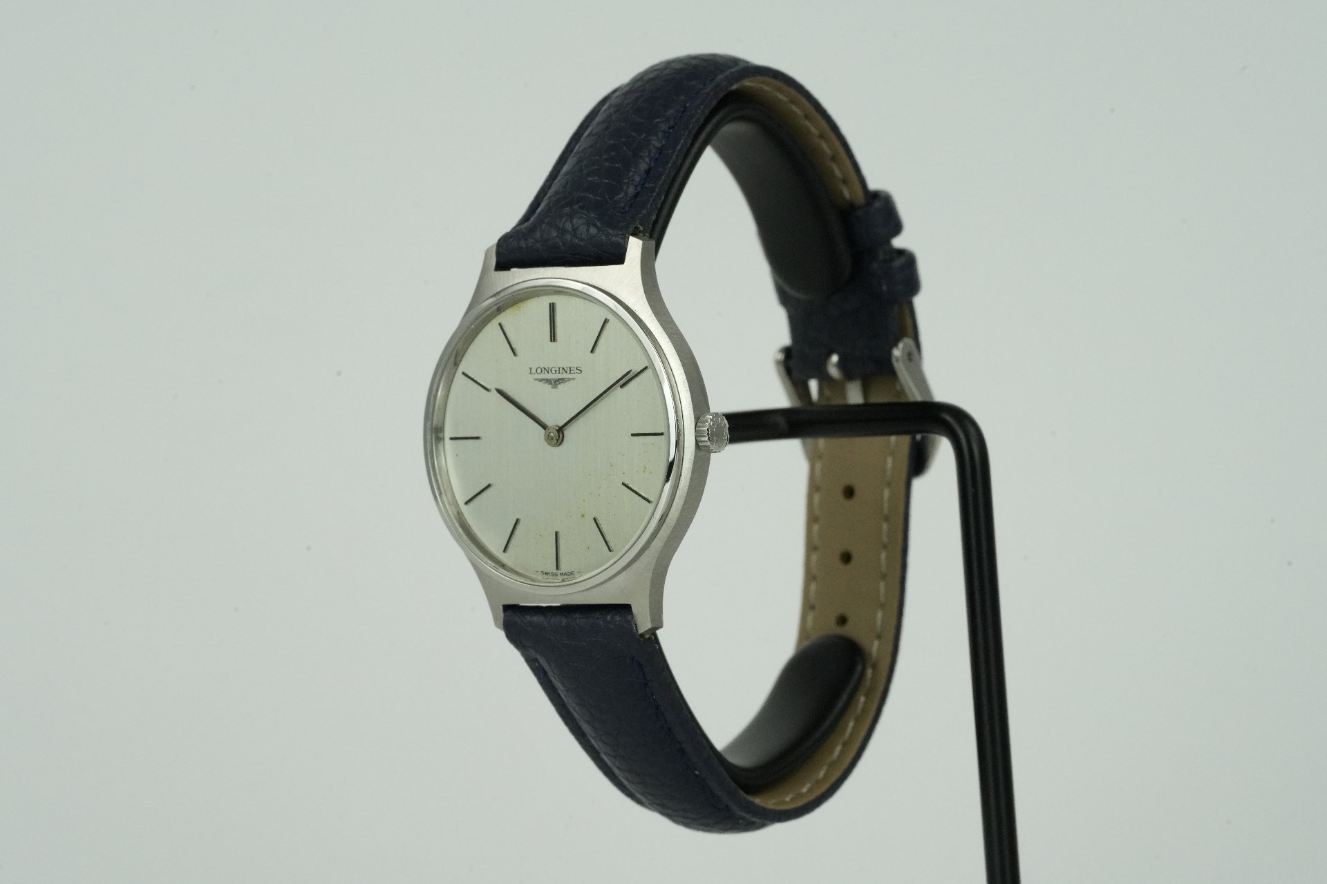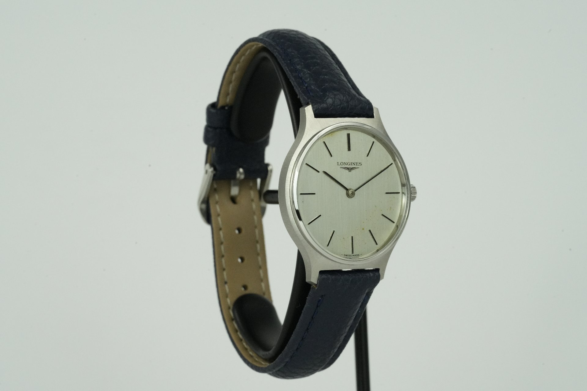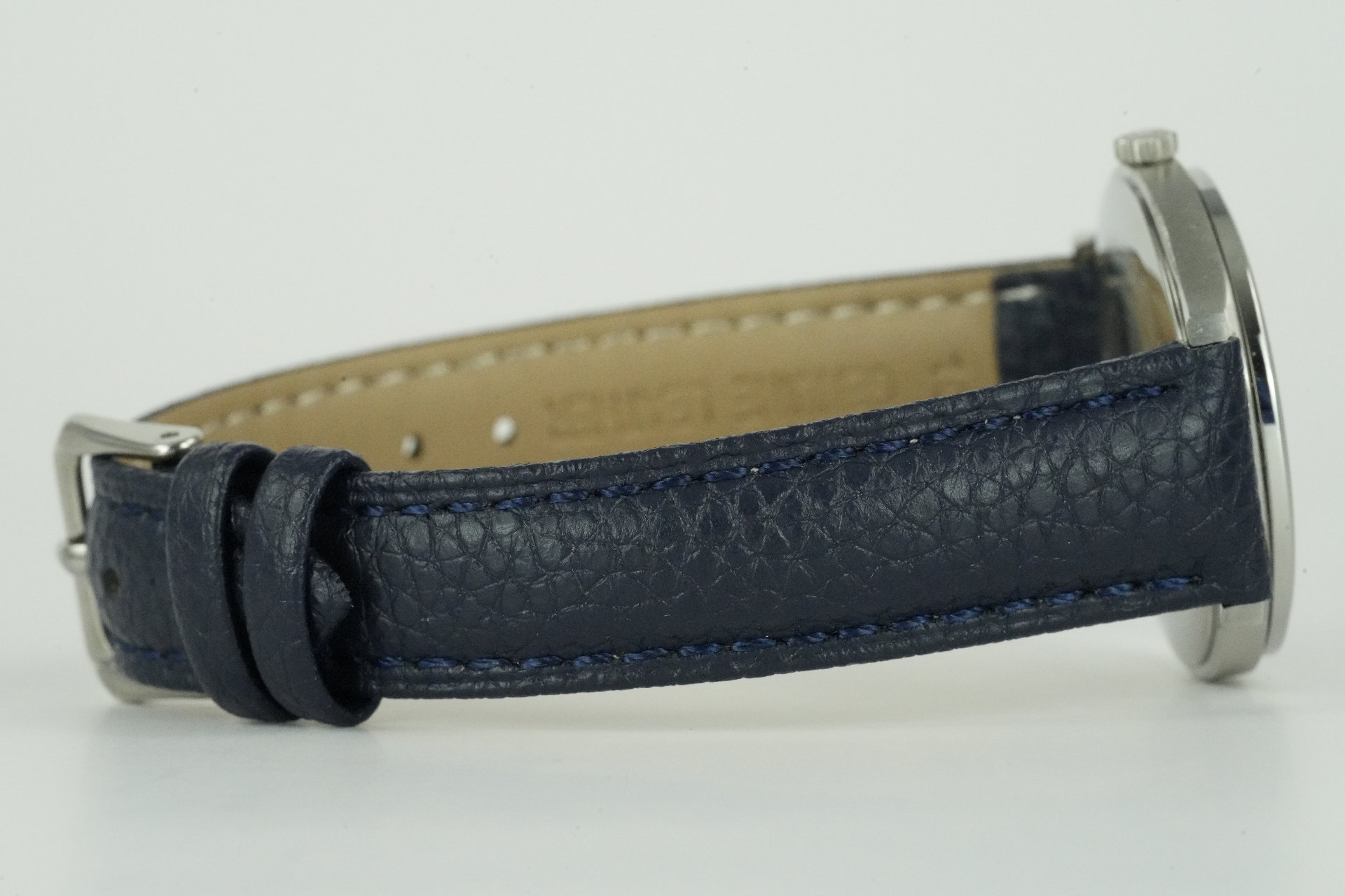 Découvrez l’élégance intemporelle avec cette montre Longines Flagship unisexe, une pièce vintage datant de 1976. Son boîtier en acier de 33mm de diamètre et d’une fine épaisseur de 6.3mm abrite un mouvement à remontage manuel, témoignage de la manufacture horlogère. Le cadran est sublimé par un bracelet en cuir bleu non-original, parfaitement complété par une boucle ardillon non-originale. Affichant la référence commerciale 847 4327 et la référence TOT-10733, cette montre est livrée seule. En bon état, elle est accompagnée d’une garantie de 12 mois, assurant sa fiabilité.
