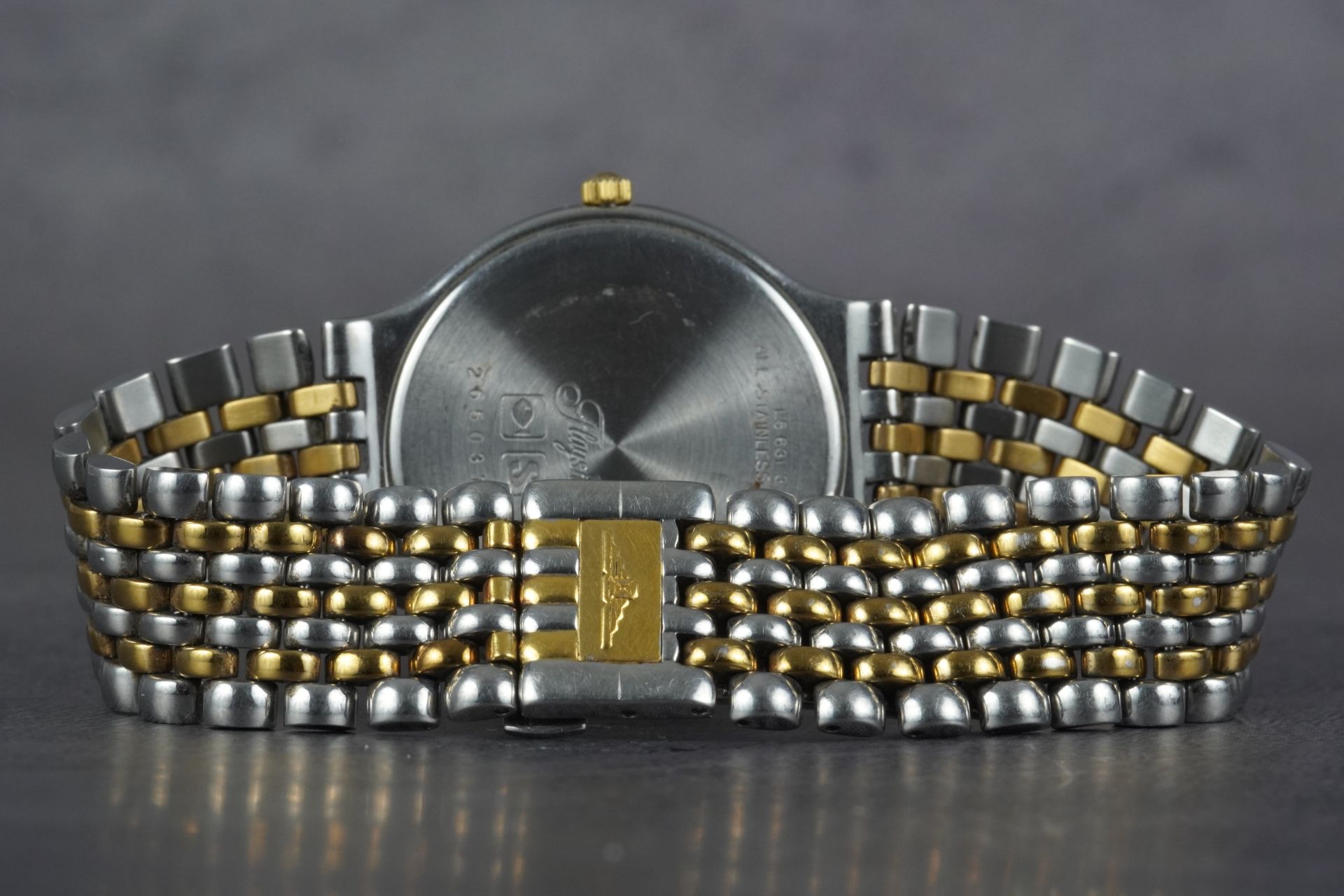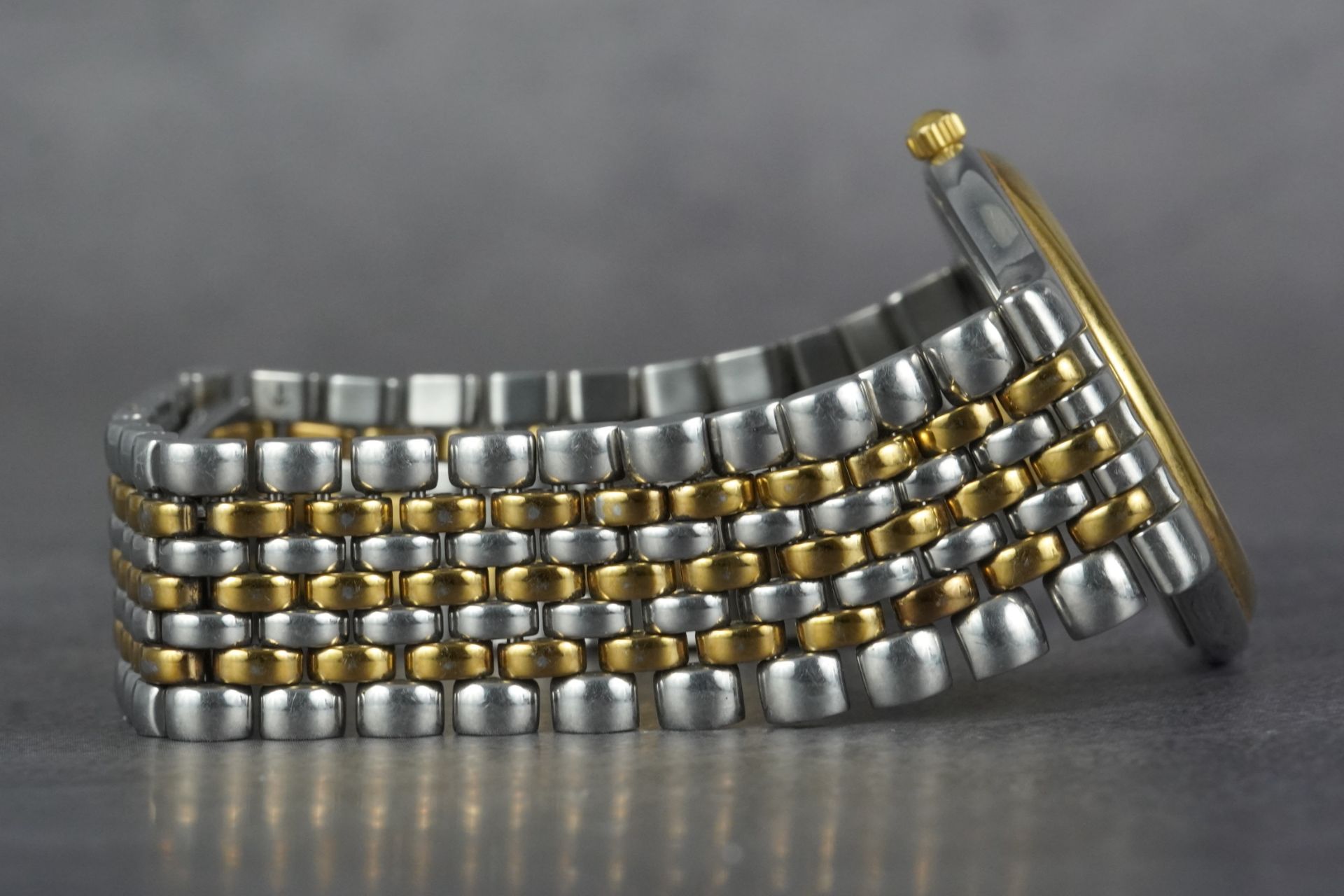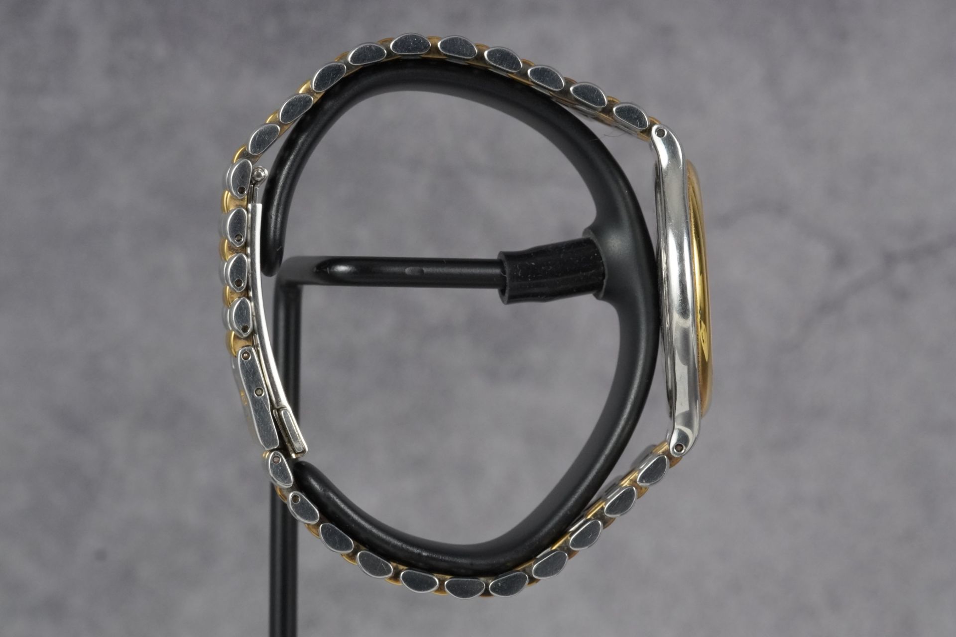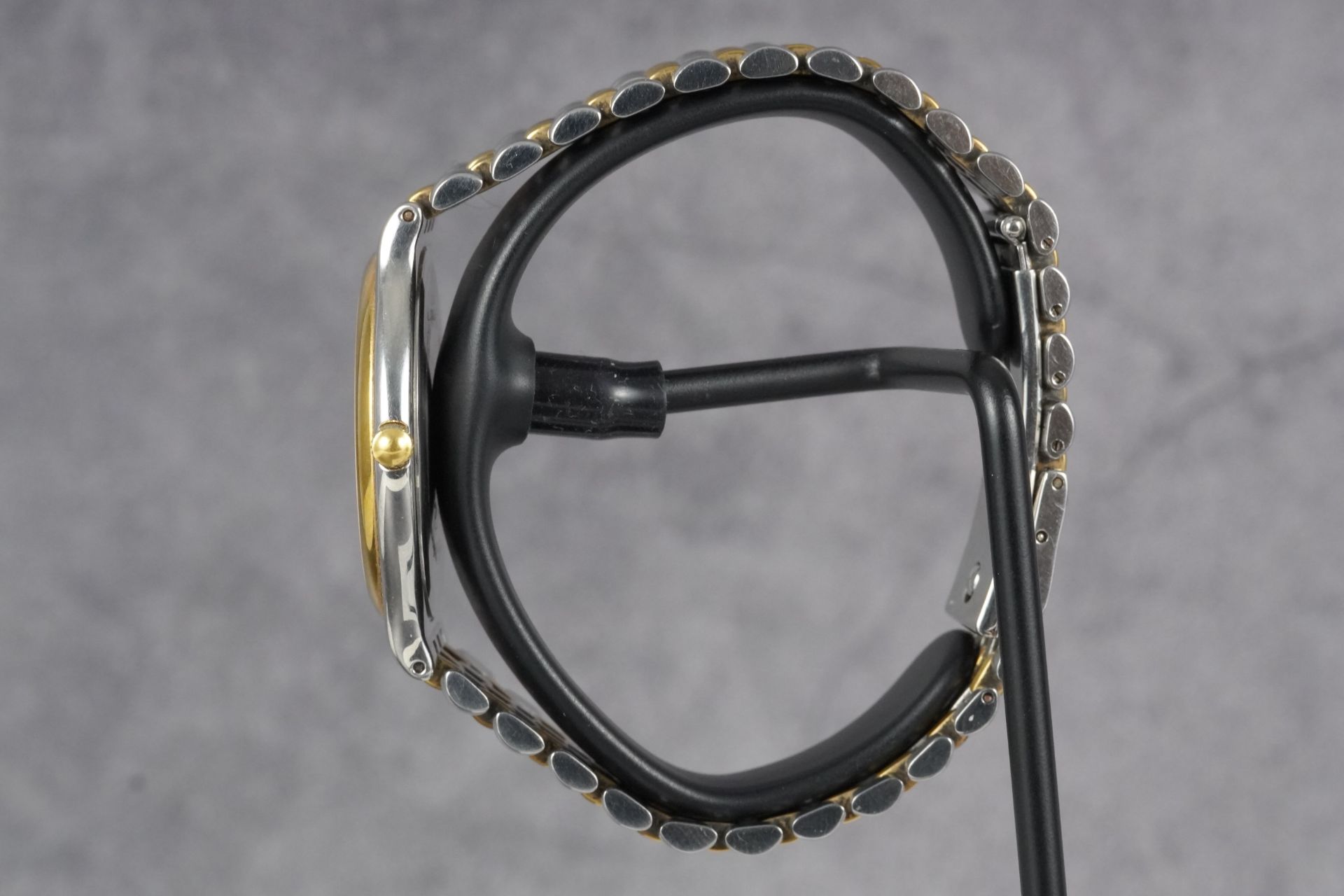 Le bracelet original en acier bicolore Or/Acier prolonge l’harmonie des lignes, parfaitement sécurisé par sa boucle déployante originale. Cette pièce, livrée en montre seule, est dans un bon état général, prête à rejoindre votre collection. Elle bénéficie d’une garantie de 12 mois, gage de sérénité.