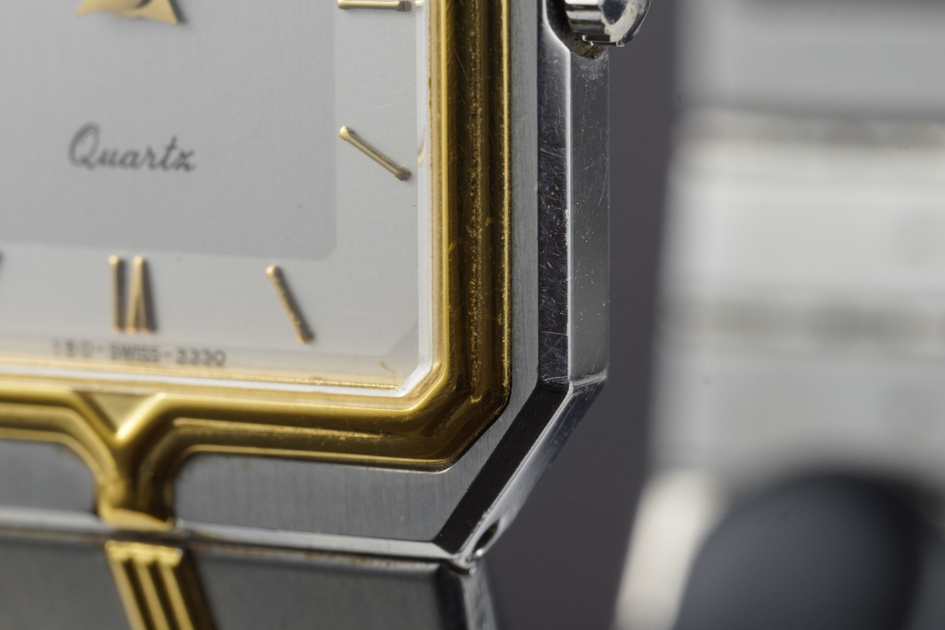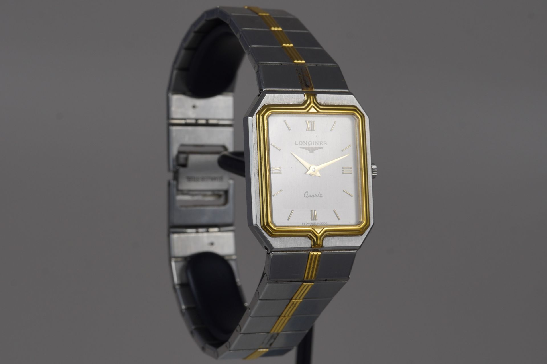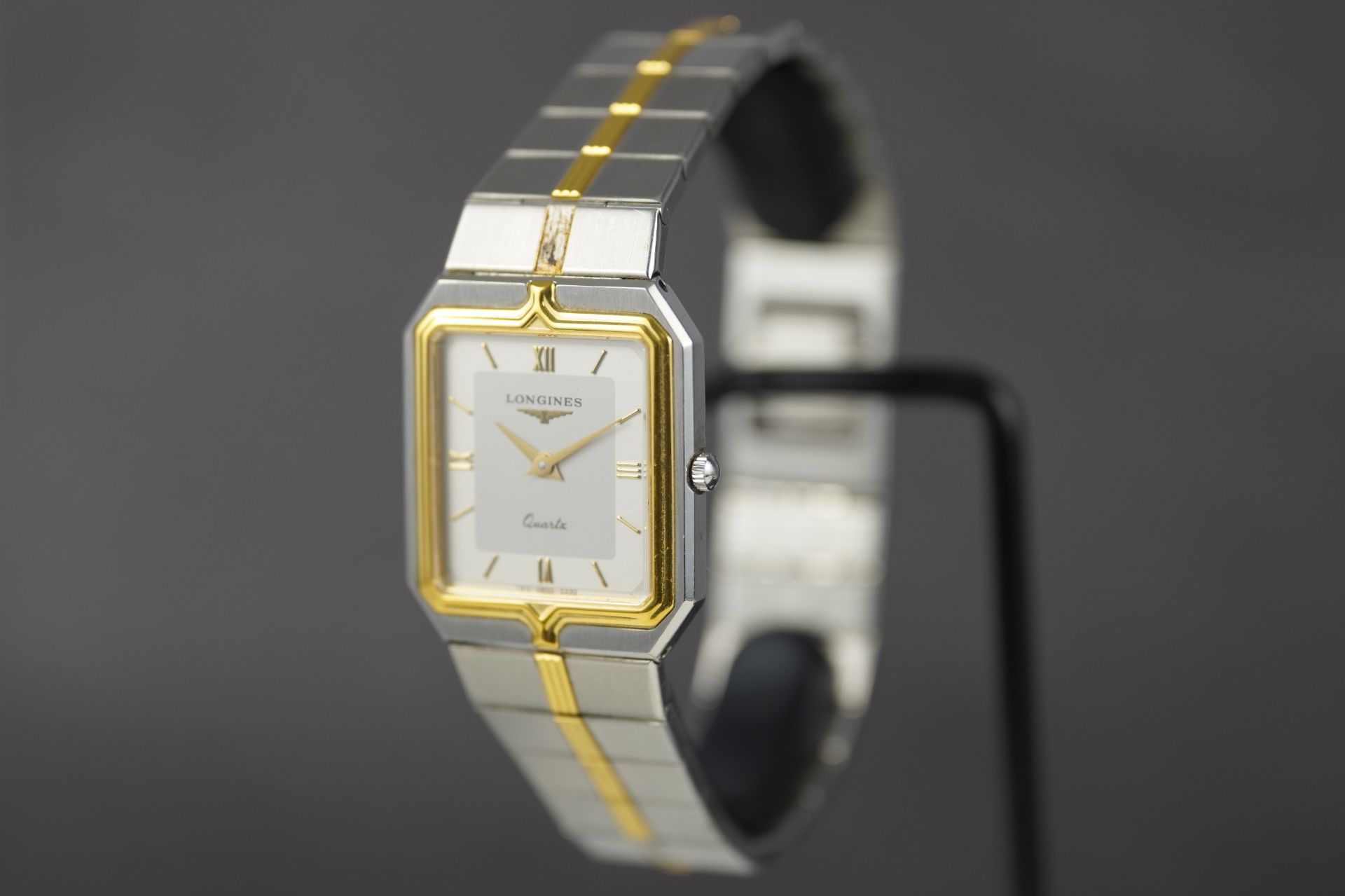 Découvrez l’élégance intemporelle avec cette montre Longines Flagship « Tank », référence commerciale 150 3330. Ce modèle unisexe, référence TOT-11280, incarne la sophistication discrète. Son boîtier en acier de 25.9mm de diamètre et seulement 4.9mm d’épaisseur abrite un mouvement à quartz d’une grande précision. Le bracelet original en acier bicolore or et acier, accompagné de son fermoir bijoux également original, offre un confort et un style distinctifs. Avec une étanchéité de 3 ATM et un état général bon, cette pièce est livrée seule et bénéficie d’une garantie de 12 mois.