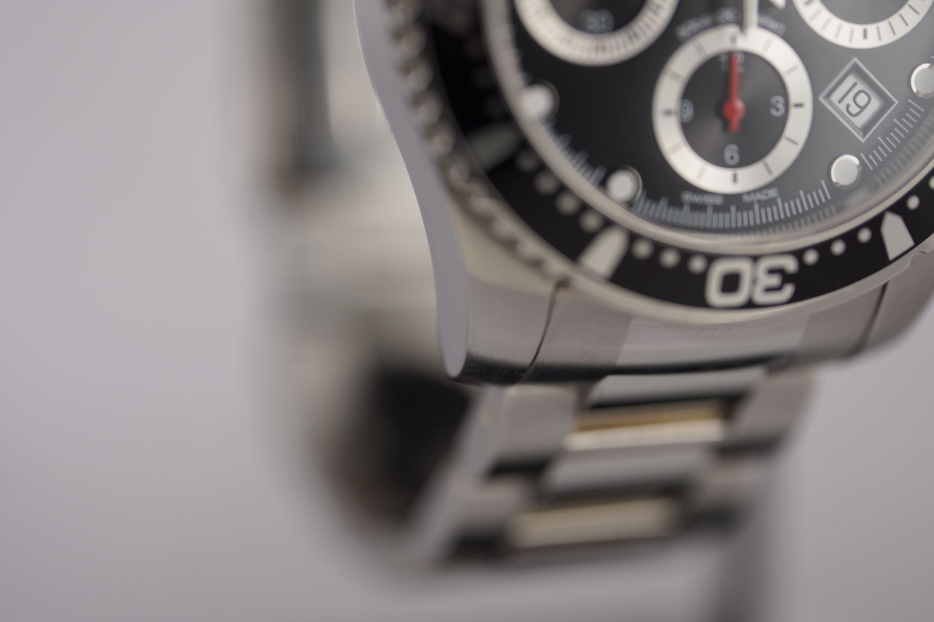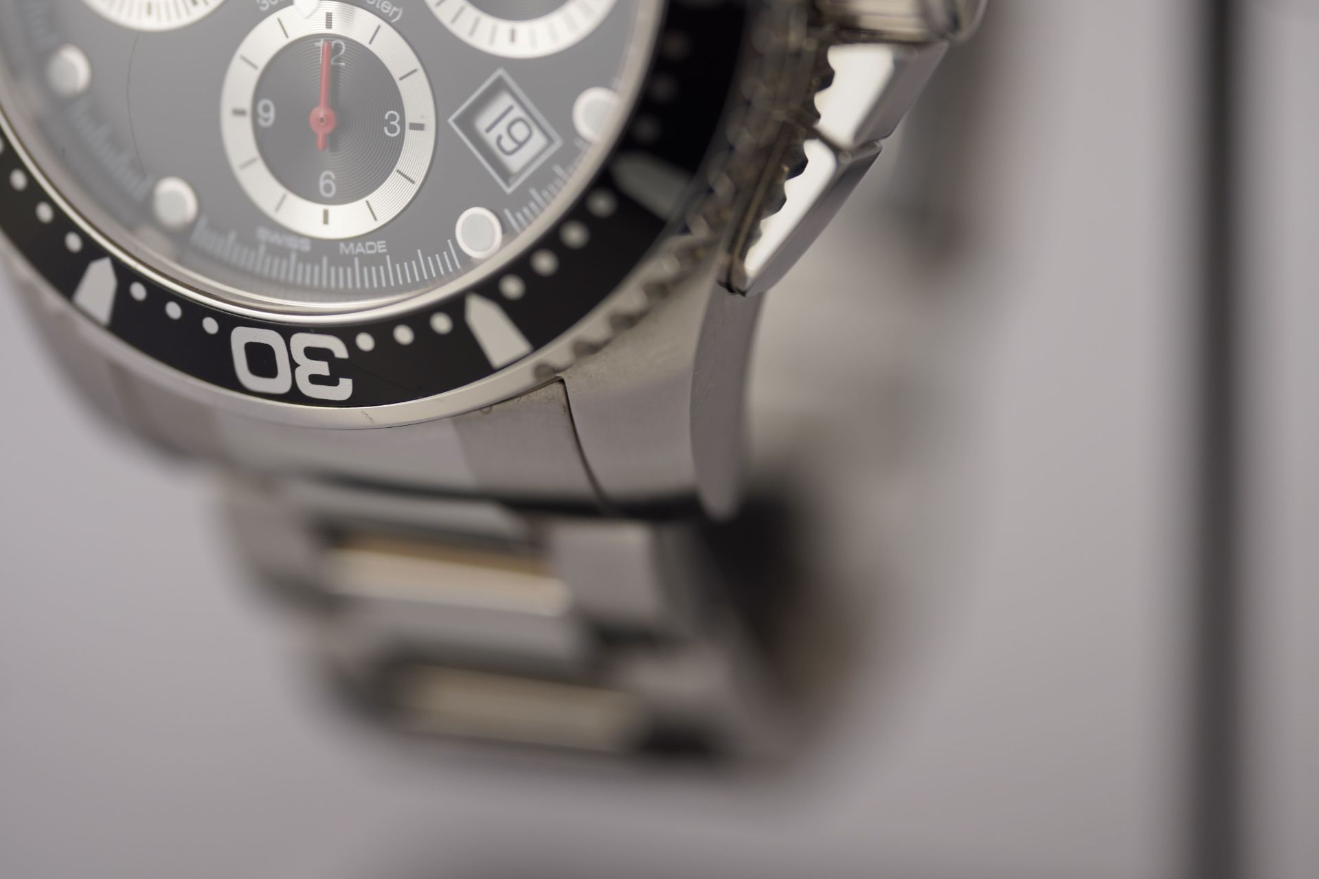 Découvrez la montre Longines HydroConquest Chronograph (référence L3.744.4.56.6), une pièce d’horlogerie qui allie performance et élégance. Dotée d’un boîtier en acier robuste de 41 mm, cette montre est conçue pour les aventuriers modernes tout en restant un accessoire de mode intemporel. Son bracelet en acier, mesurant 21.5 cm, assure un confort optimal pour un port quotidien, avec une boucle originale qui garantit un maintien parfait. La HydroConquest Chronograph est non seulement un instrument de précision, mais aussi une affirmation de style, convenant aussi bien aux hommes qu’aux femmes. Que ce soit pour vos activités sous-marines ou vos sorties urbaines, cette montre se distingue par sa fonctionnalité et son allure chic. Ajoutez une touche de sophistication à votre poignet avec Longines !
