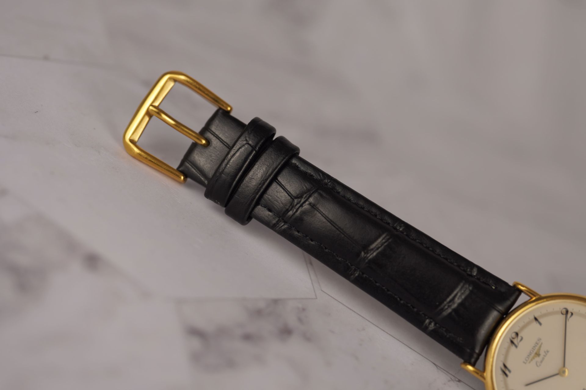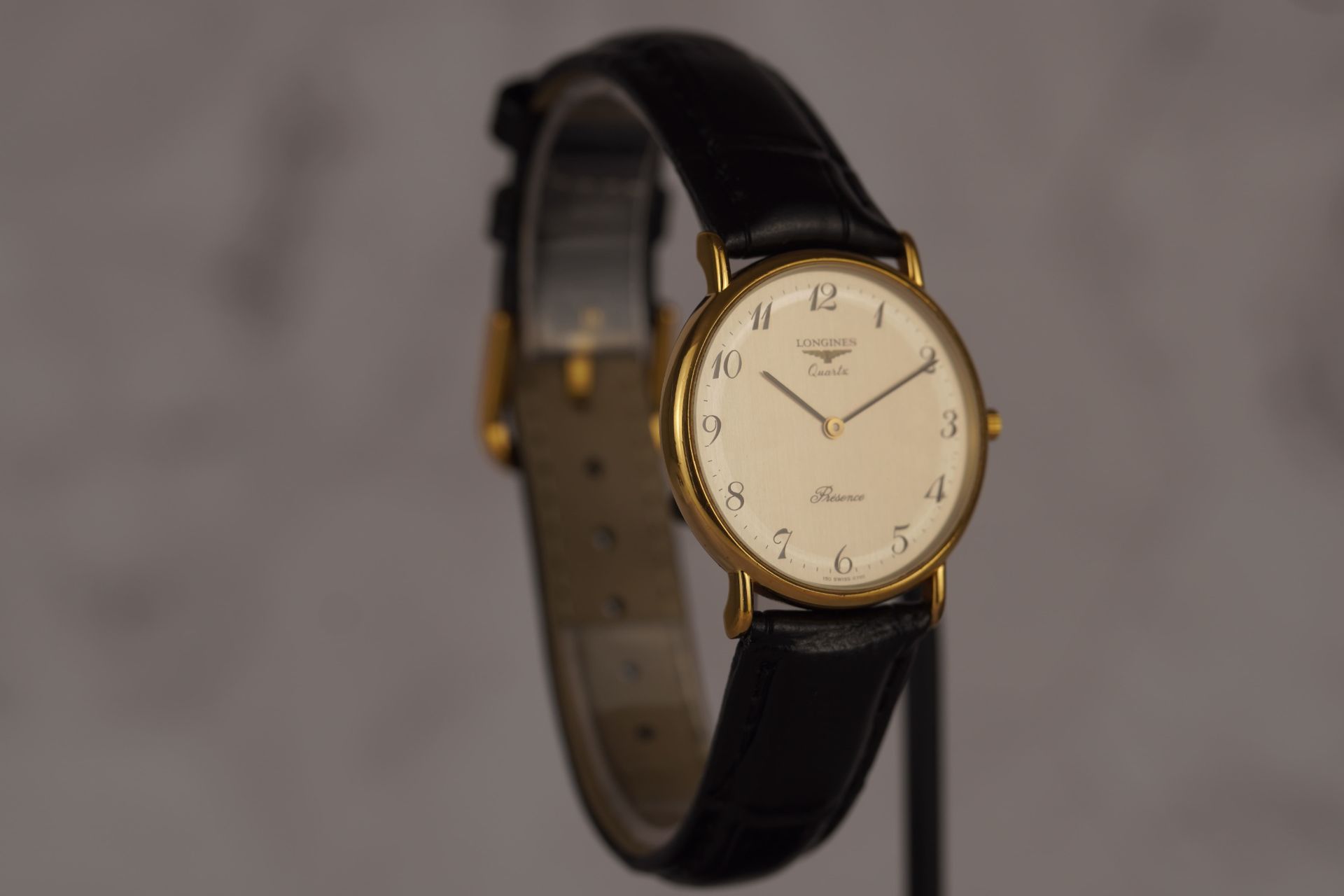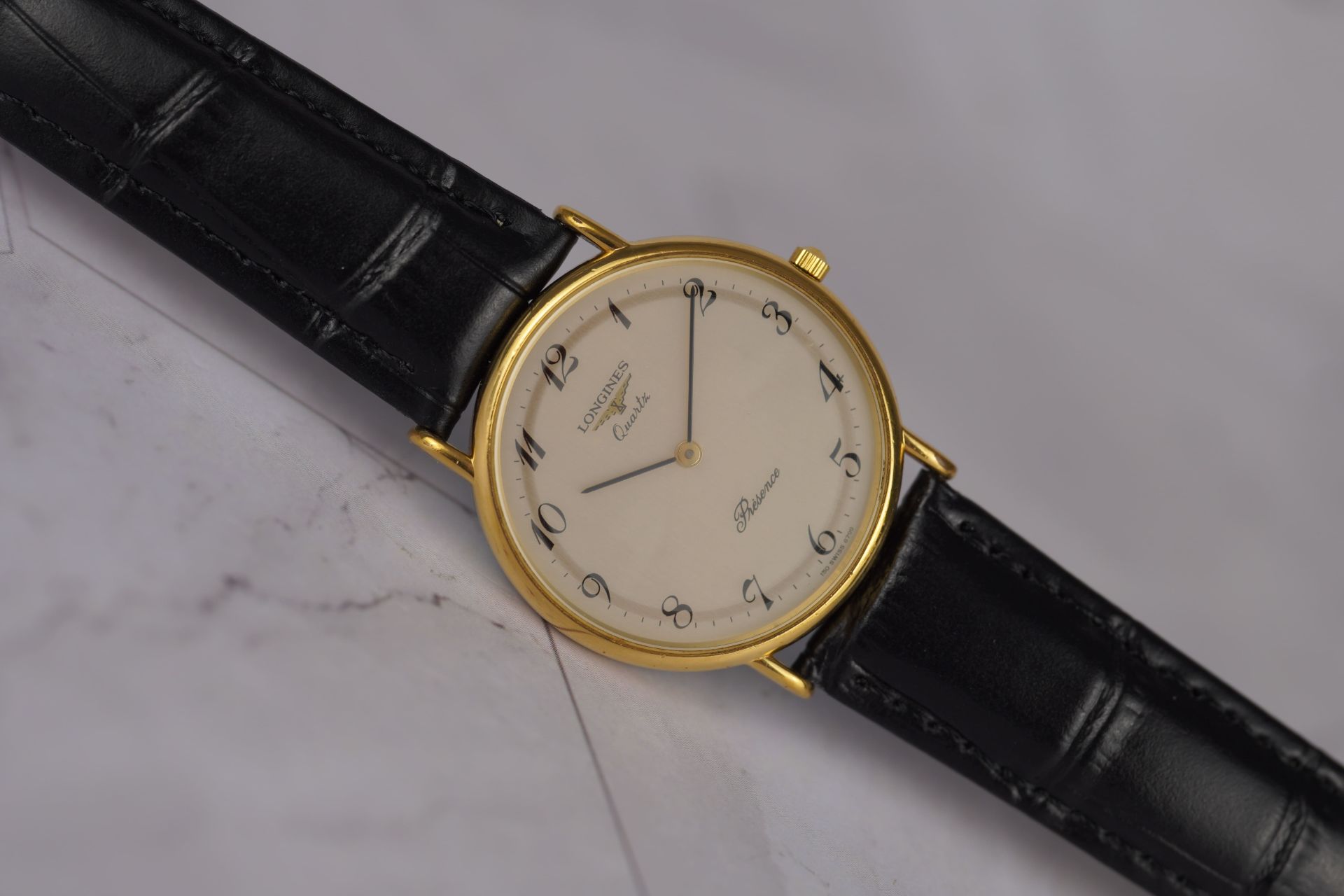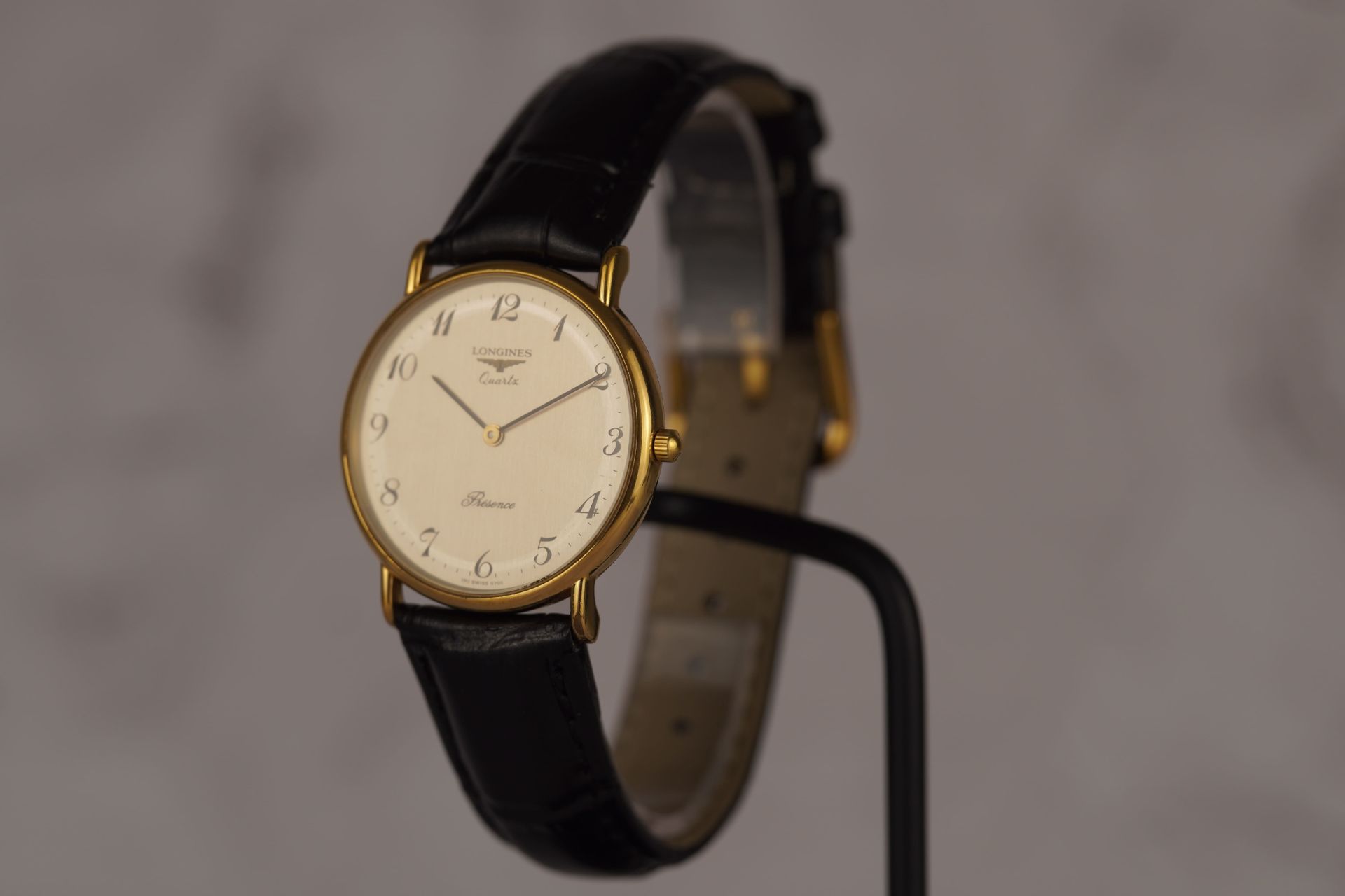 Découvrez l’élégance intemporelle de la montre Longines – Présence – 150 6799 2103. Conçue pour l’homme moderne en quête de sophistication, cette montre allie un boîtier plaqué or de 32.1 mm à un bracelet en cuir, offrant un confort exceptionnel et un style polyvalent adapté à toutes les occasions. Sa finition raffinée et ses lignes classiques en font une pièce incontournable pour ceux qui apprécient le luxe discret. Bien que le bracelet et la boucle ne soient pas d’origine, leur design s’accorde parfaitement avec l’esthétique de la montre. Arborant un look à la fois chic et décontracté, cette montre Longines est l’accessoire idéal pour rehausser votre tenue, que ce soit au bureau ou lors d’une soirée. Offrez-vous le cadeau d’une élégance durable avec cette montre d’exception!