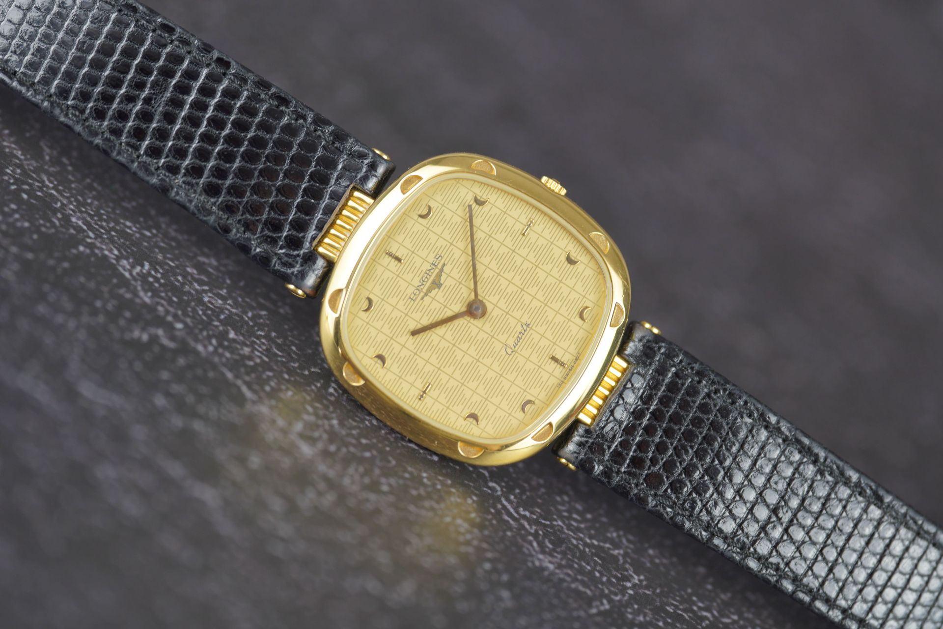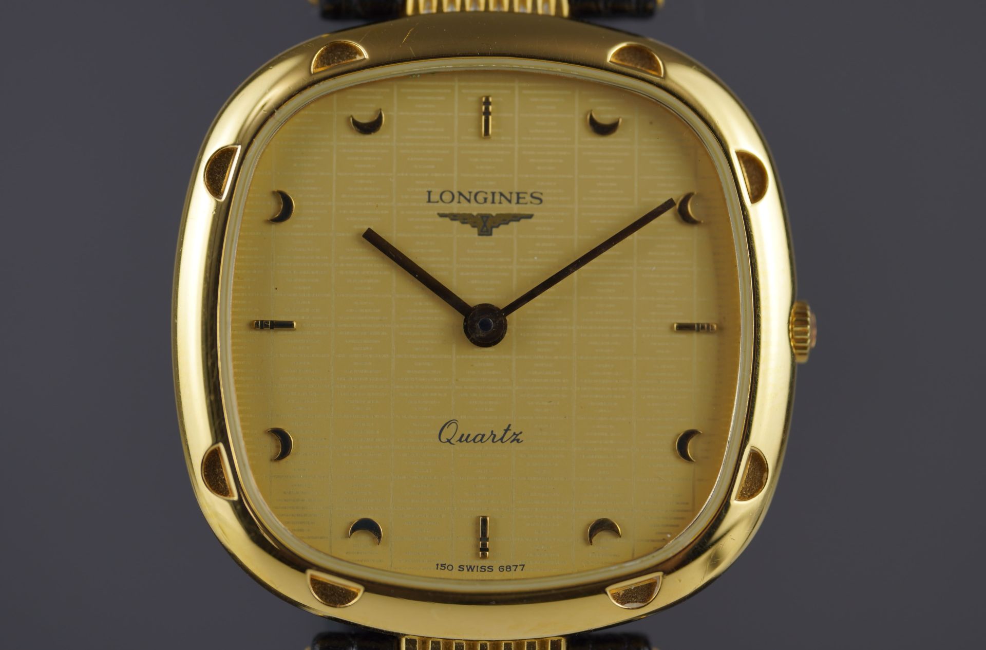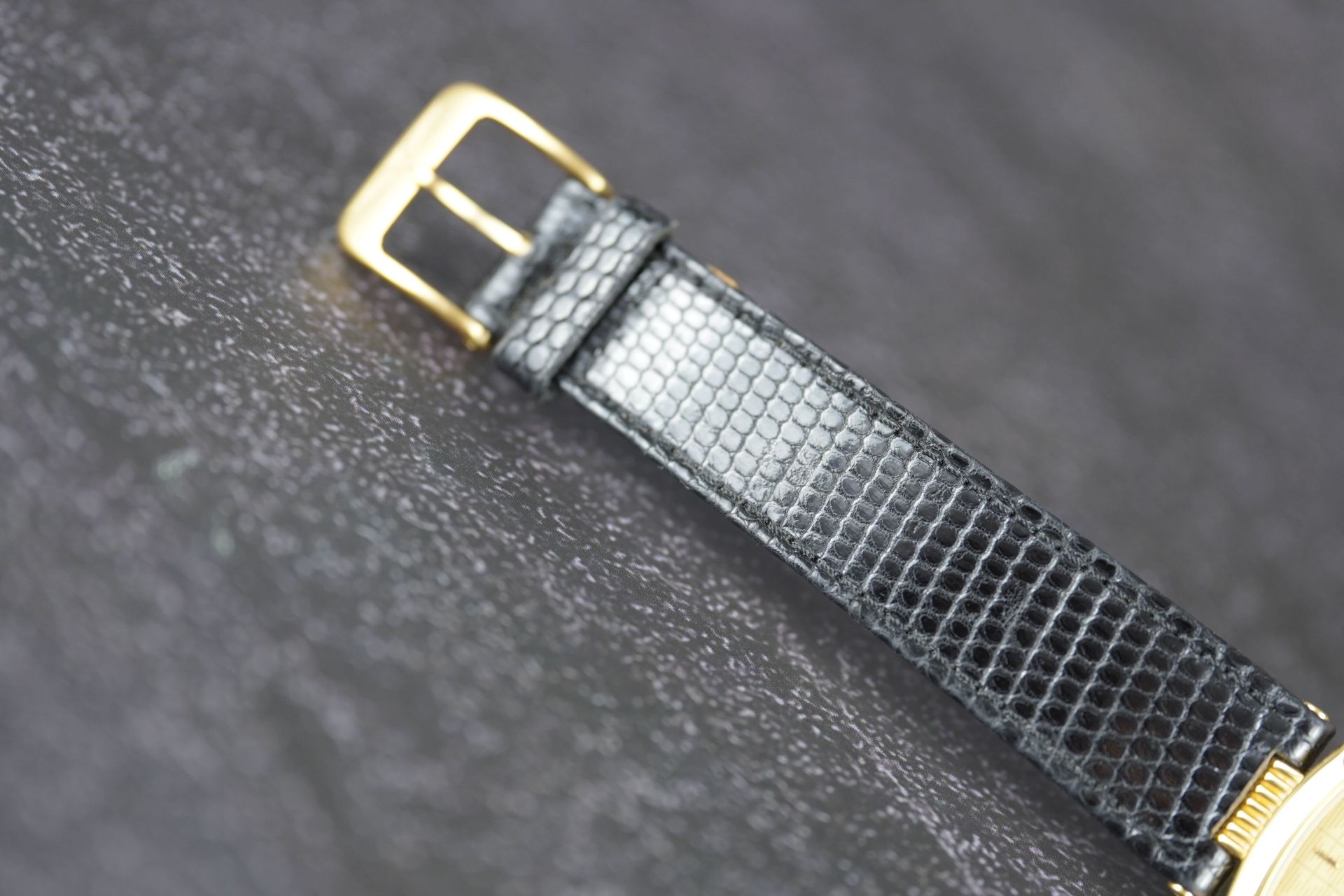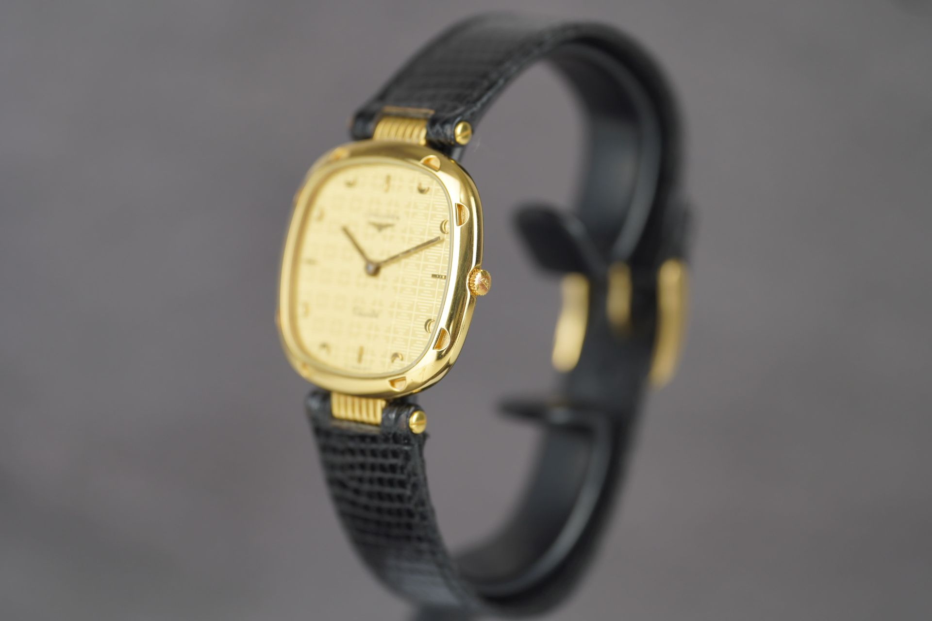 Sublimez votre poignet avec cette montre Longines unisexe, référence commerciale 150 6877. Son boîtier plaqué or de 30 mm de diamètre et d’une finesse remarquable de 4.9 mm abrite un mouvement Quartz précis. Le bracelet en cuir noir d’origine, complété par sa boucle ardillon d’origine, assure un confort élégant. Conçue pour résister à une pression de 3 ATM, cette pièce offre une fiabilité discrète. Cette montre, livrée seule, est en bon état général et bénéficie d’une garantie de 12 mois.
