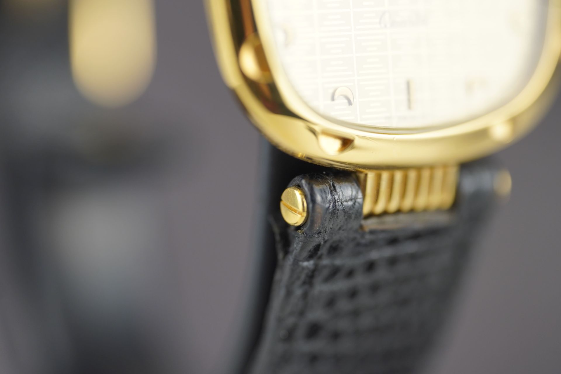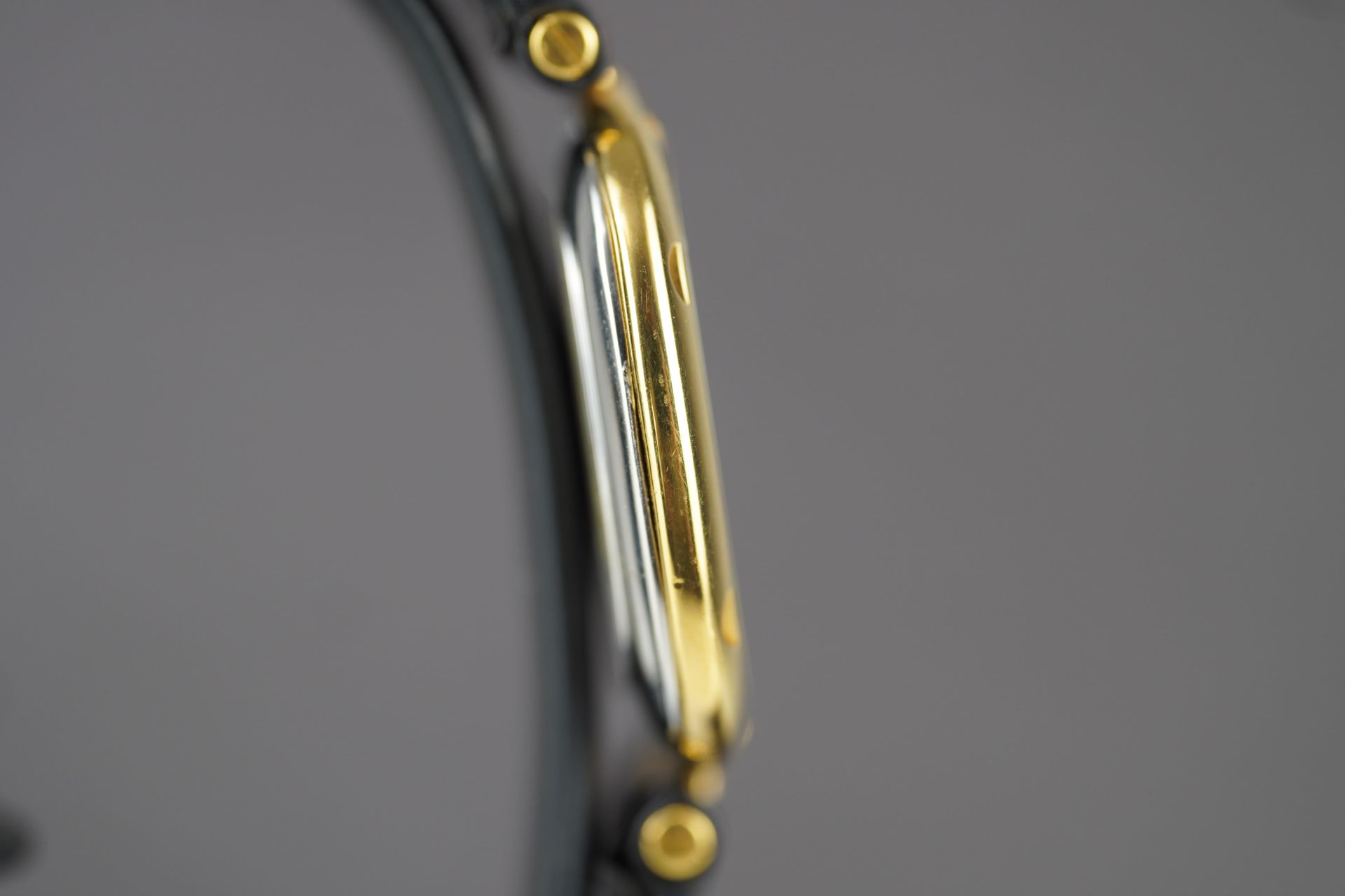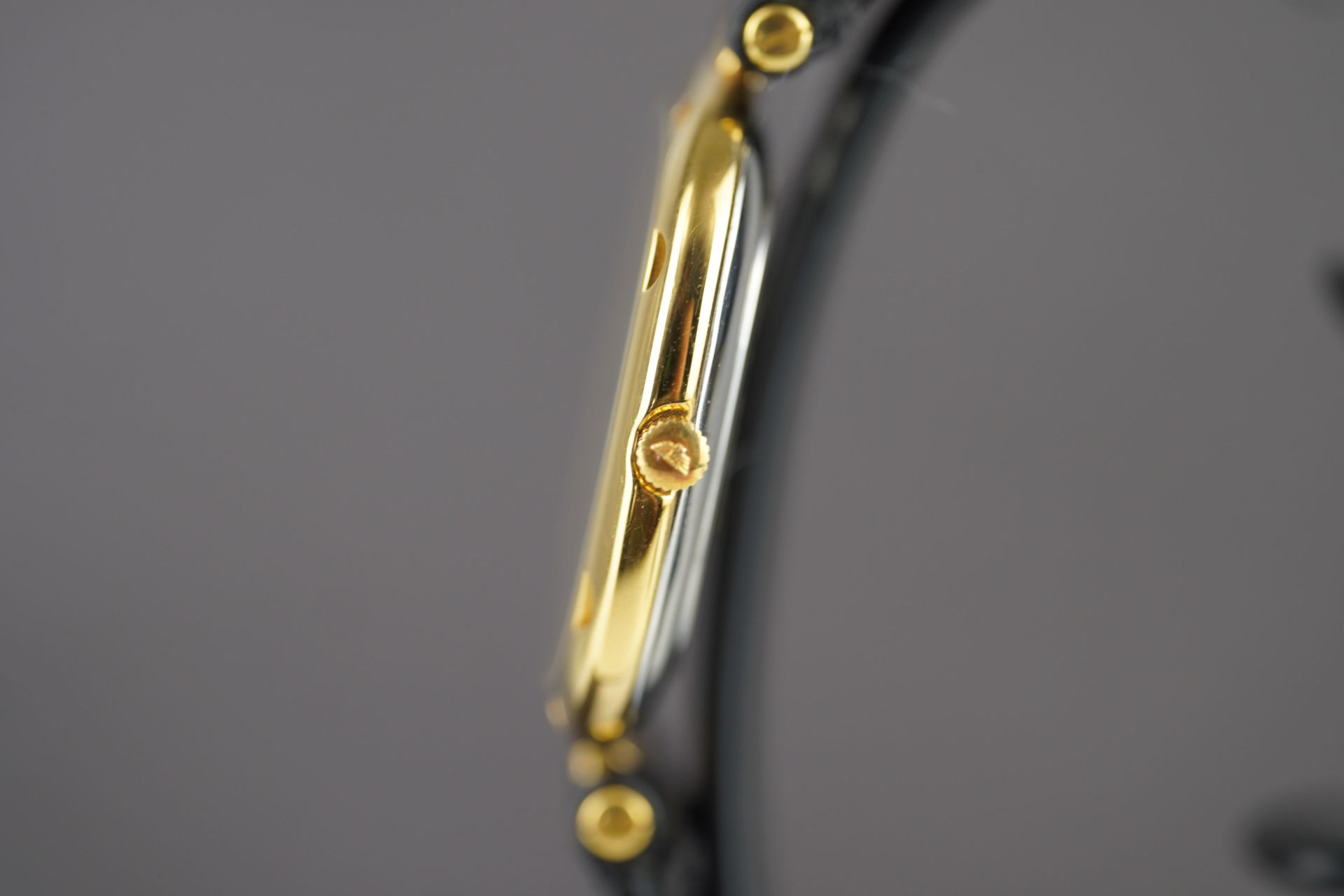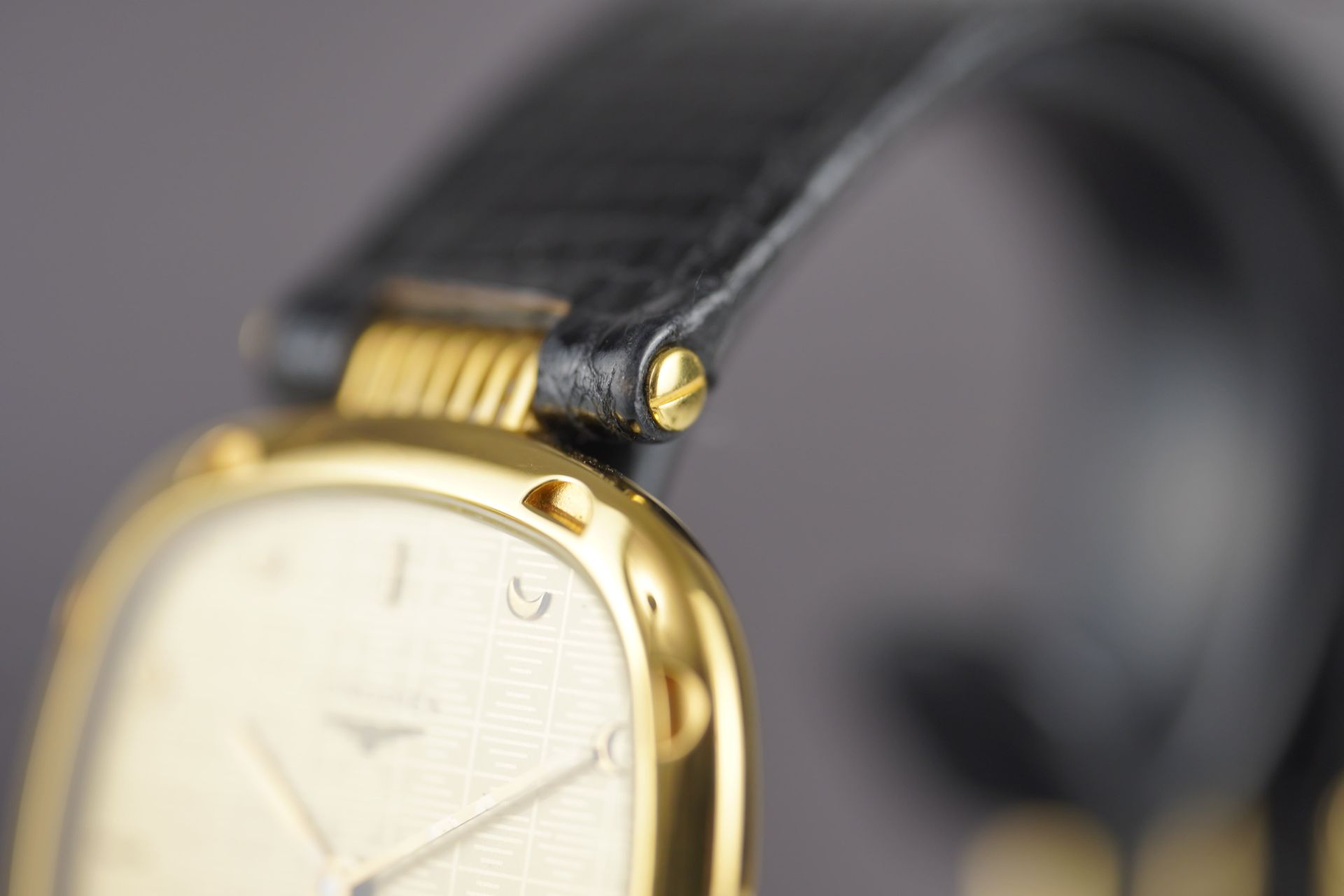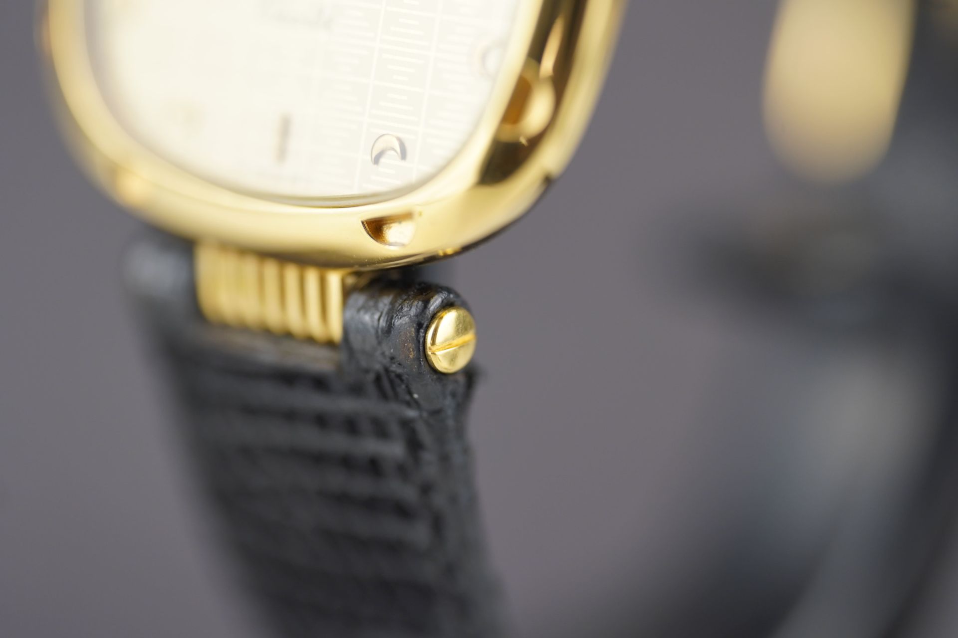 Sublimez votre poignet avec cette montre Longines unisexe, référence commerciale 150 6877. Son boîtier plaqué or de 30 mm de diamètre et d’une finesse remarquable de 4.9 mm abrite un mouvement Quartz précis. Le bracelet en cuir noir d’origine, complété par sa boucle ardillon d’origine, assure un confort élégant. Conçue pour résister à une pression de 3 ATM, cette pièce offre une fiabilité discrète. Cette montre, livrée seule, est en bon état général et bénéficie d’une garantie de 12 mois.