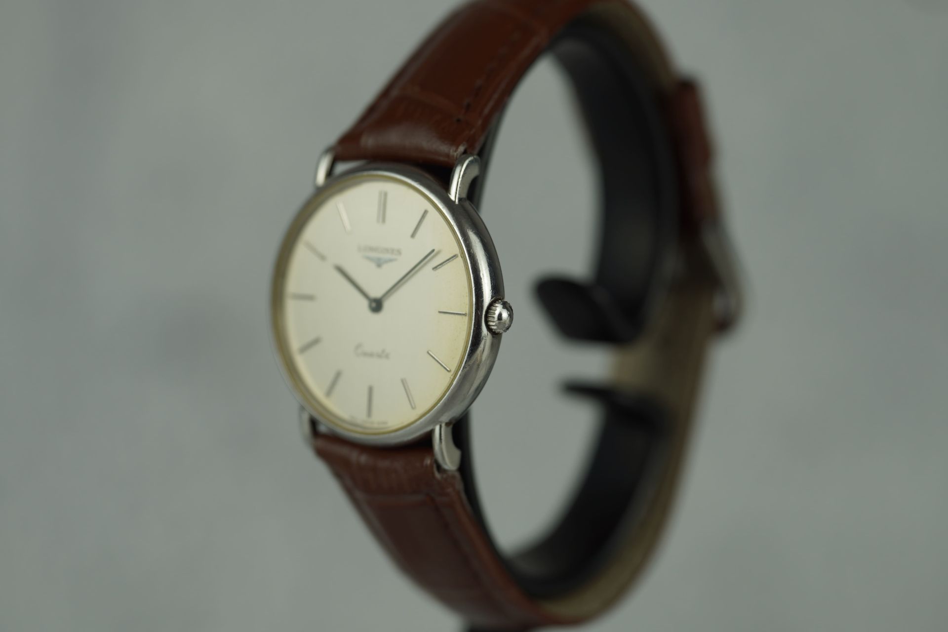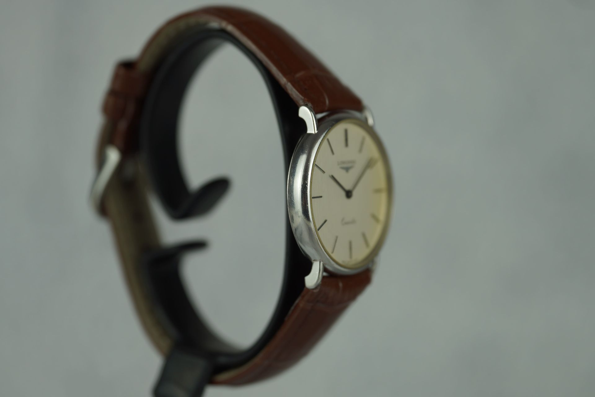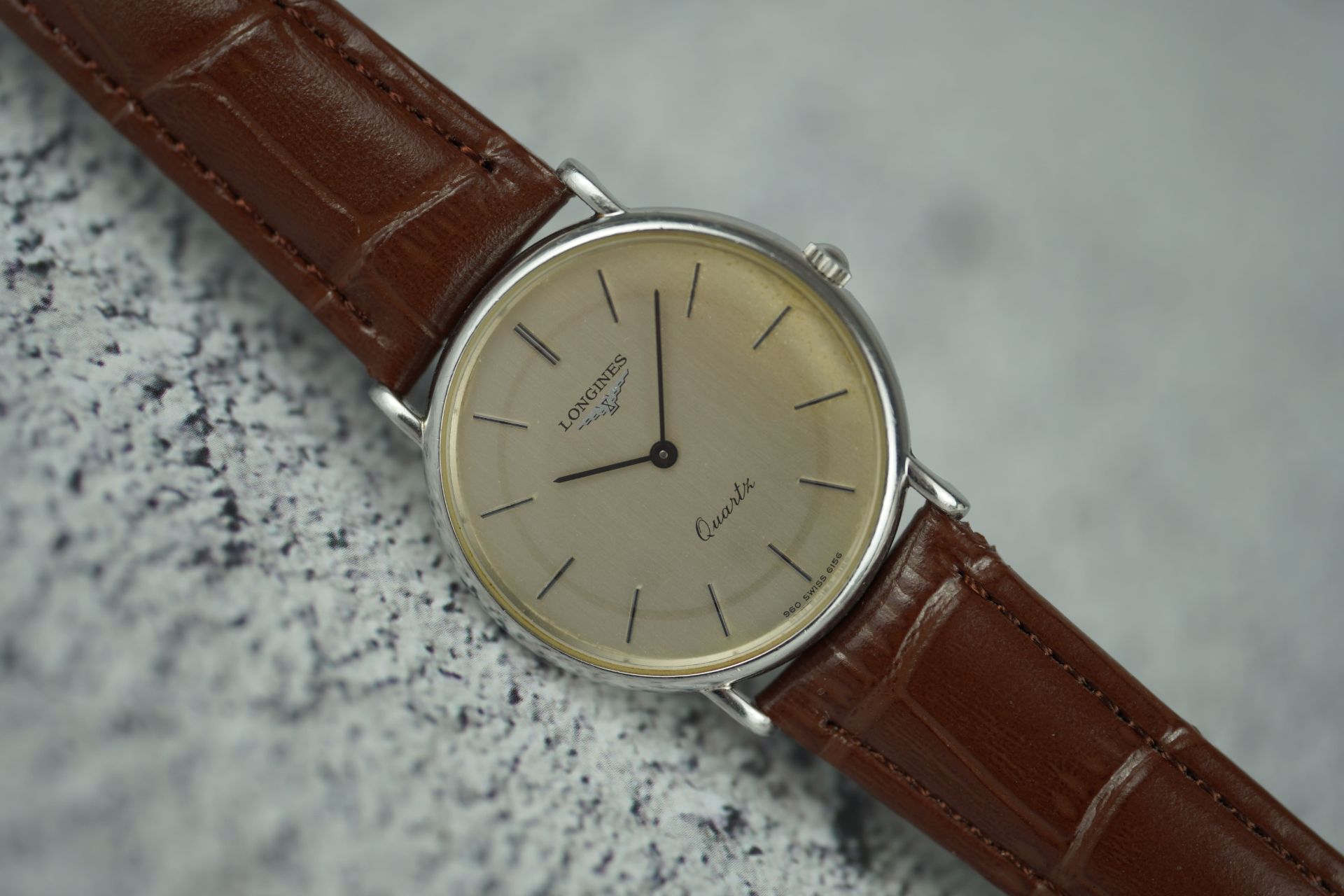 Découvrez l’élégance intemporelle avec cette montre Longines Quartz, référence commerciale 6159 6 960. Conçue en 1979, cette pièce unisexe incarne la finesse horlogère de l’époque. Son boîtier en acier de 31 mm de diamètre et d’une remarquable épaisseur de 5.3 mm abrite un mouvement à quartz précis, garantissant une fiabilité quotidienne. Elle est accompagnée d’un bracelet en cuir brun et d’une boucle ardillon, ces éléments non originaux étant en bon état. Cette montre est proposée avec une garantie de 12 mois.