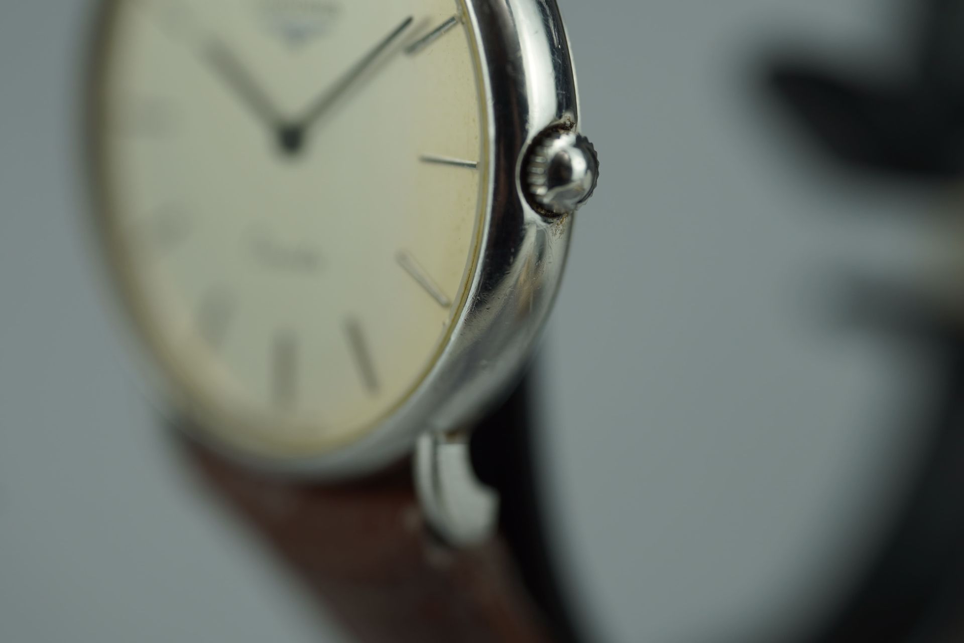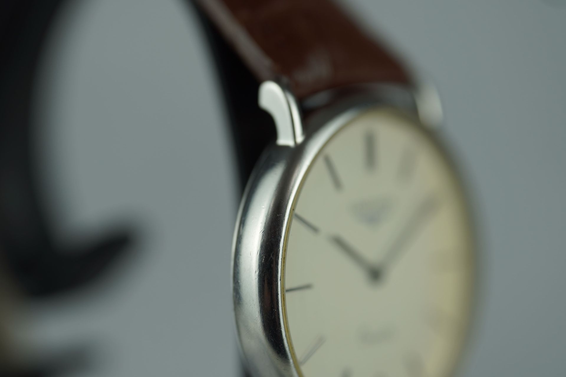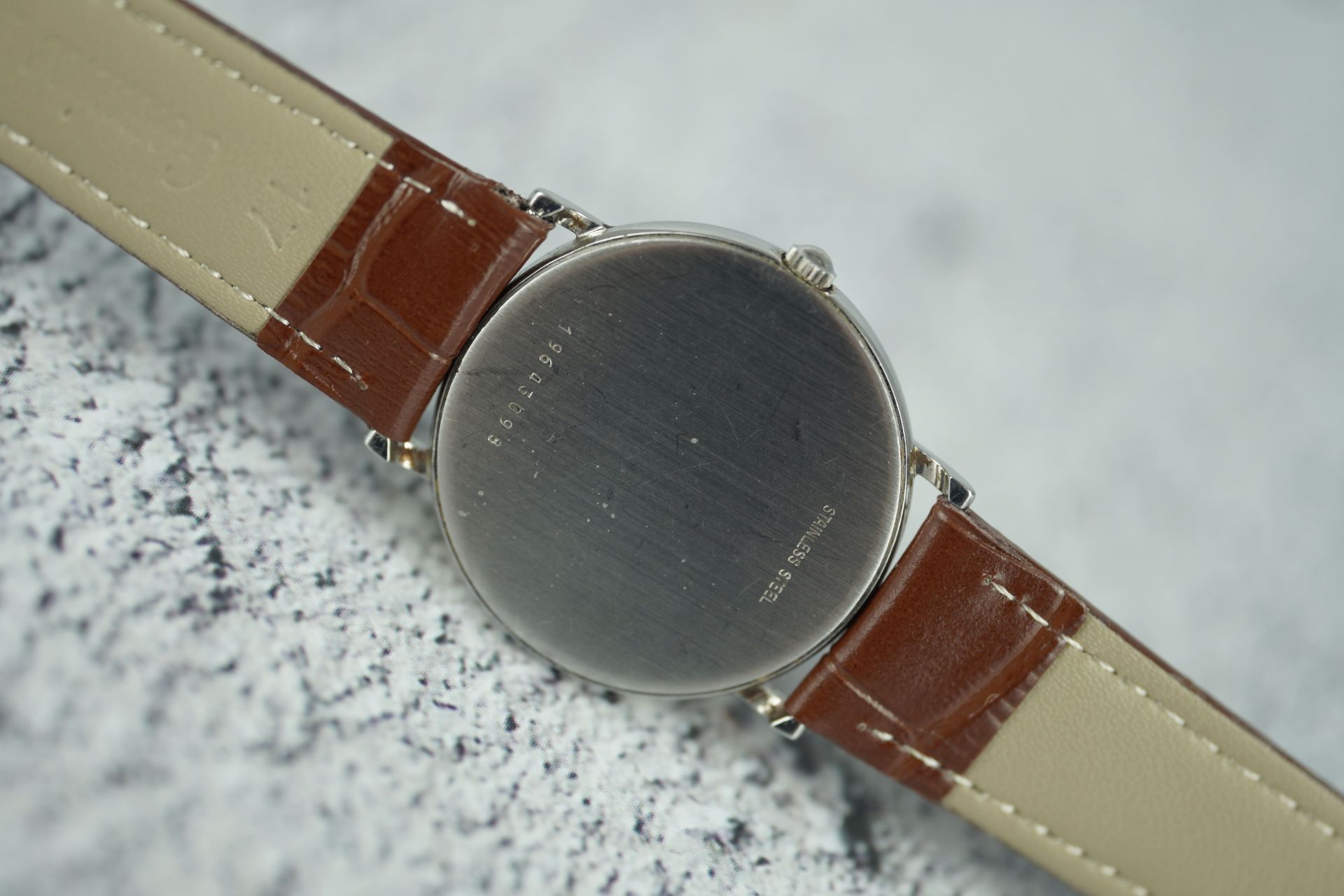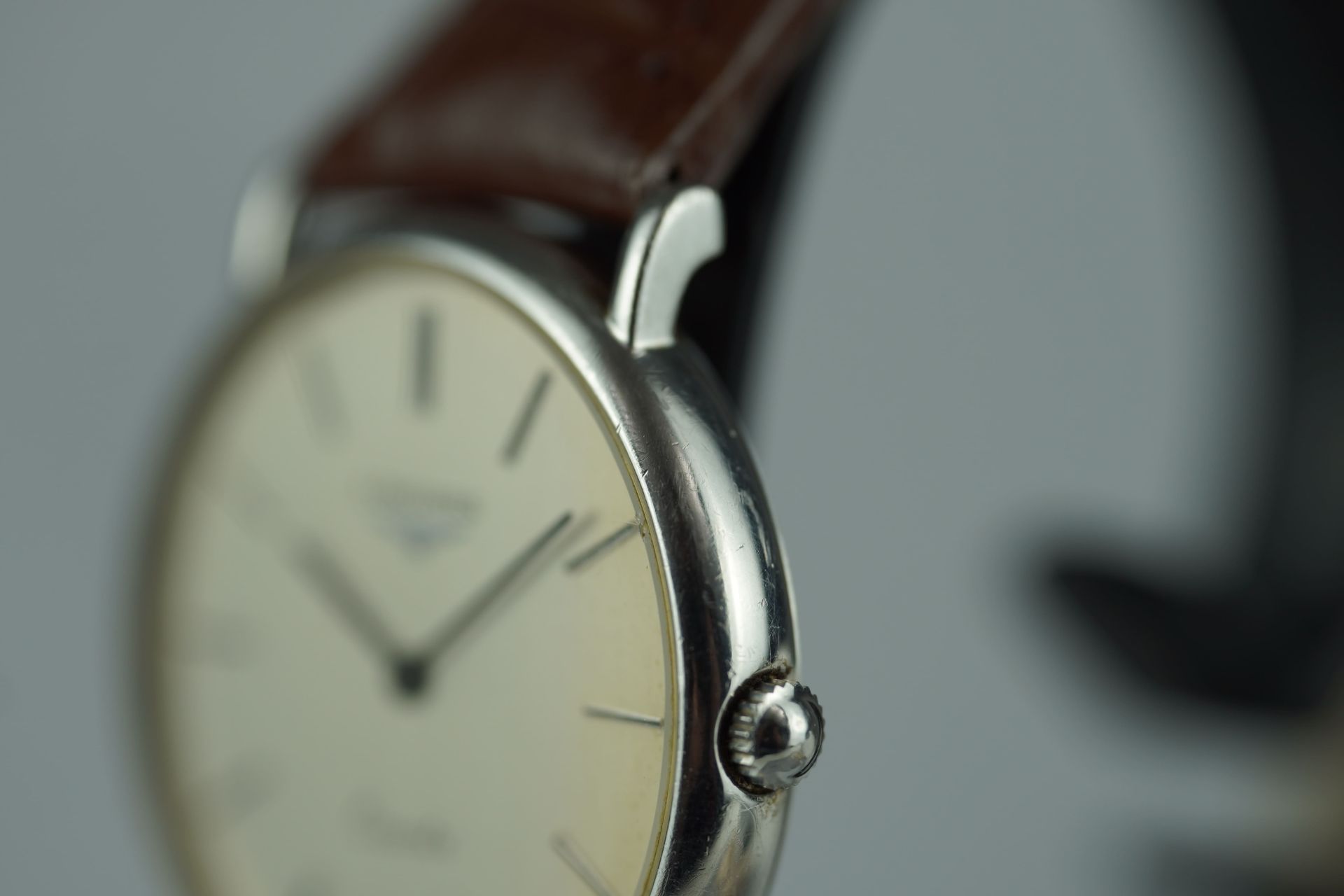 Découvrez l’élégance intemporelle avec cette montre Longines Quartz, référence commerciale 6159 6 960. Conçue en 1979, cette pièce unisexe incarne la finesse horlogère de l’époque. Son boîtier en acier de 31 mm de diamètre et d’une remarquable épaisseur de 5.3 mm abrite un mouvement à quartz précis, garantissant une fiabilité quotidienne. Elle est accompagnée d’un bracelet en cuir brun et d’une boucle ardillon, ces éléments non originaux étant en bon état. Cette montre est proposée avec une garantie de 12 mois.