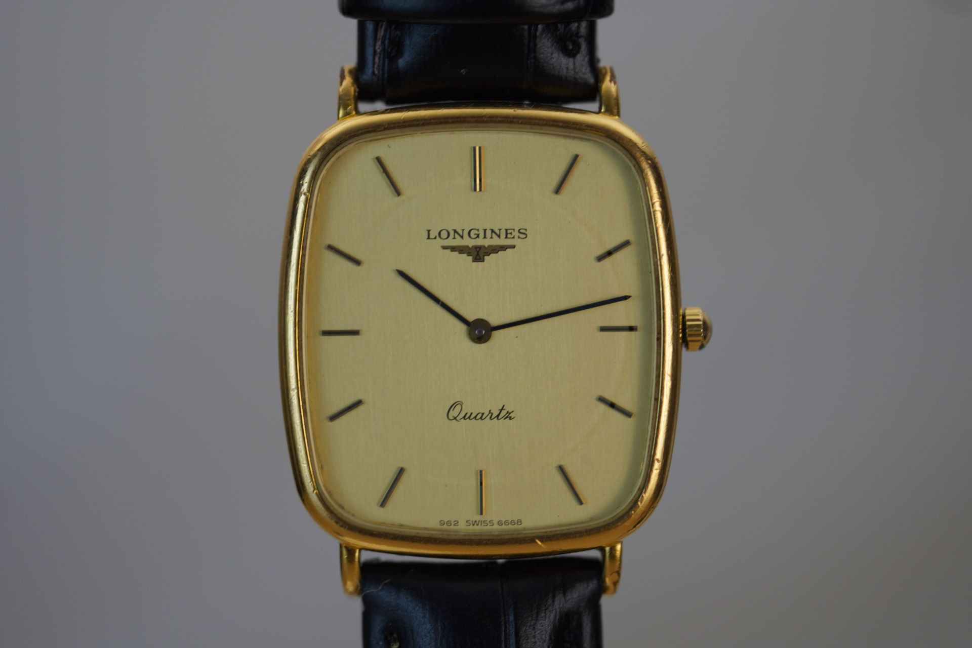 Découvrez l’élégance intemporelle de la montre Longines Quartz 962 6668, un bijou horloger qui incarne le raffinement et la sophistication. Conçue pour les hommes et les femmes, ce modèle unisexe arbore un boîtier plaqué or, ajoutant une touche de luxe à chaque poignet. Son design à la fois classique et moderne en fait un accessoire idéal pour toutes les occasions, qu’elles soient formelles ou décontractées. Bien que le bracelet ne soit pas d’origine, il offre la possibilité de personnaliser votre style selon vos envies. Apportez une touche de prestige à votre collection avec cette montre Longines, symbole d’excellence horlogère. Ne manquez pas l’opportunité de faire de cette pièce maîtresse un compagnon quotidien!