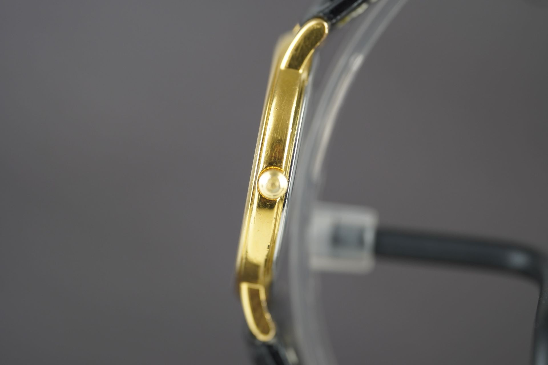 Découvrez l’élégance intemporelle avec cette montre Longines Quartz, référence L4.637.2, une pièce unisexe qui allie raffinement et précision. Son boîtier plaqué or de 32.5 mm de diamètre et d’une finesse remarquable de 5.2 mm abrite un mouvement à quartz fiable. Étanche jusqu’à 3 ATM, elle est une compagne idéale au quotidien. Le bracelet en cuir noir non-original, doté d’une boucle ardillon non-originale, contribue à son allure distinguée. Cette montre, en bon état, est accompagnée d’une garantie de 12 mois.