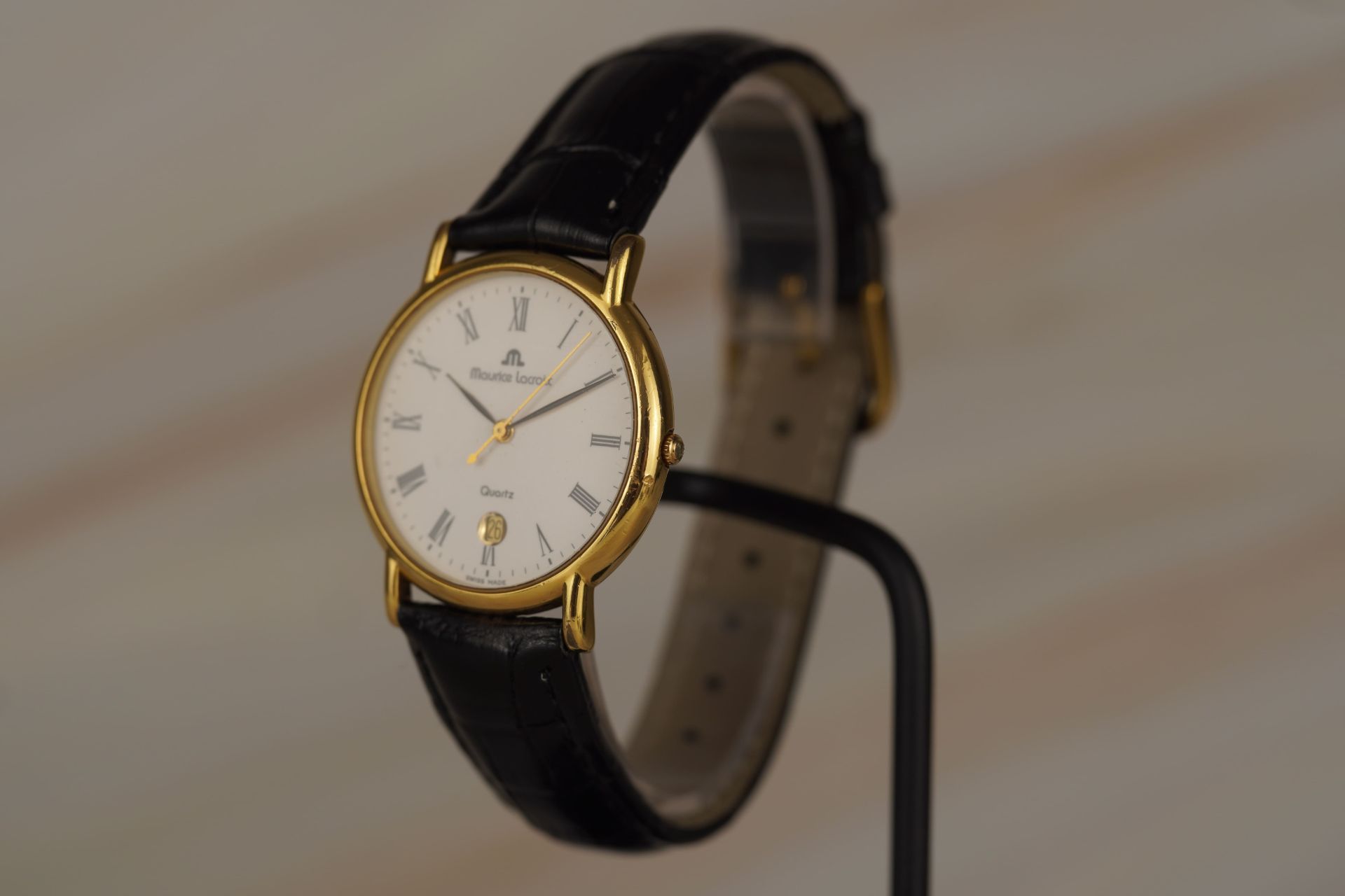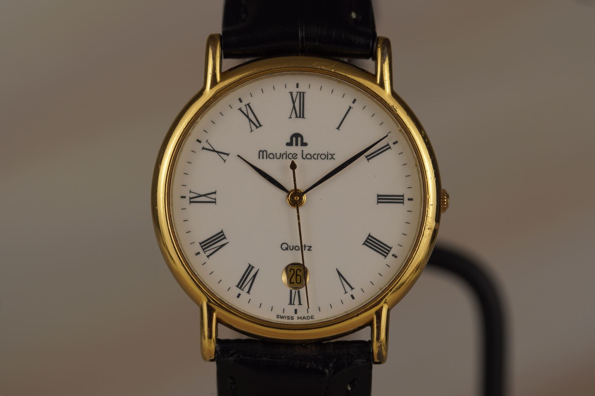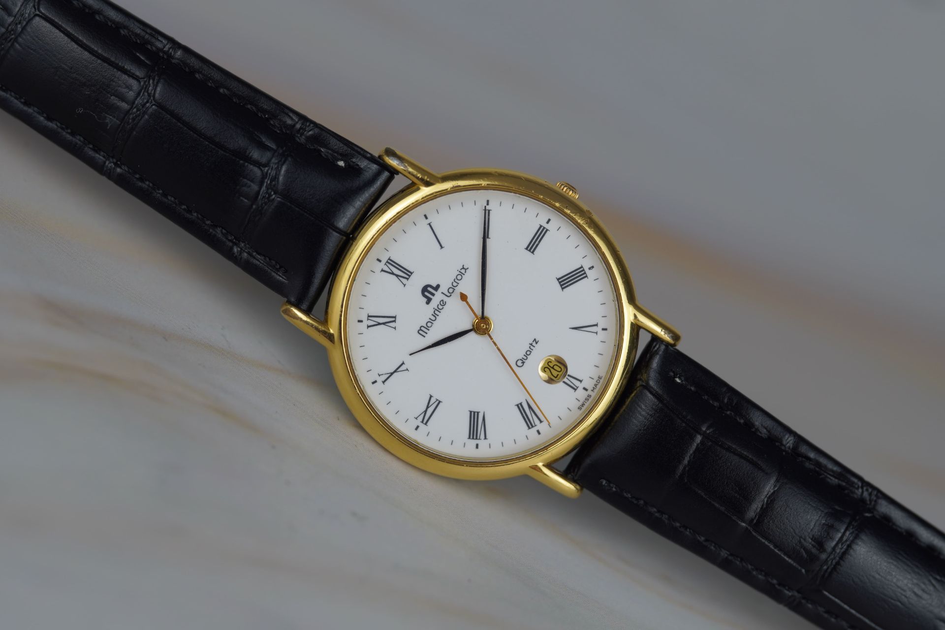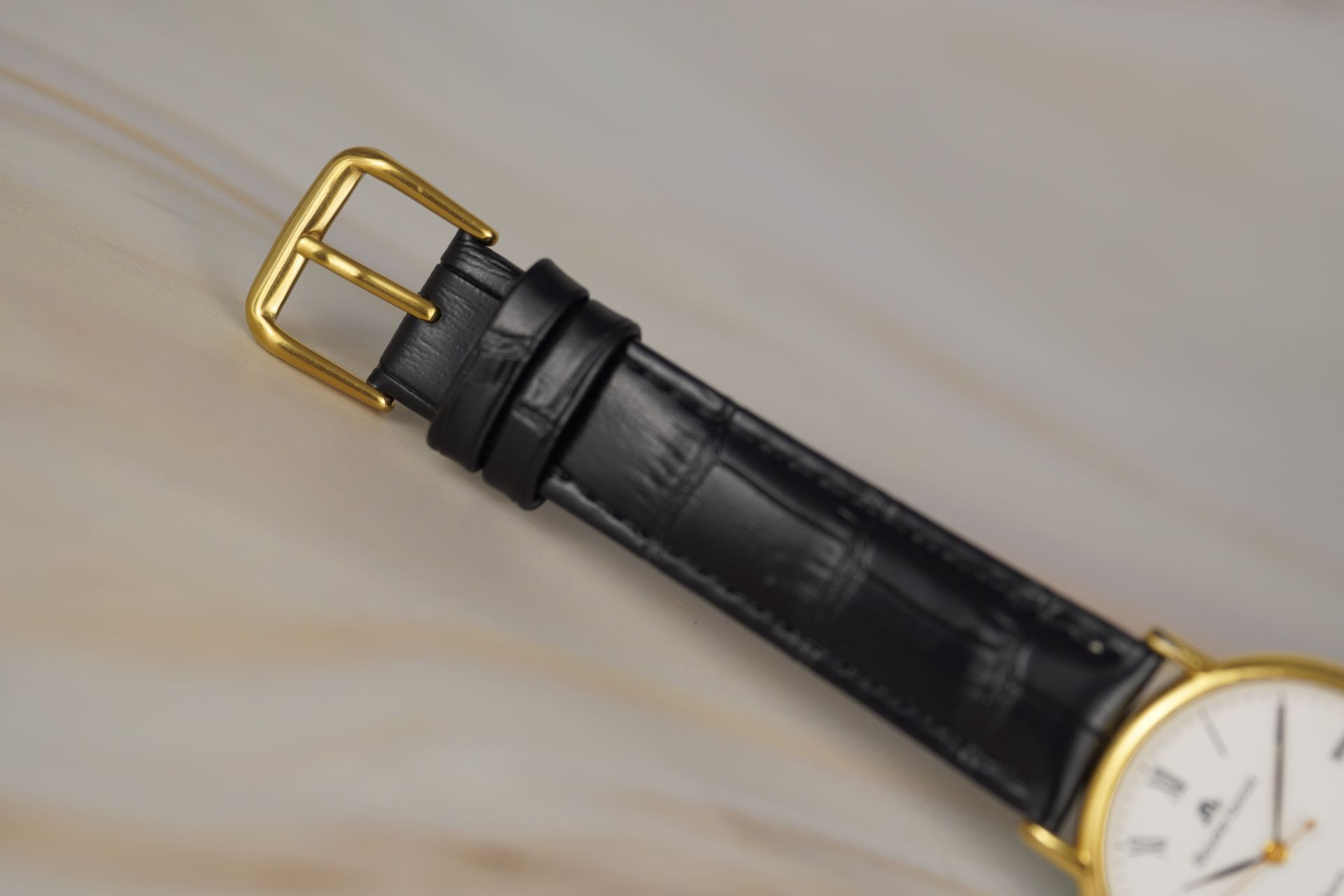 Découvrez l’élégance discrète avec cette montre Maurice Lacroix Quartz, référence commerciale 92127 (Réf. TOT-11111). Conçue pour être unisexe, elle s’adapte avec raffinement à tous les poignets. Son boîtier plaqué or de 34 mm de diamètre et de seulement 5.8 mm d’épaisseur abrite un mouvement Quartz précis et fiable. Le bracelet en cuir noir, bien que non original, se marie parfaitement avec la boucle ardillon, également non originale, ajoutant une touche de sobriété. Offrant une étanchéité de 3 ATM et présentée en bon état, cette pièce est accompagnée d’une garantie de 12 mois.