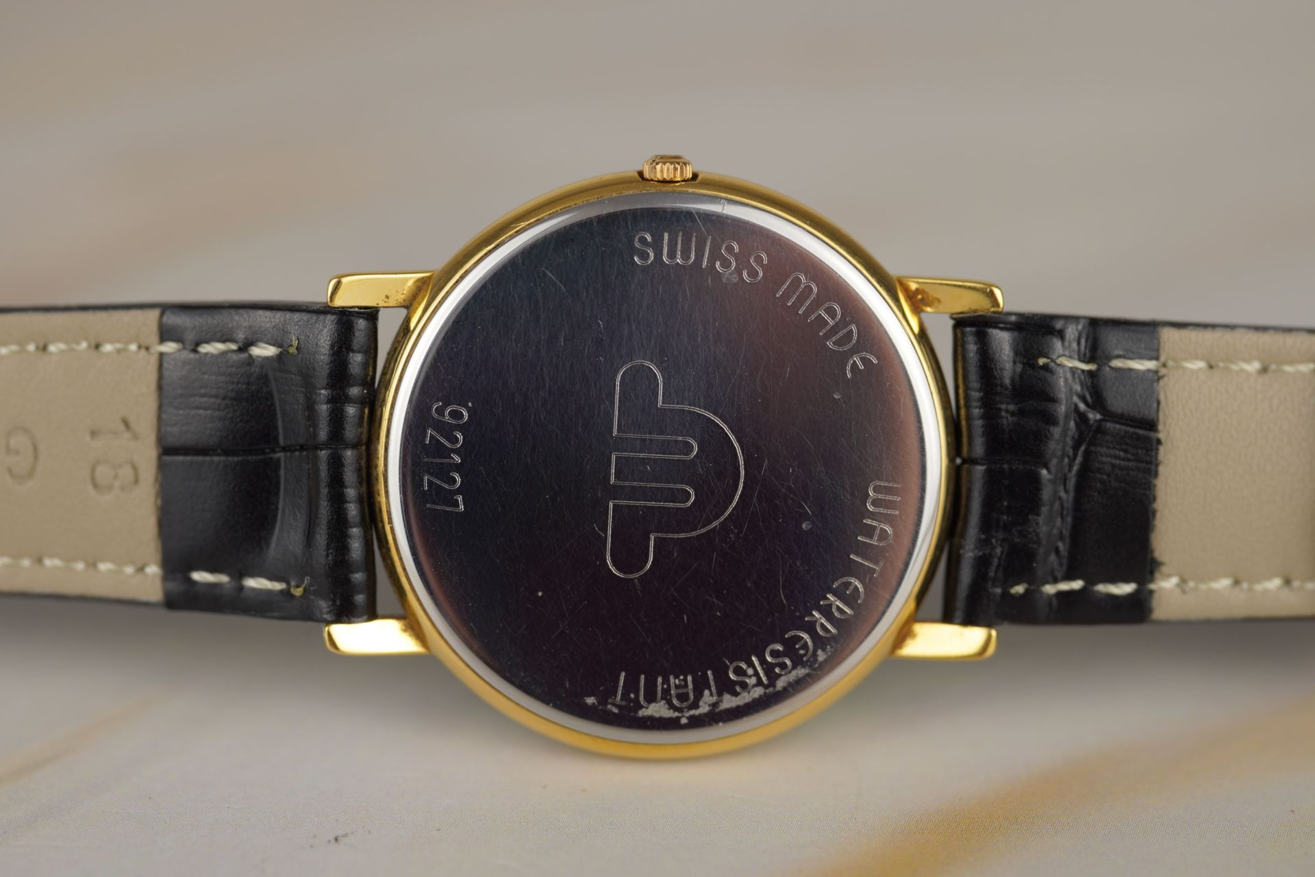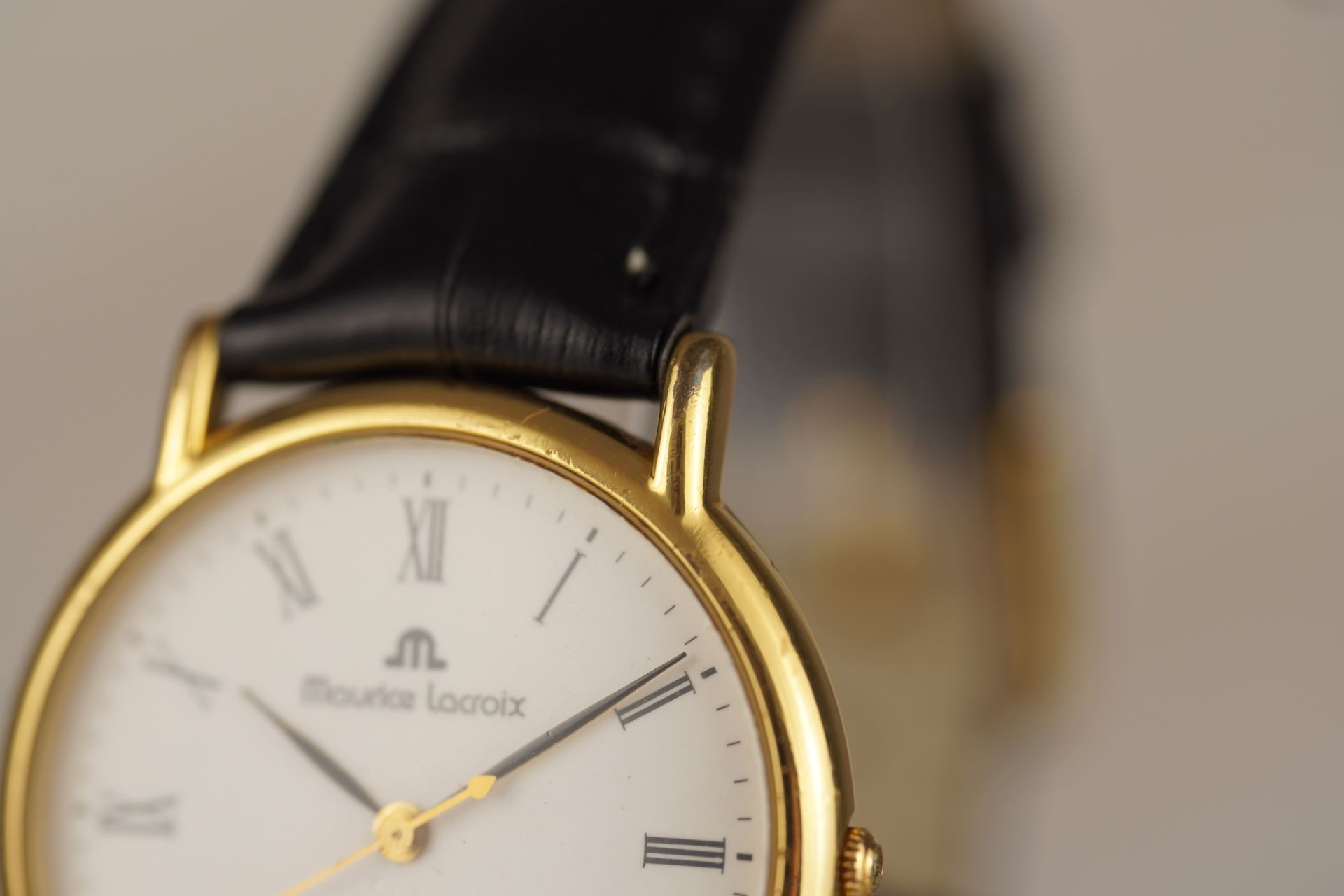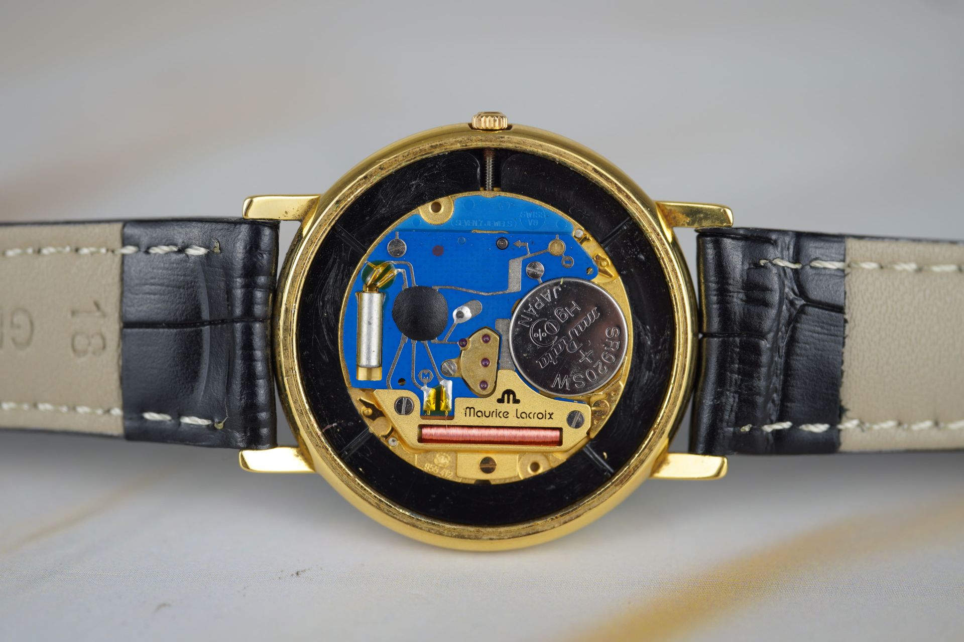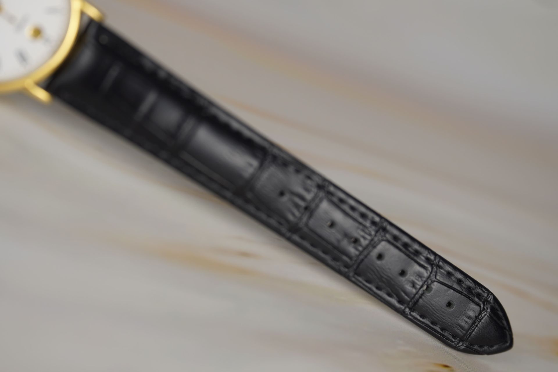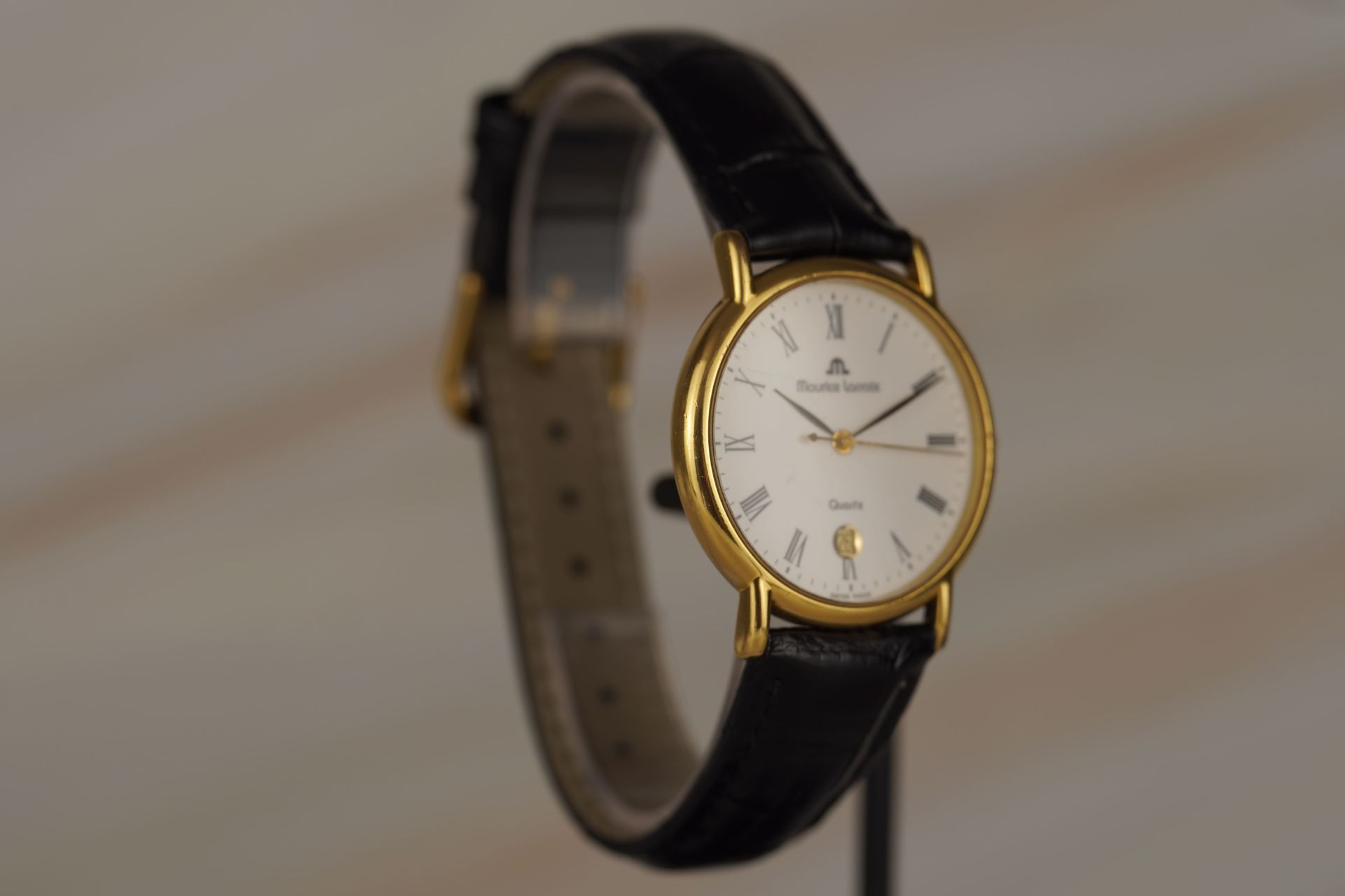 Découvrez l’élégance discrète avec cette montre Maurice Lacroix Quartz, référence commerciale 92127 (Réf. TOT-11111). Conçue pour être unisexe, elle s’adapte avec raffinement à tous les poignets. Son boîtier plaqué or de 34 mm de diamètre et de seulement 5.8 mm d’épaisseur abrite un mouvement Quartz précis et fiable. Le bracelet en cuir noir, bien que non original, se marie parfaitement avec la boucle ardillon, également non originale, ajoutant une touche de sobriété. Offrant une étanchéité de 3 ATM et présentée en bon état, cette pièce est accompagnée d’une garantie de 12 mois.