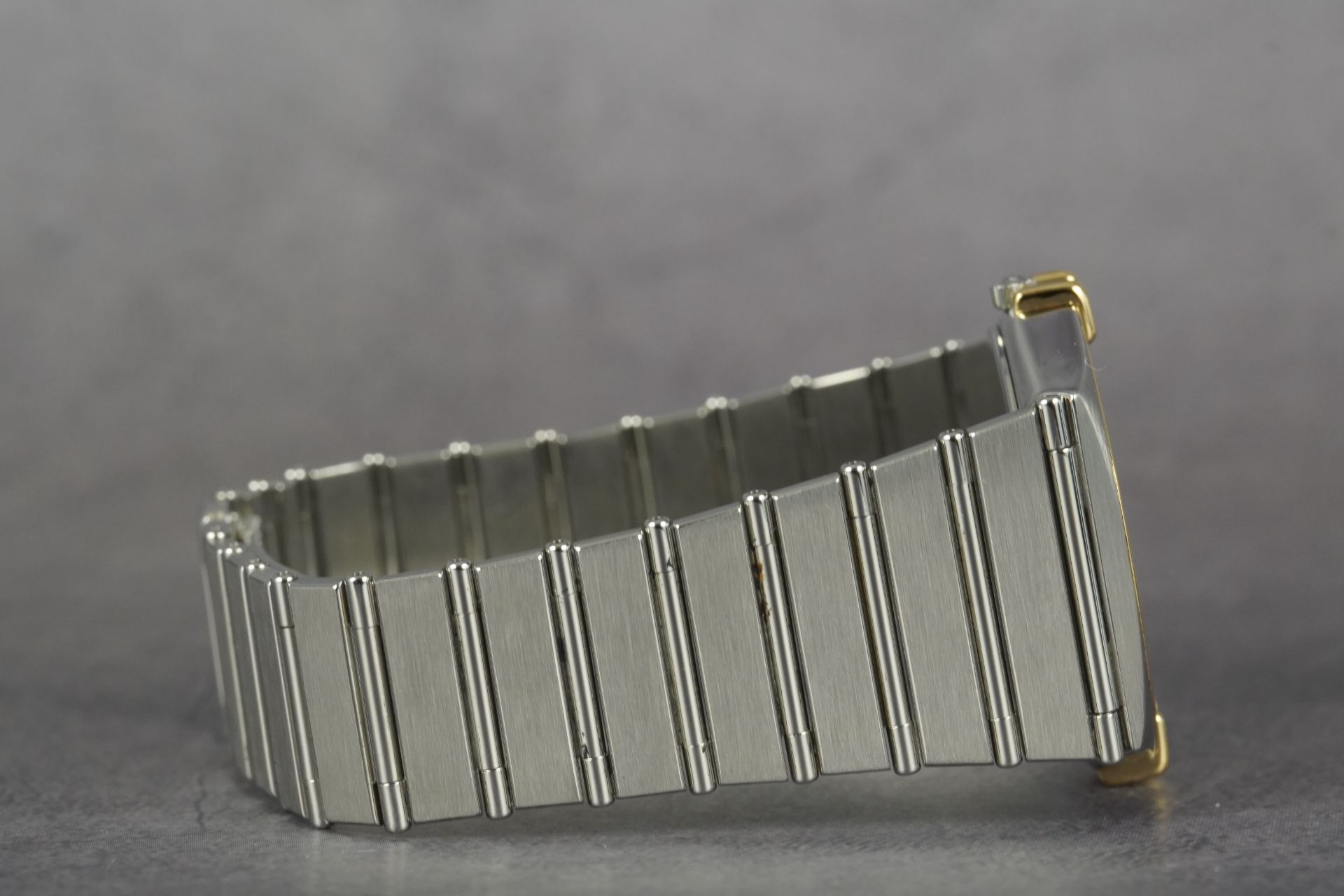 Découvrez l’élégance intemporelle de cette montre Omega Constellation référence 396.1070 pour homme. Arborant un design raffiné en or et acier de 34mm de diamètre pour 6.5mm d’épaisseur, cette pièce iconique de 1991 est animée par un mouvement à quartz précis. Son bracelet en acier d’origine, complété par une boucle déployante originale, assure un confort et un style inégalés. Cette montre est livrée seule. Elle est en très bon état et bénéficie d’une garantie de 12 mois.