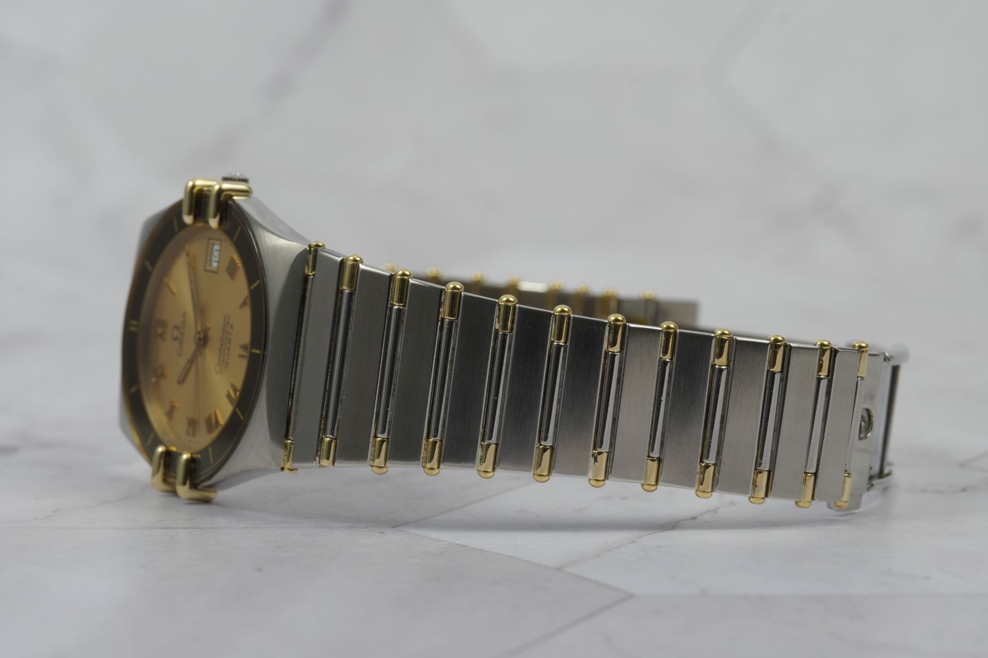Découvrez l’élégance intemporelle de la montre Omega Constellation Chronometer « Manhattan » référence 198.0140. Conçue pour les hommes et femmes, cette pièce emblématique arbore un boîtier en acier de 33 mm, incarnant le savoir-faire exceptionnel d’Omega. Le bracelet, alliant or et acier, mesure 18 cm et présente une authenticité indéniable grâce à sa boucle d’origine. Que ce soit pour une occasion spéciale ou au quotidien, cette montre est le parfait mélange de sophistication et de robustesse. Ne laissez pas passer l’opportunité d’ajouter cette pièce maîtresse à votre collection, un véritable symbole du style et de la performance horlogère.