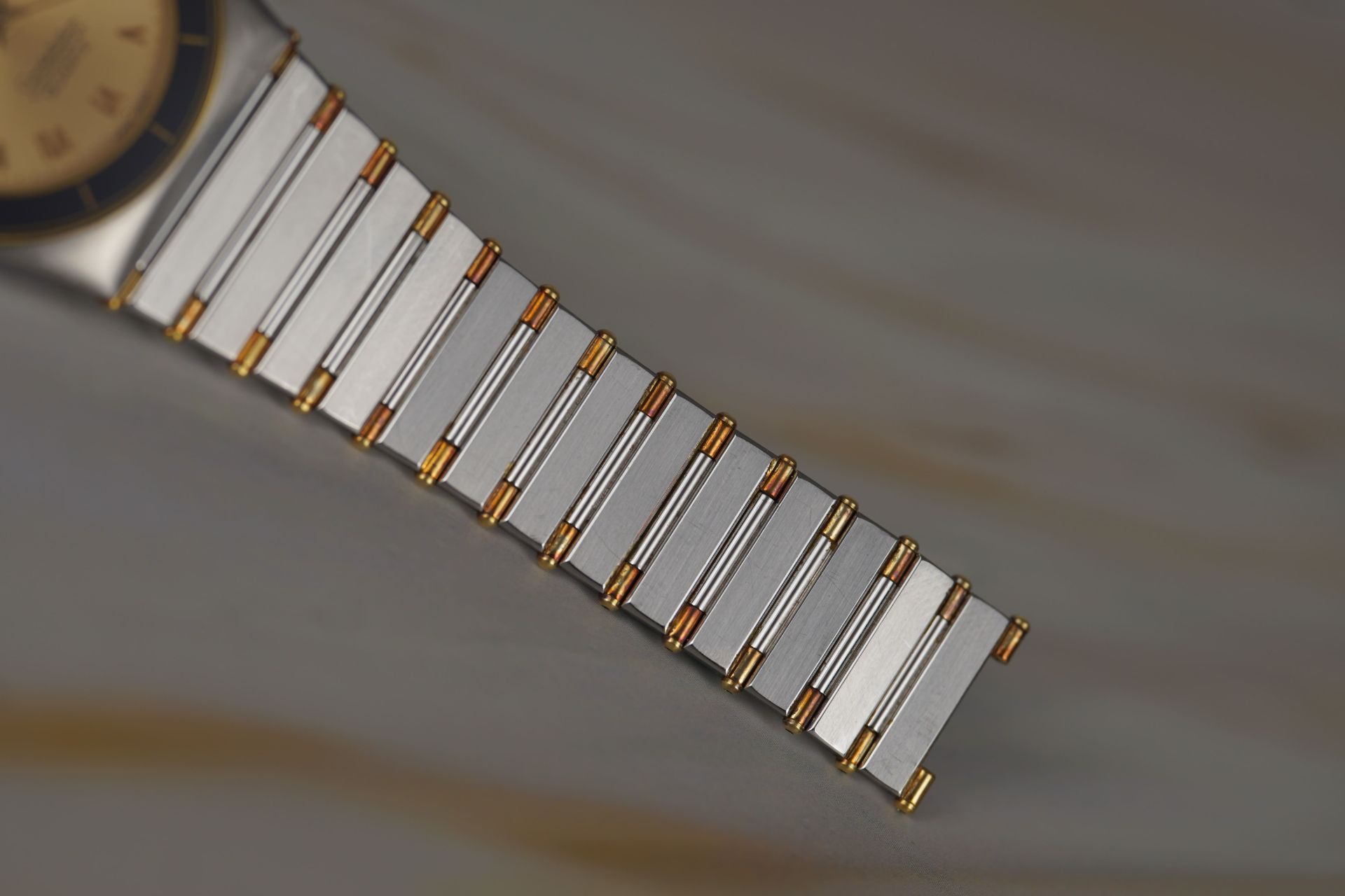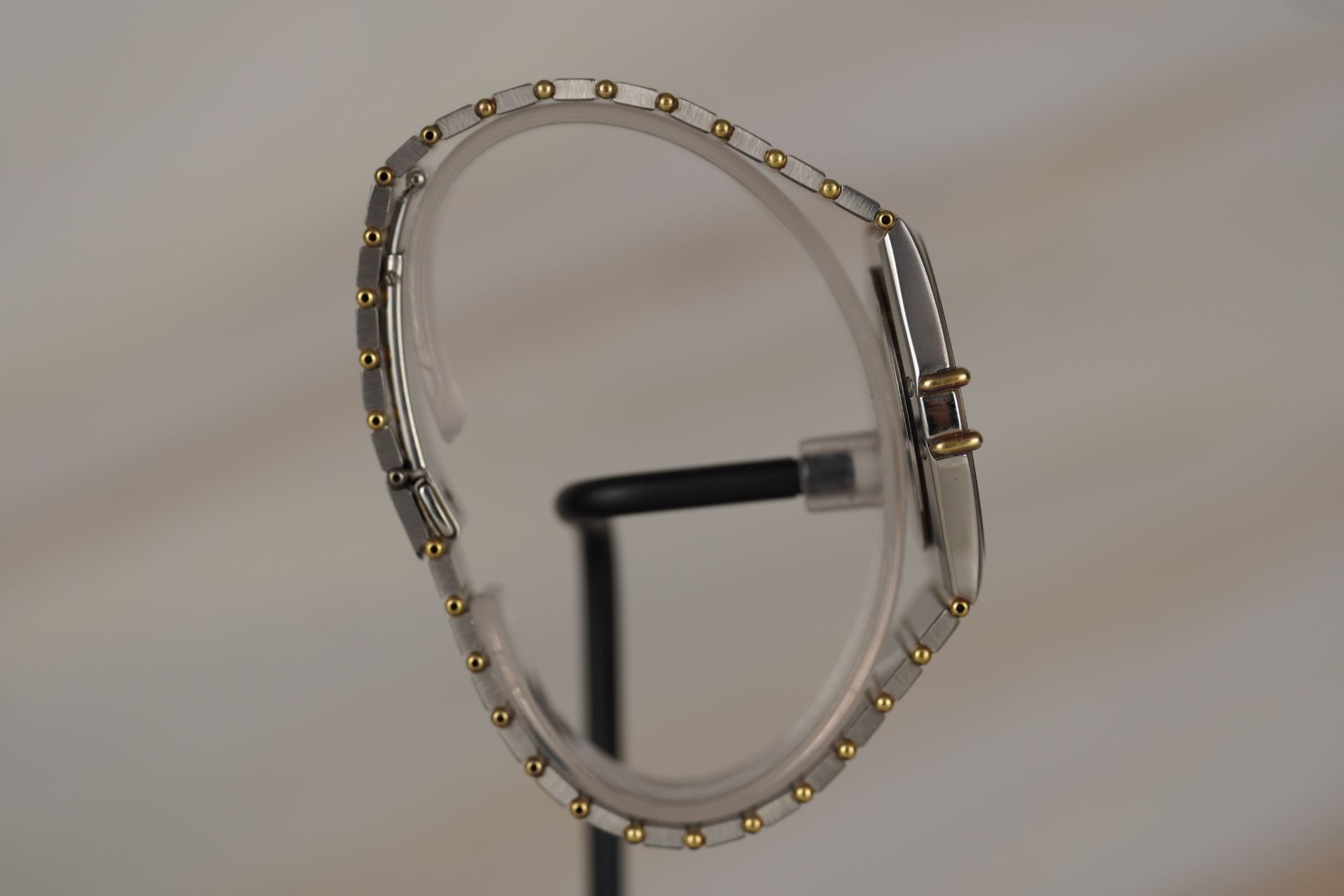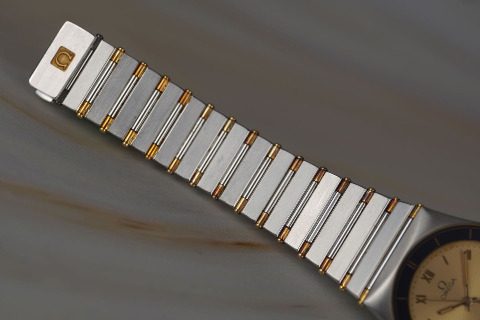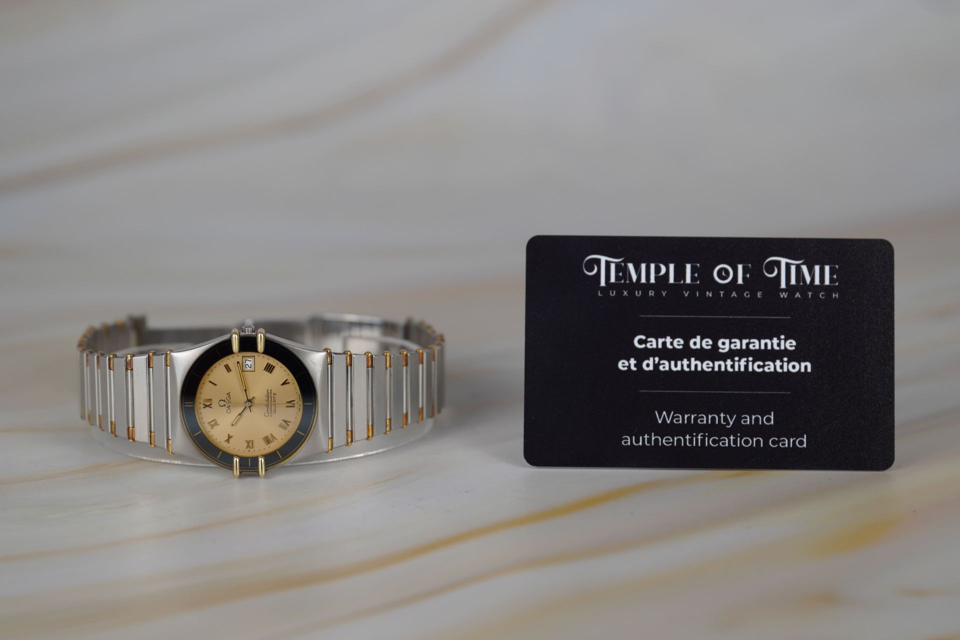 Plongez dans l’élégance intemporelle avec cette Omega Constellation Chronometer « Manhattan »unisexe, Référence commerciale 198.0140. Son boîtier distinctif en acier de 33 mm de diamètre, avec une fine épaisseur de 5.7 mm, abrite un mouvement Quartz précis, assurant une fiabilité horlogère. Le bracelet bicolore Or/Acier, d’origine, s’harmonise parfaitement avec la boucle déployante, également d’origine. Cette pièce iconique, proposée en bon état, est livrée seule. Elle est couverte par une garantie de 12 mois.