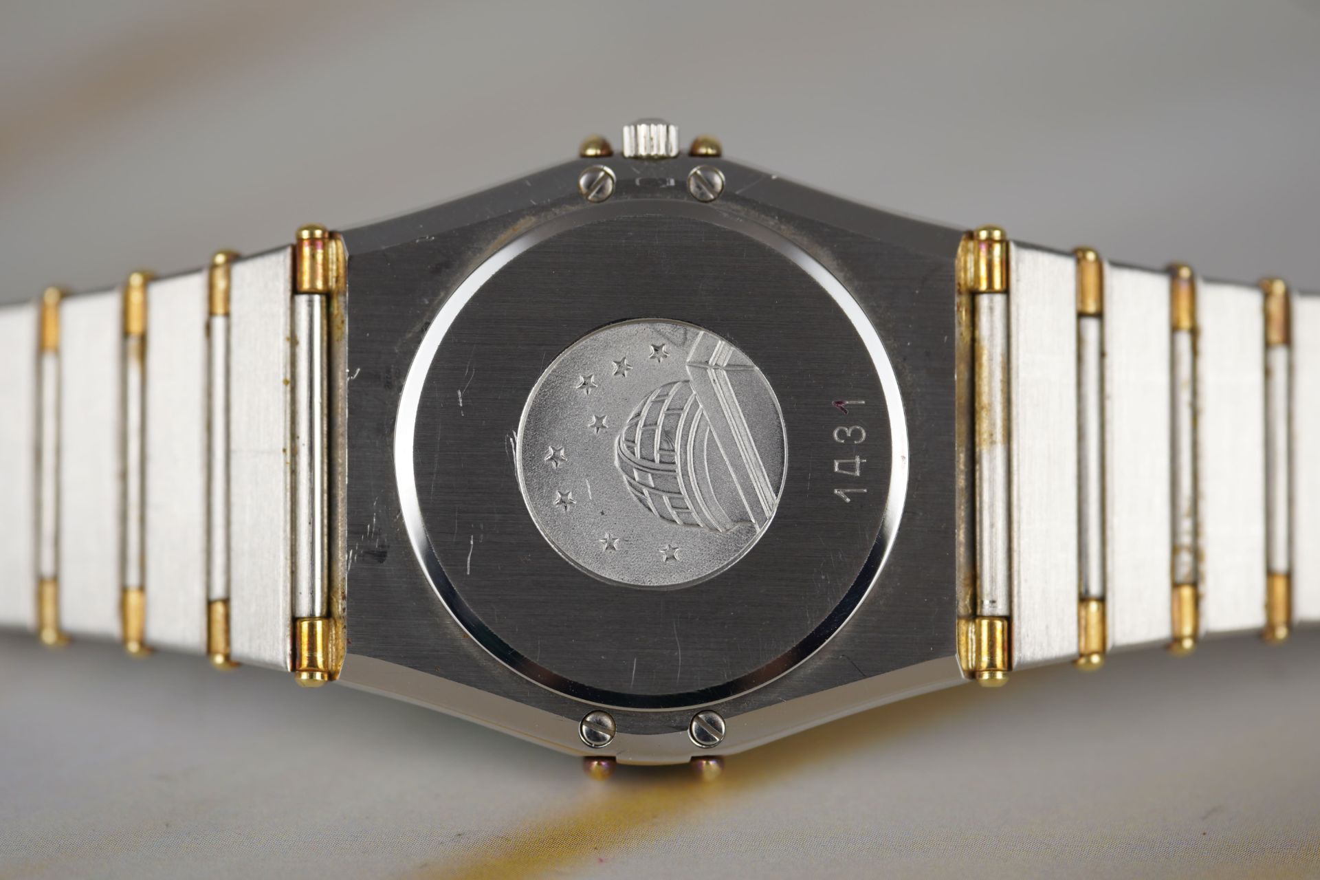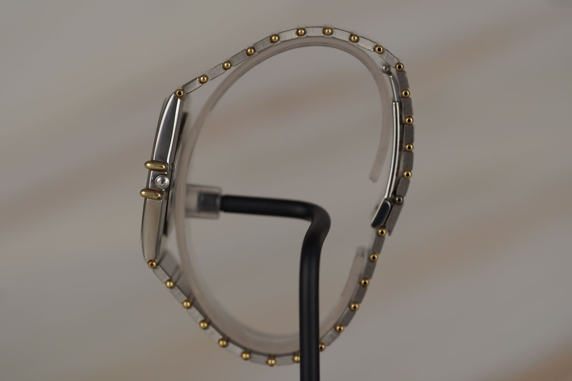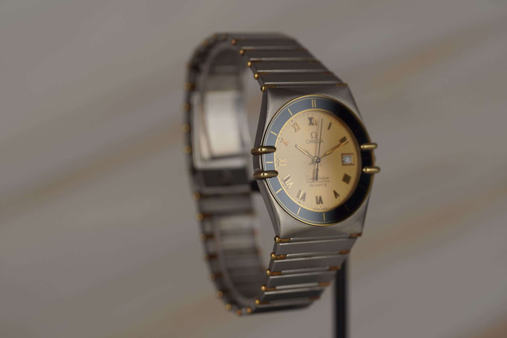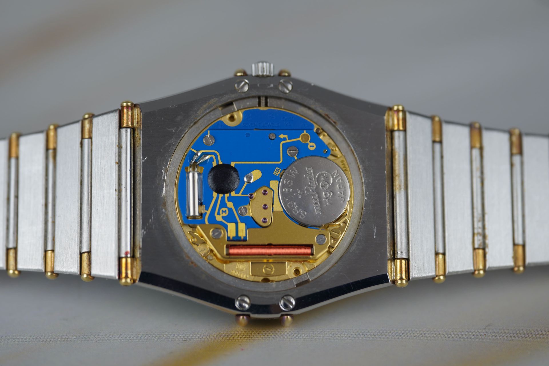 Plongez dans l’élégance intemporelle avec cette Omega Constellation Chronometer « Manhattan »unisexe, Référence commerciale 198.0140. Son boîtier distinctif en acier de 33 mm de diamètre, avec une fine épaisseur de 5.7 mm, abrite un mouvement Quartz précis, assurant une fiabilité horlogère. Le bracelet bicolore Or/Acier, d’origine, s’harmonise parfaitement avec la boucle déployante, également d’origine. Cette pièce iconique, proposée en bon état, est livrée seule. Elle est couverte par une garantie de 12 mois.