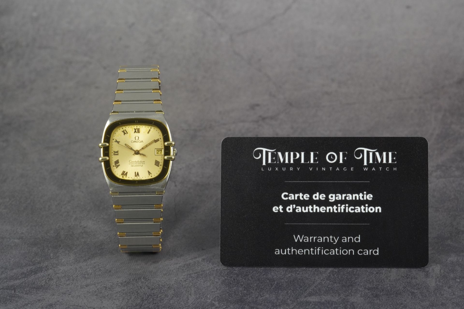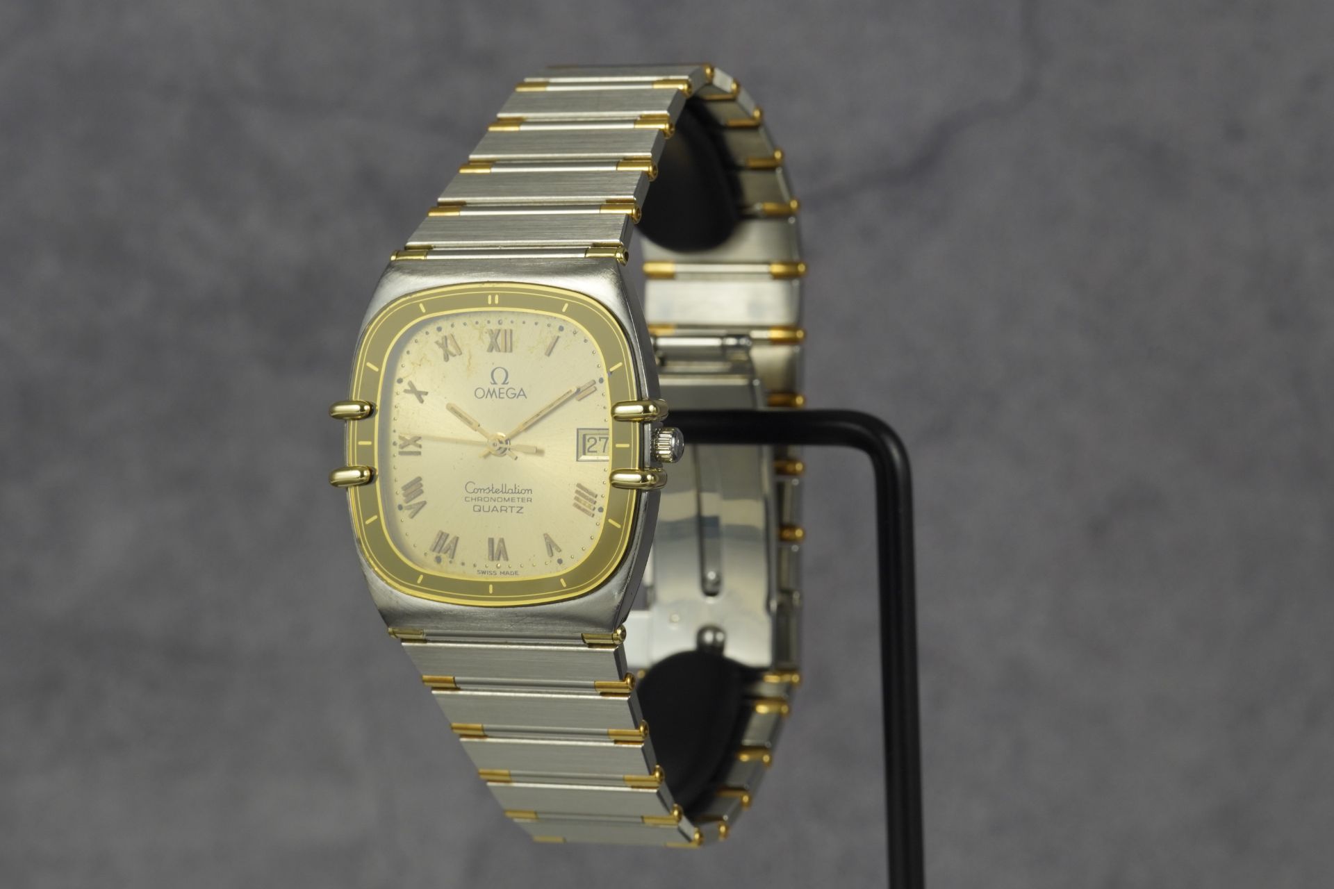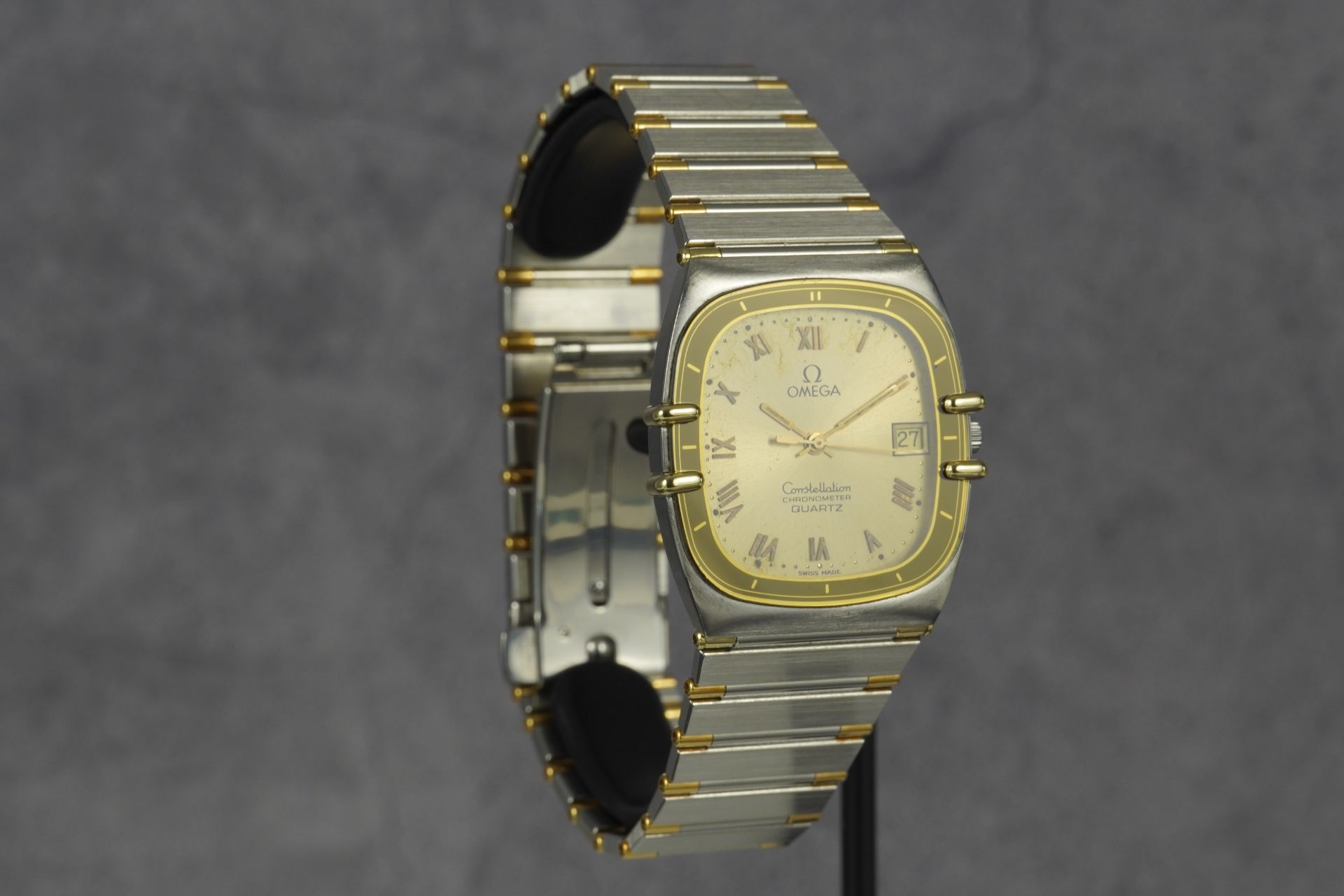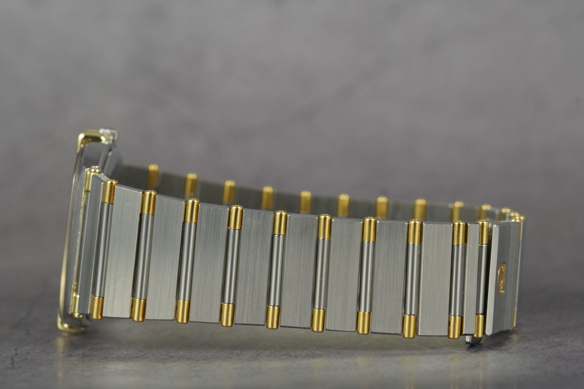 Plongez dans l’héritage horloger d’Omega avec cette montre unisexe Constellation Chronometer « Manhattan » « Tv », référence commerciale 198.0141. Son boîtier distinctif de 30mm en or et acier, affichant une épaisseur de seulement 5.4mm, incarne une élégance intemporelle. Animée par un mouvement à quartz d’une précision exemplaire, elle offre une fiabilité reconnue. Le bracelet et la boucle déployante, tous deux originaux et en or et acier, parachèvent l’esthétique raffinée de ce modèle iconique de 1984. Malgré son âge, son état est très bon, témoignant d’un soin particulier. Cette montre est fournie seule et bénéficie d’une garantie de 12 mois.