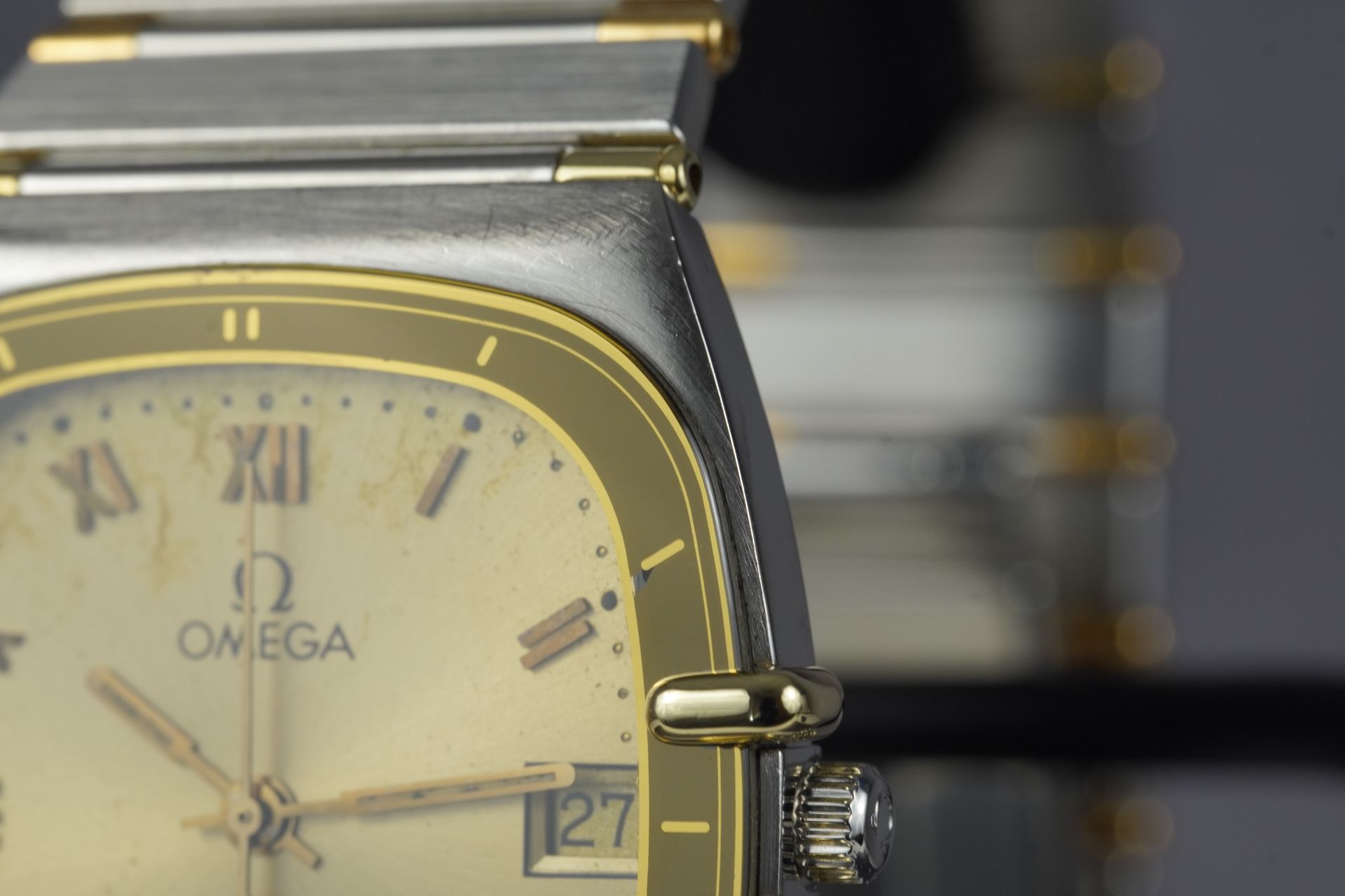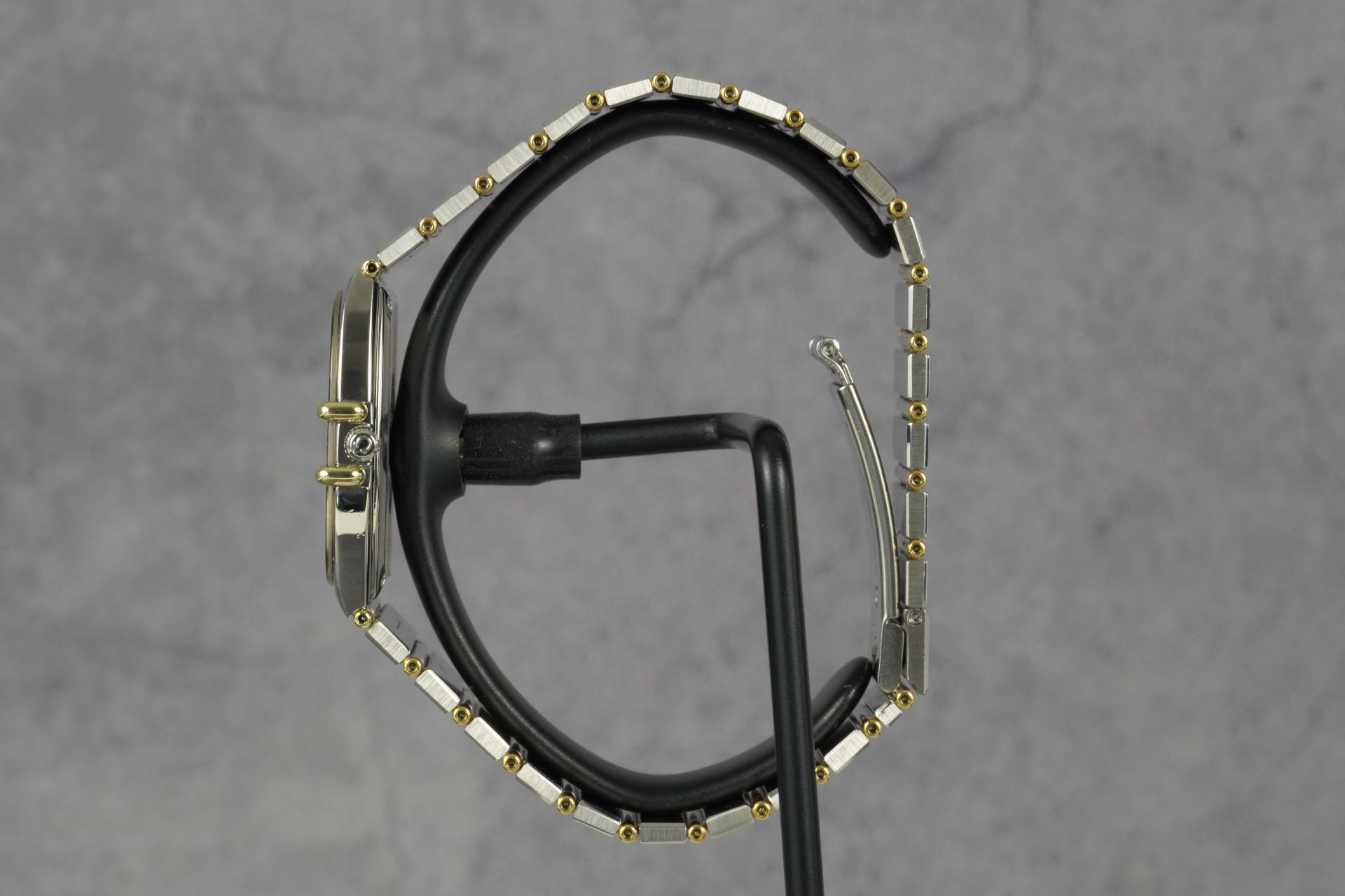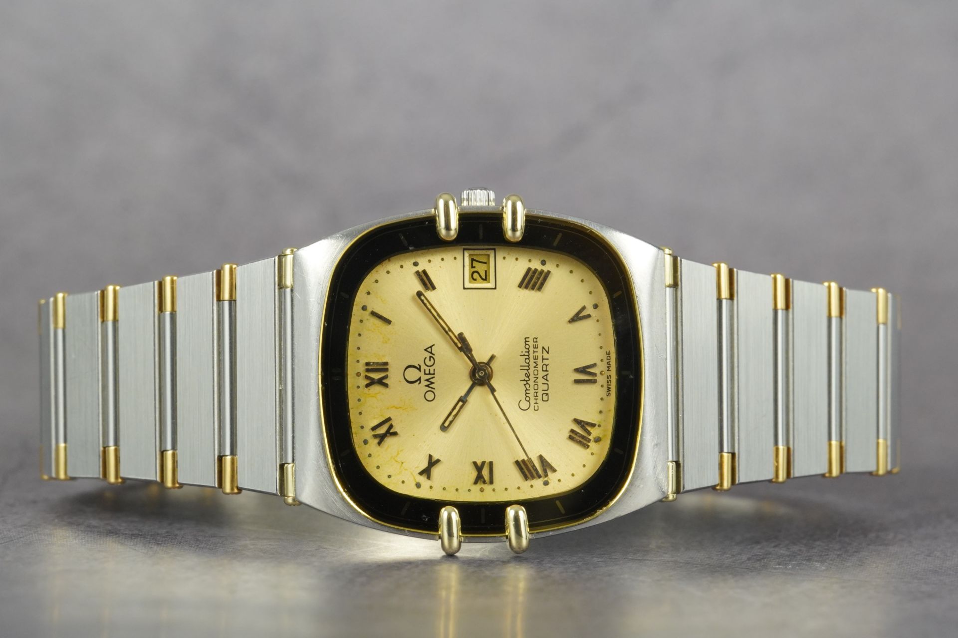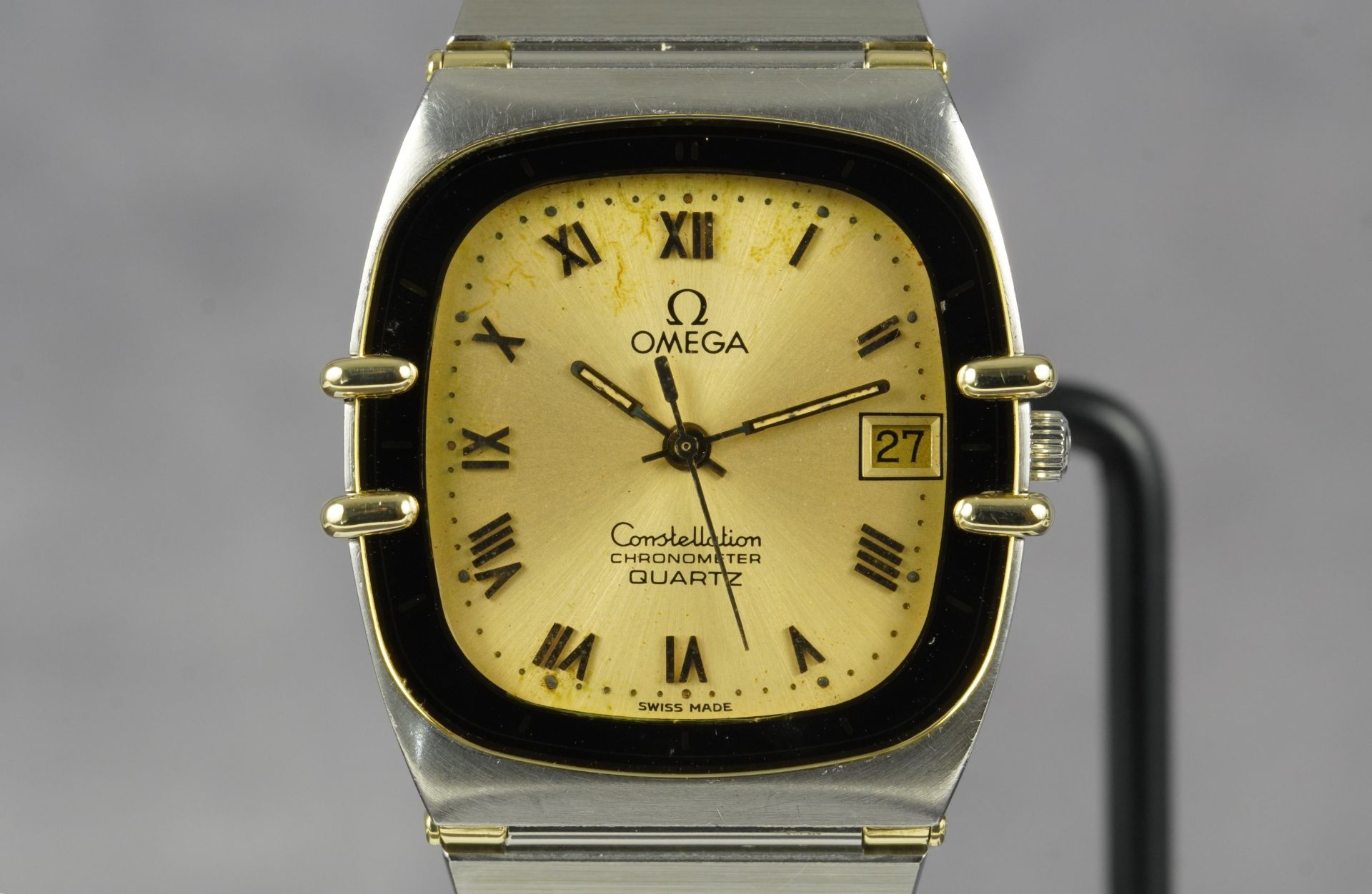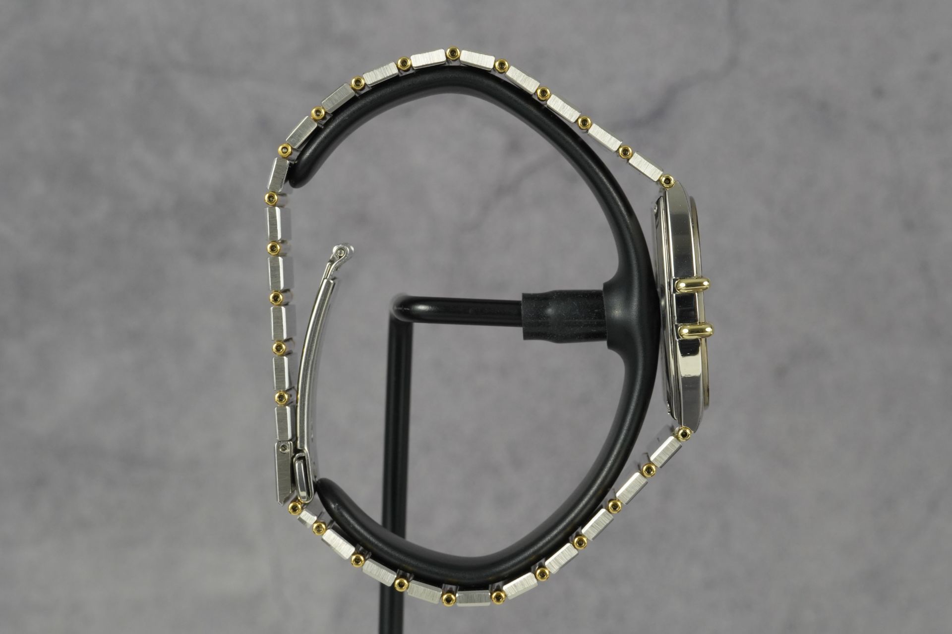 Plongez dans l’héritage horloger d’Omega avec cette montre unisexe Constellation Chronometer « Manhattan » « Tv », référence commerciale 198.0141. Son boîtier distinctif de 30mm en or et acier, affichant une épaisseur de seulement 5.4mm, incarne une élégance intemporelle. Animée par un mouvement à quartz d’une précision exemplaire, elle offre une fiabilité reconnue. Le bracelet et la boucle déployante, tous deux originaux et en or et acier, parachèvent l’esthétique raffinée de ce modèle iconique de 1984. Malgré son âge, son état est très bon, témoignant d’un soin particulier. Cette montre est fournie seule et bénéficie d’une garantie de 12 mois.
