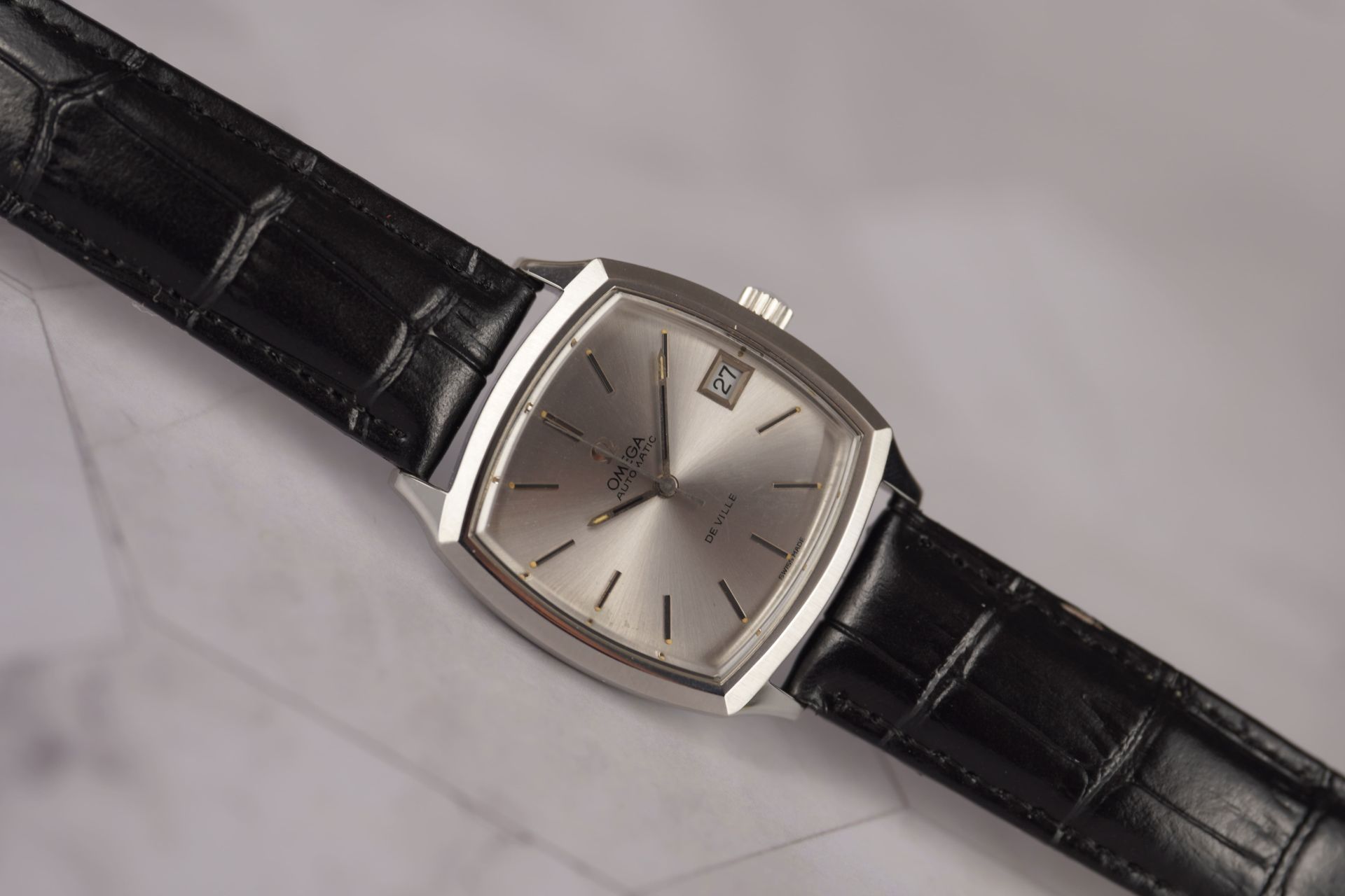 Plongez dans l’héritage horloger d’Omega avec cette montre De Ville pour homme, référence commerciale 166.075. Arborant la référence TOT-10852, elle est livrée avec son coffret, soulignant son caractère précieux. Son boîtier en acier de 33.3mm de diamètre et 9.2mm d’épaisseur abrite un mouvement à remontage automatique, gage de fiabilité. Le cadran est sublimé par un bracelet en cuir noir (non original) et une boucle ardillon (non originale) complétant son allure. Cette pièce, datant de 1970 et en très bon état, a bénéficié d’une dernière révision en juin 2025 et est couverte par une garantie de 12 mois.