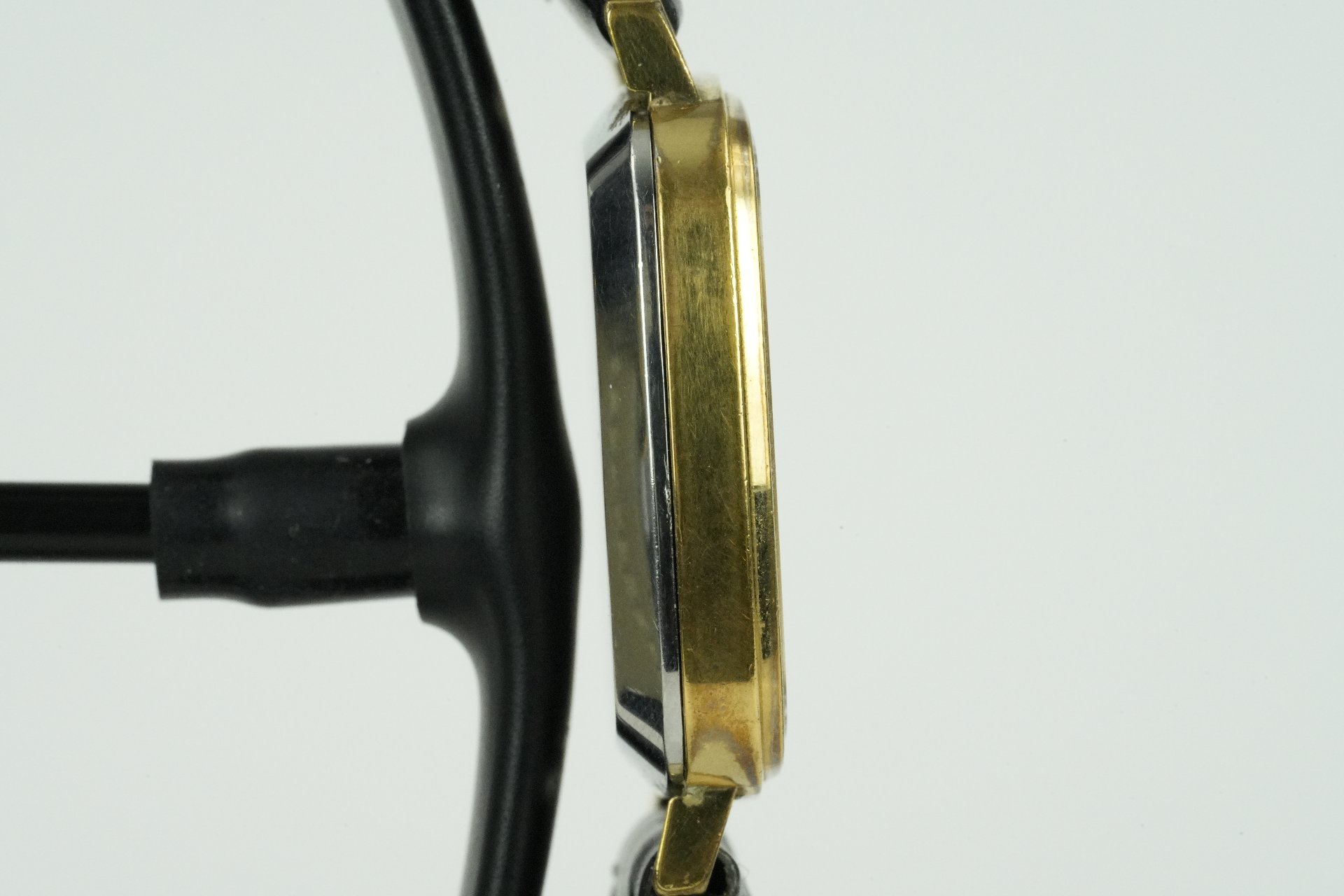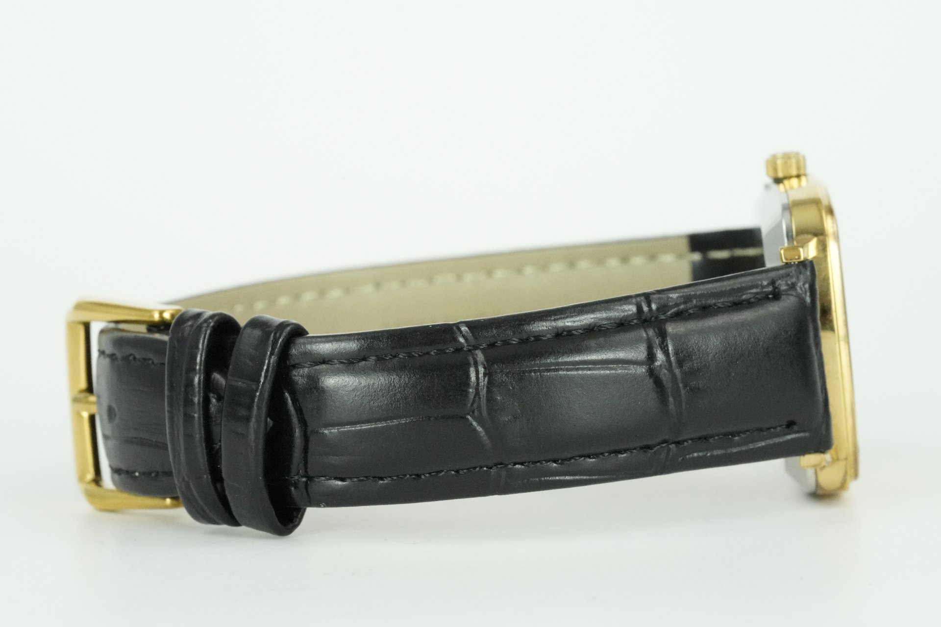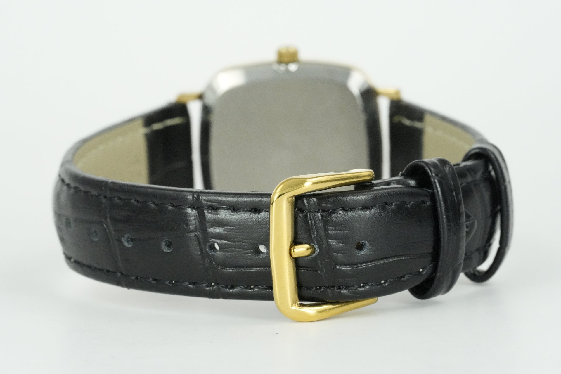 Découvrez cette élégante Omega De Ville « Tv », référence commerciale 191.0045, un modèle unisexe datant de 1978. Animée par un mouvement Quartz de précision, elle incarne la finesse horlogère de l’époque. Son boîtier plaqué or de 30.9mm de diamètre et 7.2mm d’épaisseur révèle un design distinctif. Le bracelet en cuir noir non-original, sécurisé par une boucle ardillon également non-originale, s’harmonise parfaitement à son allure générale en bon état. Cette pièce horlogère est proposée seule et bénéficie d’une garantie de 12 mois.
