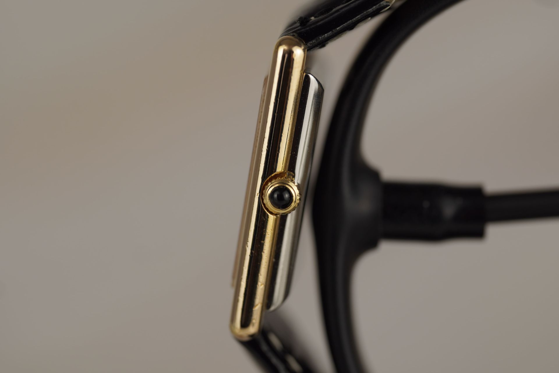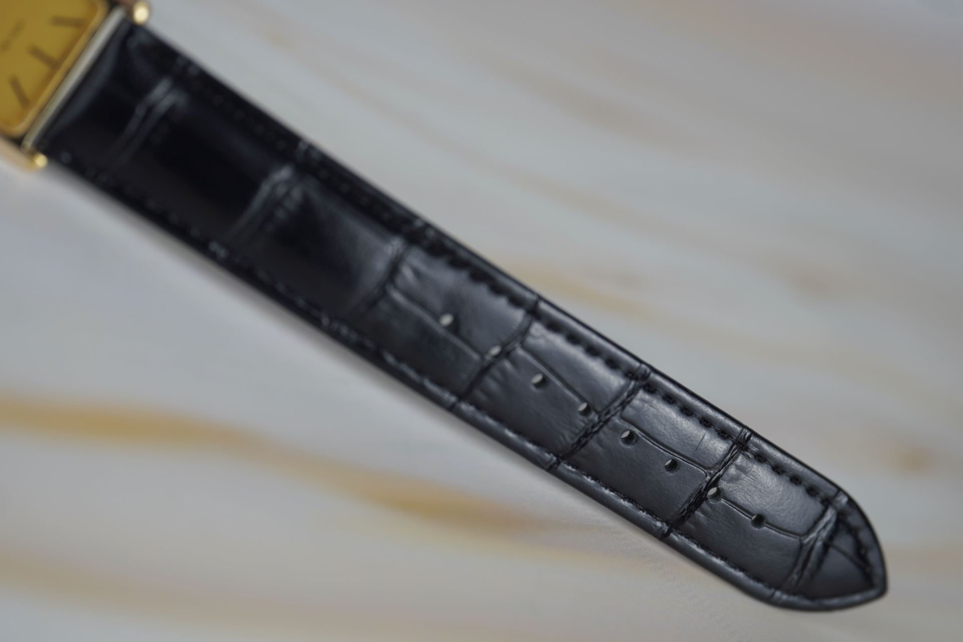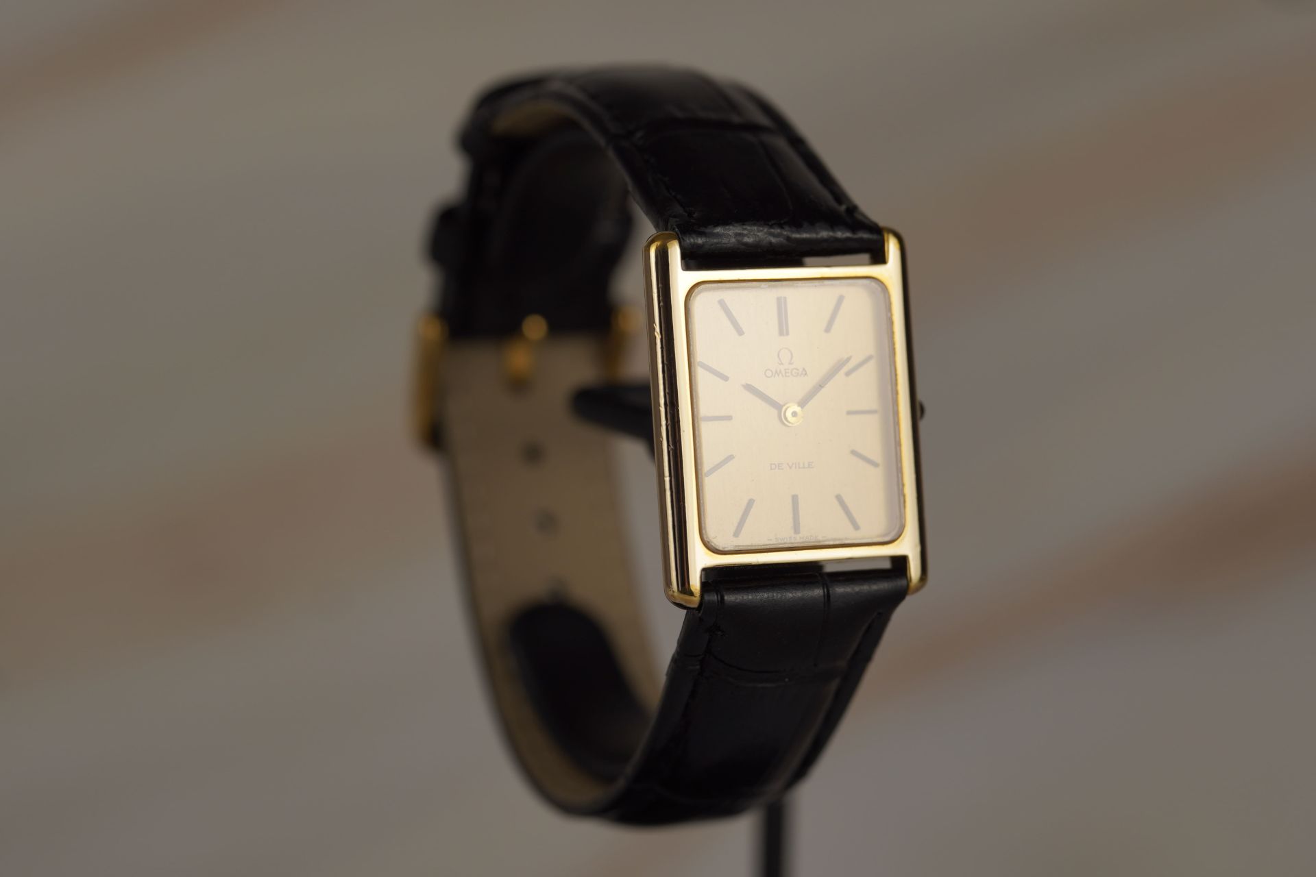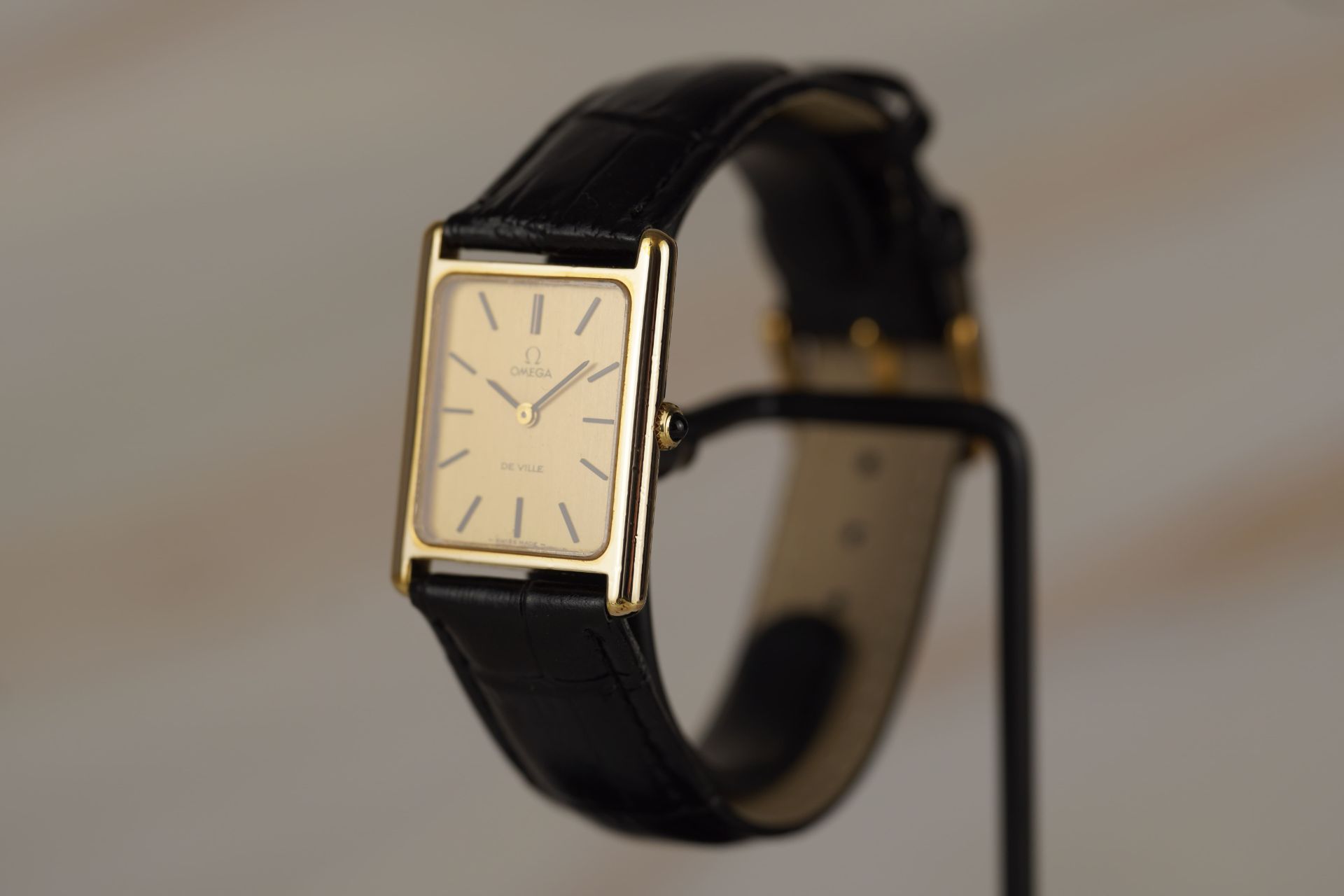 Découvrez l’élégance intemporelle avec cette montre unisexe Omega De Ville « Tank », référence commerciale 511 040. Son boîtier plaqué or de 24.5mm de diamètre et de seulement 6.3mm d’épaisseur abrite un mouvement à remontage manuel, témoignage de la finesse horlogère de 1997. Le cadran est sublimé par un bracelet en cuir noir et une boucle ardillon, non d’origine, apportant une touche de modernité tout en respectant l’esthétique classique de cette pièce en très bon état. Cette Omega De Ville est livrée seule. Elle bénéficie d’une garantie de 12 mois.