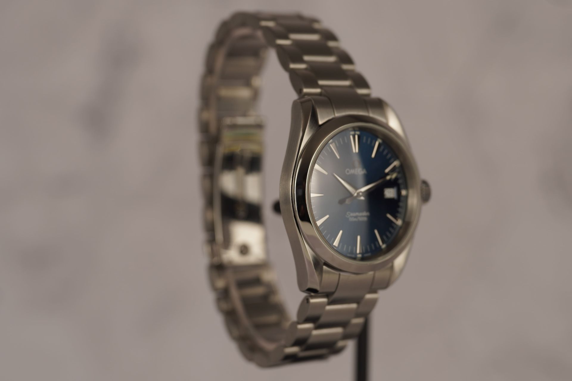 La montre Omega Seamaster Aqua Terra, référence commerciale 2518.80, incarne l’élégance sportive. Ce modèle pour homme de 1998, en bon état, est animé par un mouvement Quartz, garantissant une précision fiable. Son boîtier en acier de 36 mm de diamètre et 10.7 mm d’épaisseur est complété par un bracelet et une boucle pliante, tous deux originaux et en acier, soulignant son authenticité. Conçue pour l’aventure comme pour le quotidien, cette icône horlogère offre une étanchéité de 10 ATM. Elle est livrée avec une garantie de 12 mois.