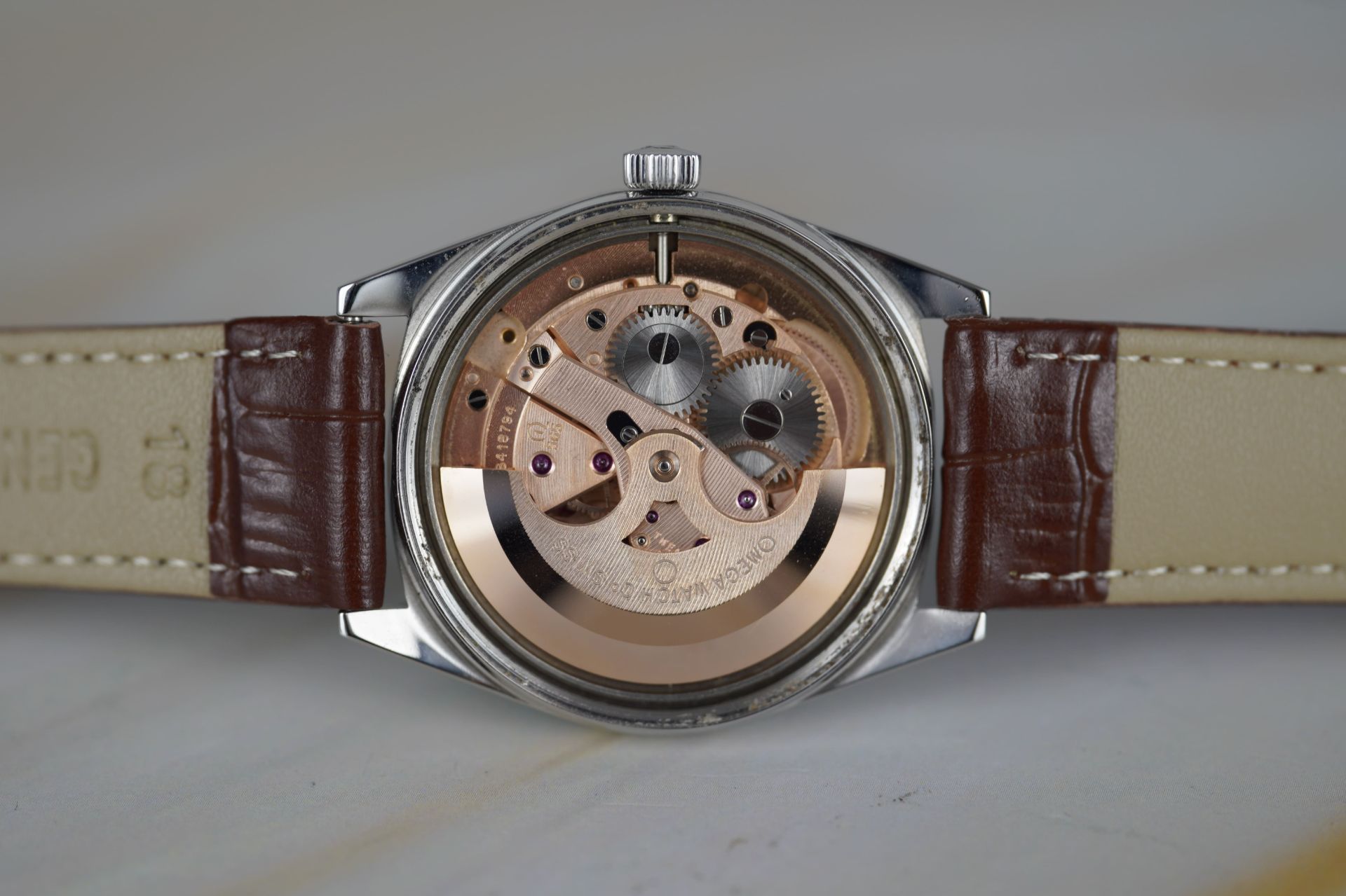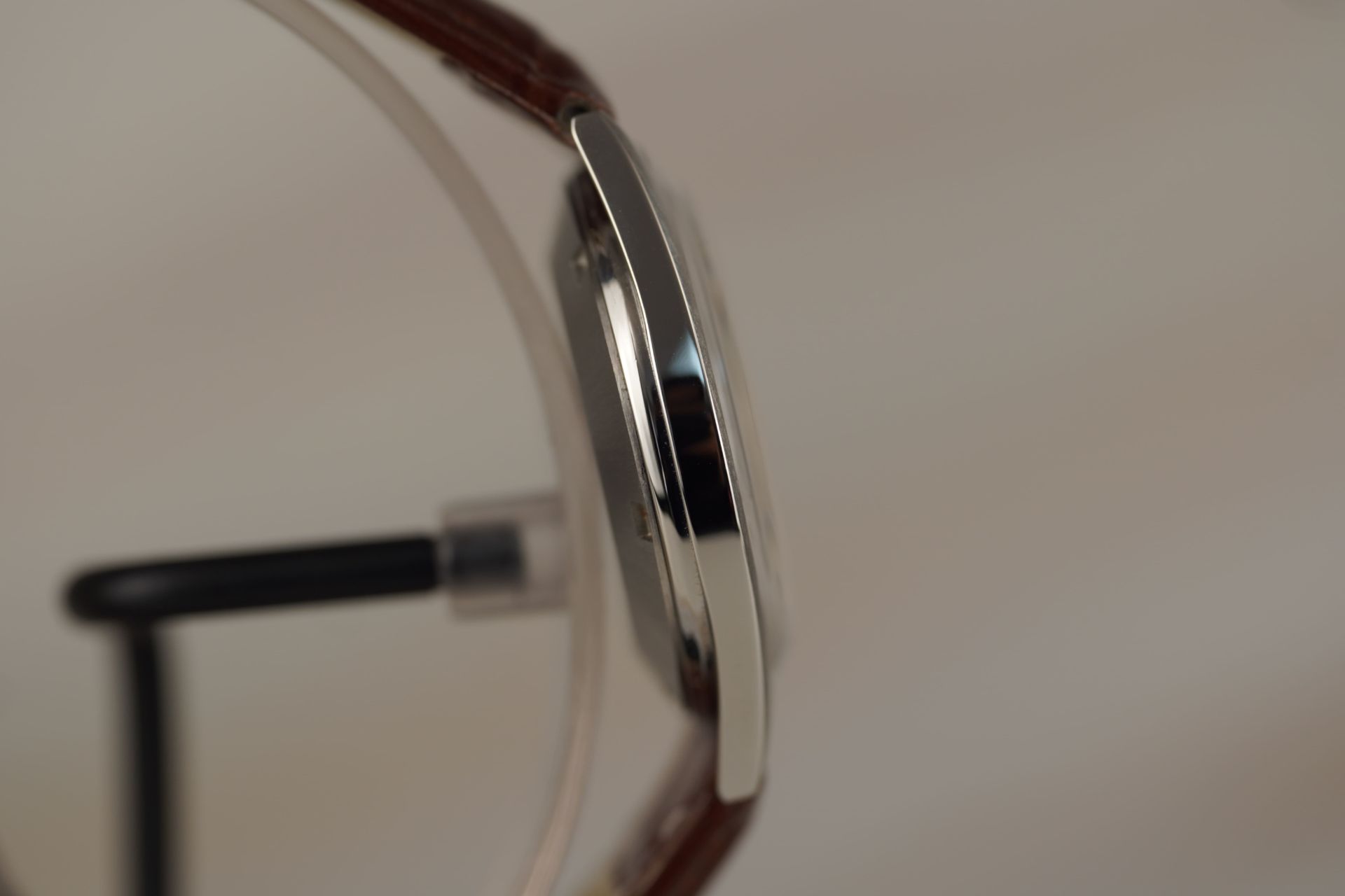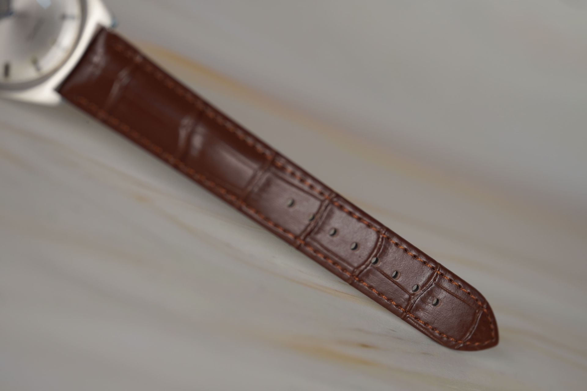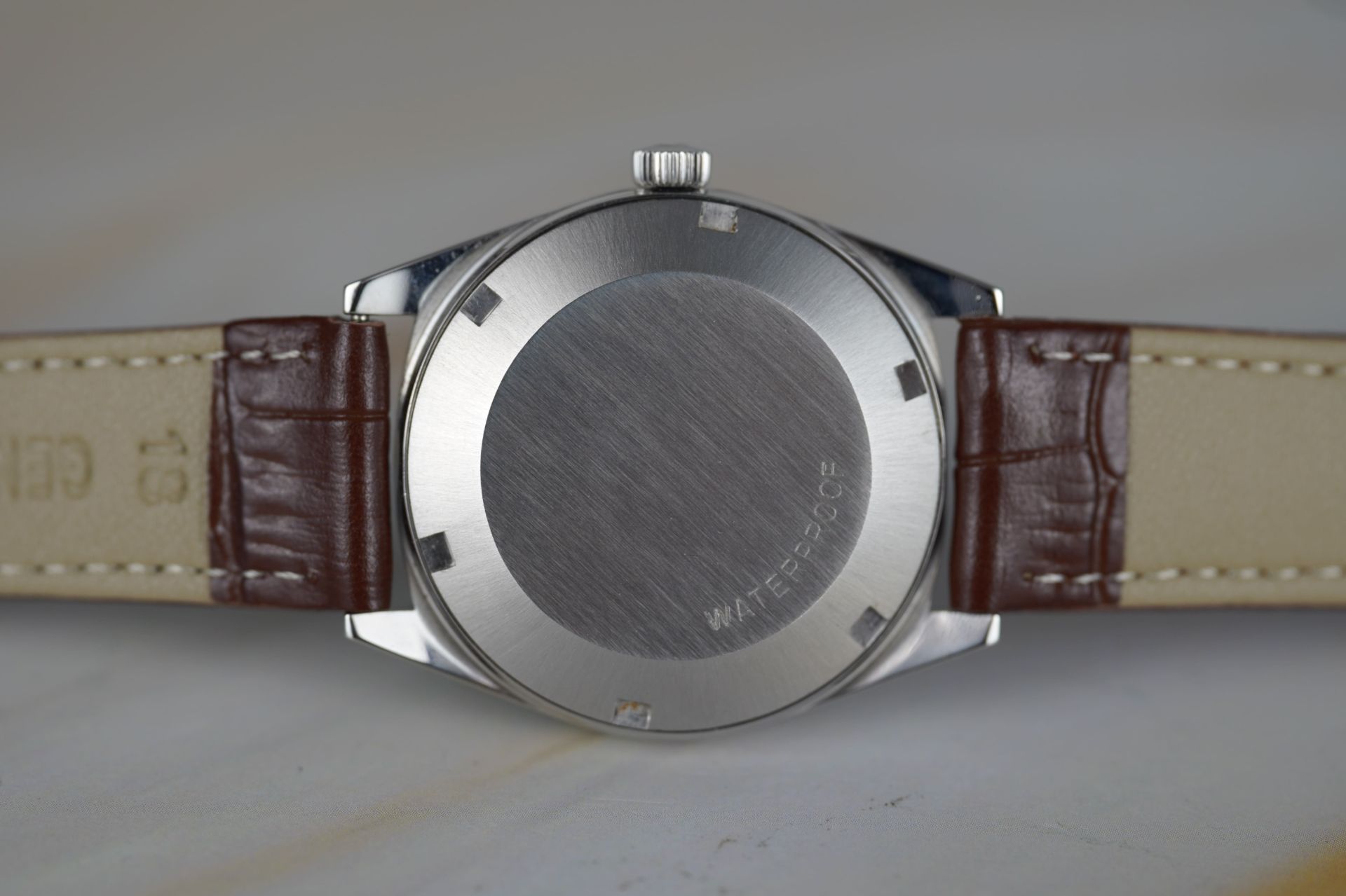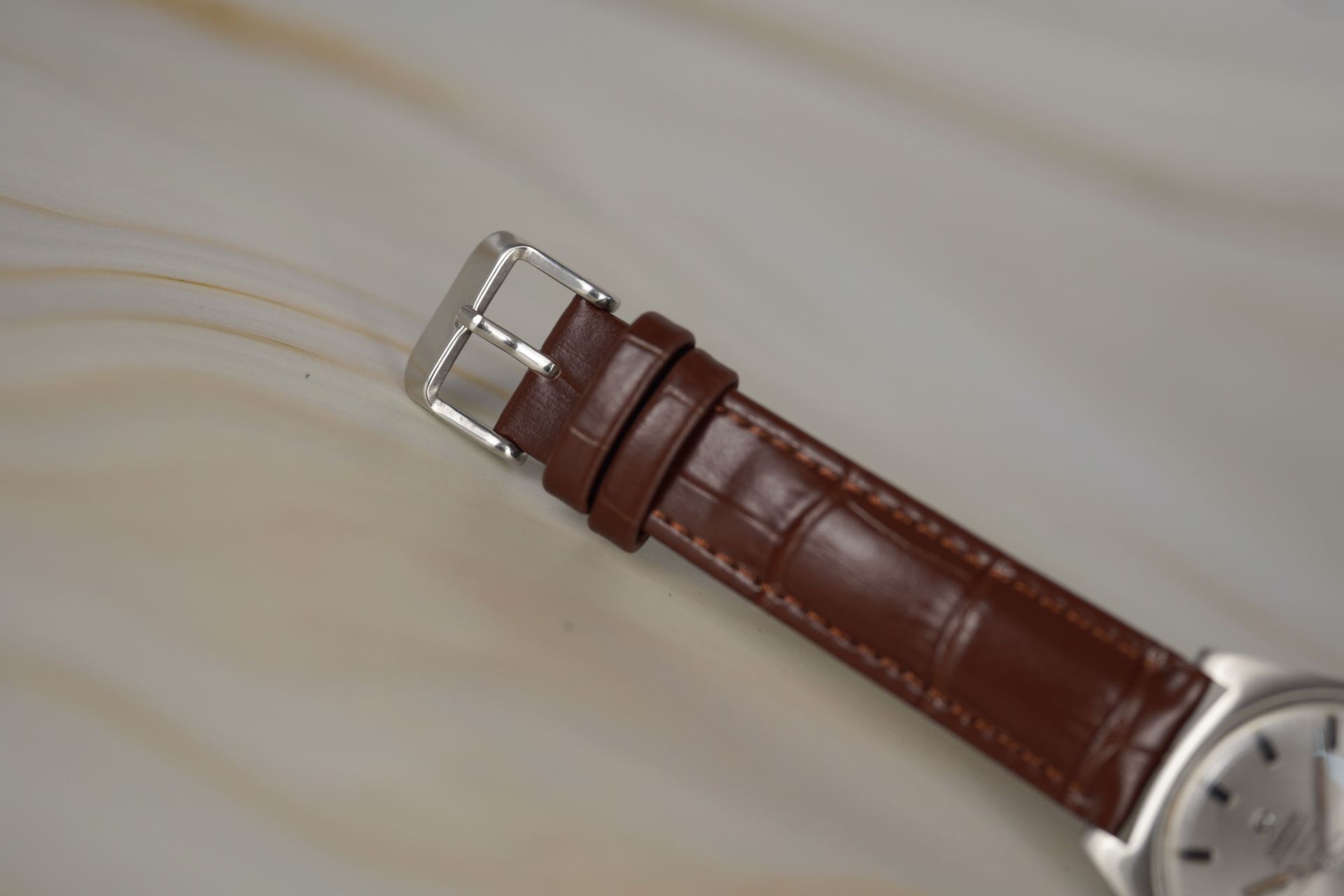 Le cadran de cette montre s’harmonise avec un bracelet en cuir brun non-original, sécurisé par une boucle ardillon également non-originale, offrant une esthétique classique. Avec une étanchéité de 3 ATM et un état général très bon, cette Omega « C Shape » a été révisée en septembre 2025 et est couverte par une garantie de 24 mois. Elle est livrée en montre seule (Réf. TOT-11100).