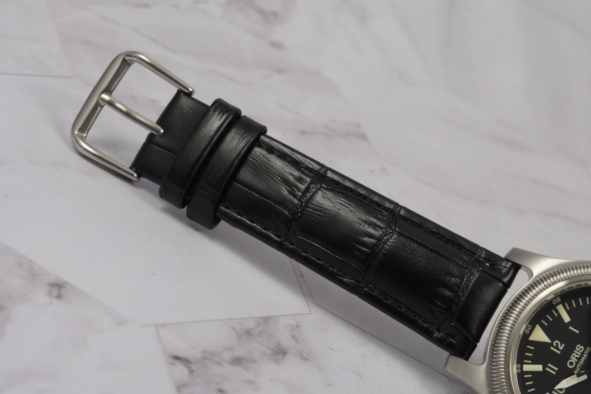 Découvrez l’élégance intemporelle de la montre Oris – Big Crown Commander (référence 7491-41-01). Conçue pour les hommes et les femmes au style raffiné, cette montre arbore un boîtier en acier de 39 mm qui allie robustesse et finesse. Son bracelet en cuir, bien que non original, apporte une touche de sophistication qui s’adapte à toutes les occasions. Avec son design emblématique et ses détails minutieux, la Big Crown Commander est non seulement un instrument de précision, mais aussi un véritable accessoire de mode. Offrez-vous un mélange parfait de performance et d’esthétique avec ce modèle qui saura séduire les passionnés d’horlogerie comme les amateurs de style.