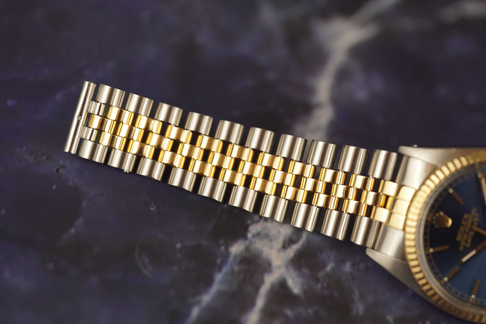 Découvrez l’icône intemporelle de l’horlogerie avec la Rolex Datejust 36 – 16013. Conçue pour l’homme moderne ou tout amateur de montres, cette pièce maîtresse marie magistralement l’or et l’acier, offrant une élégance robuste et sophistiquée. Son boîtier de 36 mm, parfaitement proportionné, abrite un cadran aux lignes épurées, tandis que son bracelet, d’une longueur de 18.5 cm, allie confort et style grâce à sa conception originale. Que ce soit pour une occasion spéciale ou pour le quotidien, la Datejust 36 saura compléter toutes vos tenues avec distinction. Avec sa boucle et ses composants d’origine, cette montre est un témoignage de qualité et de prestige, un choix inégalé pour ceux qui apprécient l’excellence horlogère. Ajoutez une touche de luxe à votre poignet avec la Rolex Datejust 36.