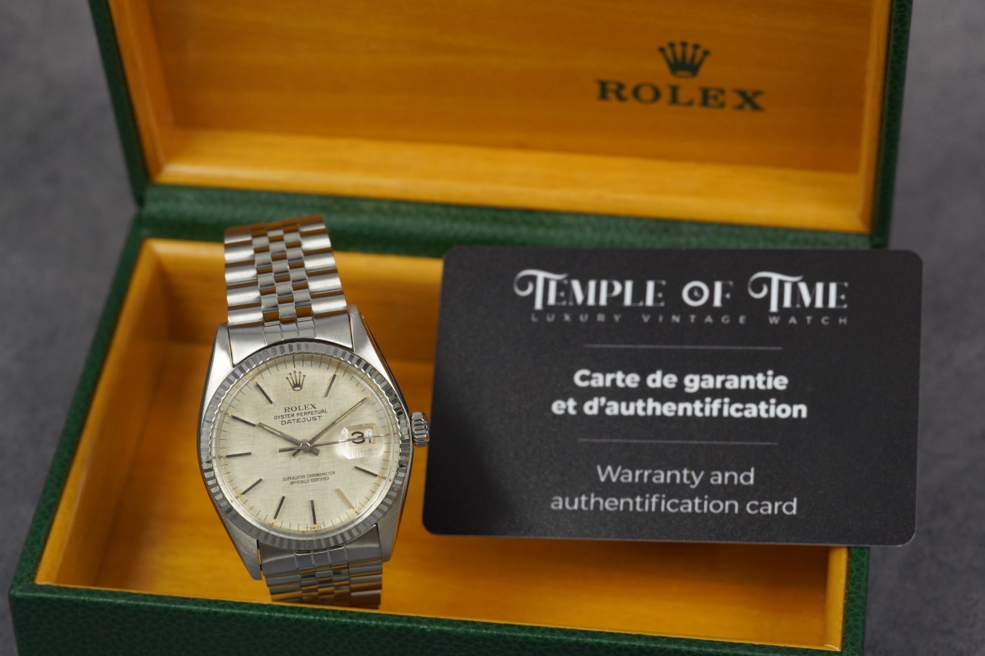 Découvrez l’élégance intemporelle de la Rolex Datejust « Linen Dial » référence 16014, une pièce emblématique datant de 1979. Ce modèle pour homme, en très bon état, est animé par un mouvement à remontage automatique, gage de précision et de fiabilité. Son boîtier en acier de 36 mm de diamètre et de 12.7 mm d’épaisseur abrite un cadran « Linen » distinctif qui lui confère un charme unique. Le bracelet en acier, absolument original, et sa boucle déployante d’origine complètent harmonieusement cette montre. Livrée avec son coffret, cette Datejust 16014 est une opportunité rare pour les collectionneurs et amateurs d’horlogerie. Elle est accompagnée d’une garantie de 12 mois.