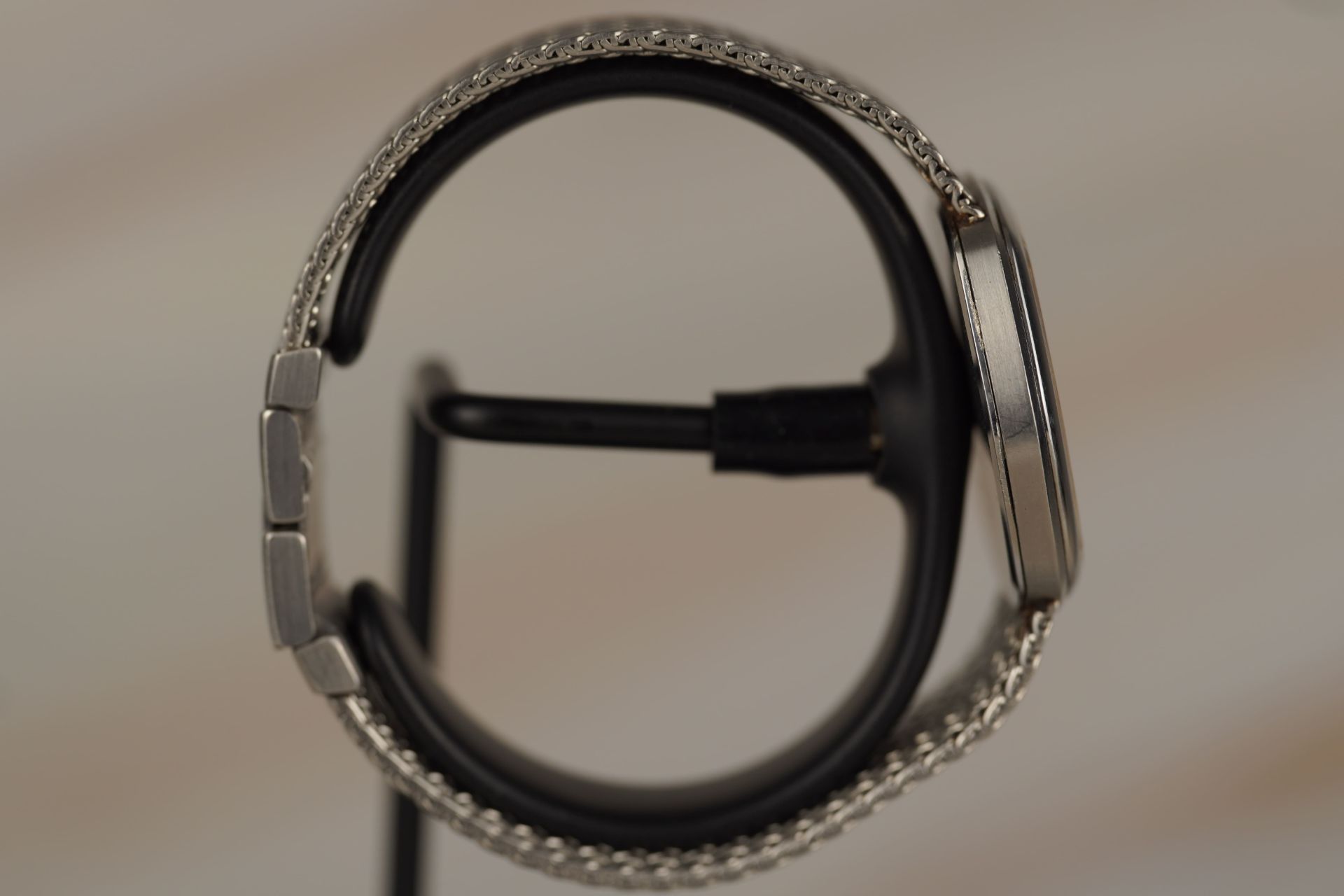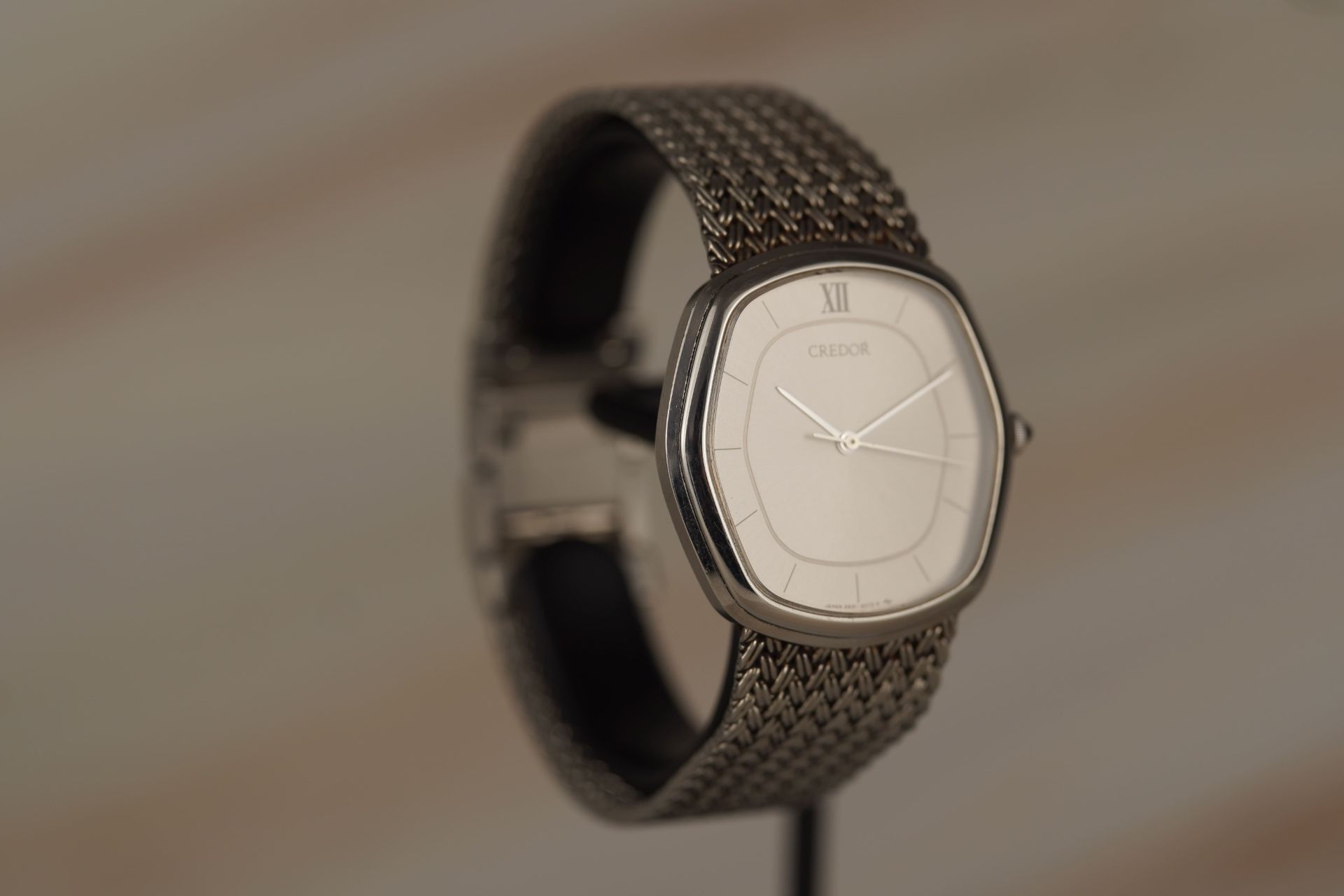 Découvrez l’élégance discrète avec cette montre Seiko Credor Référence 5931-5232, un modèle unisexe datant de 1985. Son boîtier extra-plat en acier de 30mm de diamètre et 5.3mm d’épaisseur abrite un mouvement à Quartz, gage de précision et de fiabilité. Le bracelet intégré en acier, d’origine, s’unit harmonieusement au boîtier, complété par une boucle de type fermoir bijoux, également originale. Présentée en bon état, cette pièce est livrée seule. Elle bénéficie d’une garantie de 12 mois.