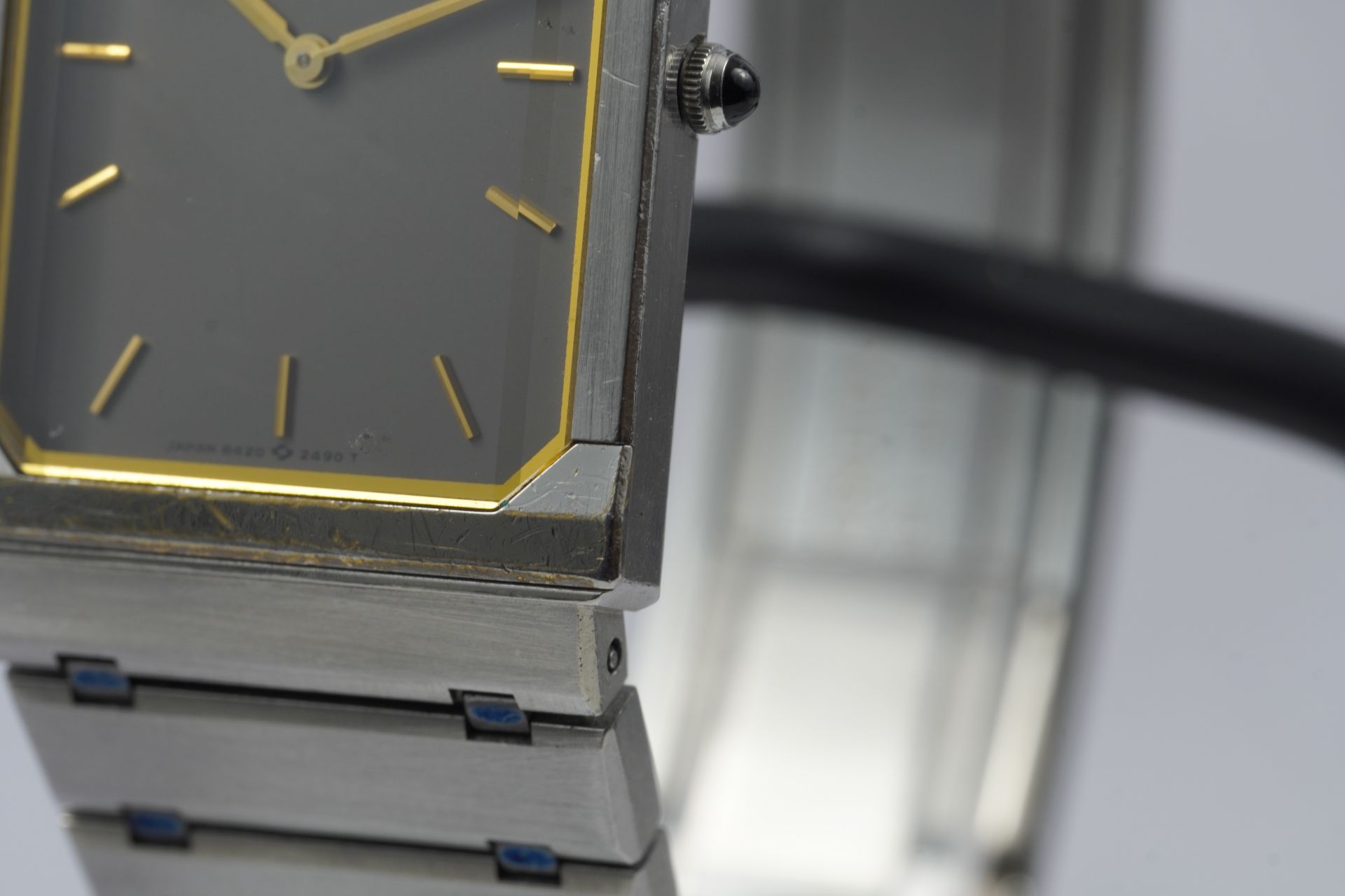 Découvrez la Seiko Credor « Tank », référence 8420-7650, une pièce unisexe de 1985 incarnant l’élégance discrète. Son boîtier en acier, mesurant 22.2mm de diamètre pour seulement 5mm d’épaisseur, abrite un mouvement Quartz précis. Le bracelet intégré en acier, d’origine, souligne l’esthétique épurée, complété par une boucle déployante originale. Cette montre, livrée seule, est en bon état, témoignant de sa qualité intemporelle. Une garantie de 12 mois accompagne cette icône de la manufacture japonaise.