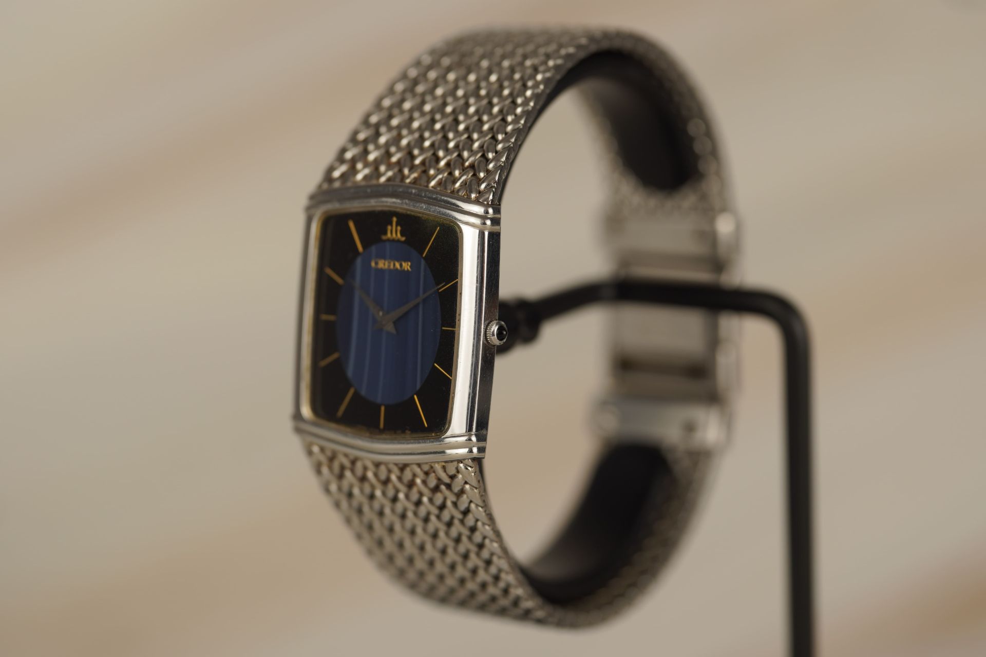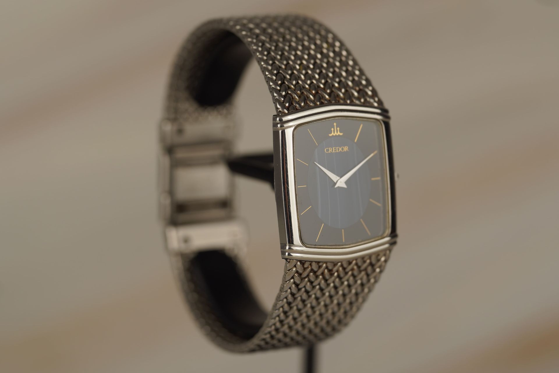Découvrez cette Seiko Credor « Tonneau » unisexe, une pièce emblématique de 1985 portant la référence commerciale 2F70-5380. Son boîtier en acier de 25.3mm de diamètre et 4.5mm d’épaisseur, associé à un mouvement à Quartz, incarne l’élégance discrète. Le bracelet (17.5cm maximum) et le fermoir bijoux d’origine en acier, attestent de la qualité et de l’authenticité de cette montre. Malgré son âge, cette Seiko Credor est en bon état et représente un véritable témoin de l’horlogerie japonaise de prestige. Cette montre est fournie seule et bénéficie d’une garantie de 12 mois.