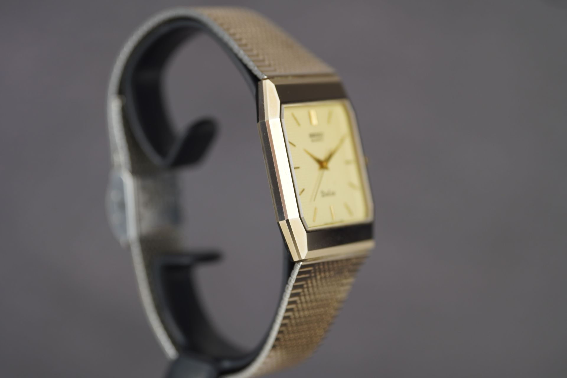 Découvrez l’élégance discrète avec cette Seiko Dolce pour homme, référence commerciale 9521-5110. Son mouvement à Quartz de haute précision est logé dans un boîtier en acier fin de 27.7mm de diamètre et 5.9mm d’épaisseur, conçu pour une présence raffinée au poignet. Le bracelet en acier, absolument original, prolonge la pureté des lignes et s’intègre parfaitement au boîtier. La boucle d’origine, un délicat fermoir bijoux, assure un maintien sécurisé et confortable.