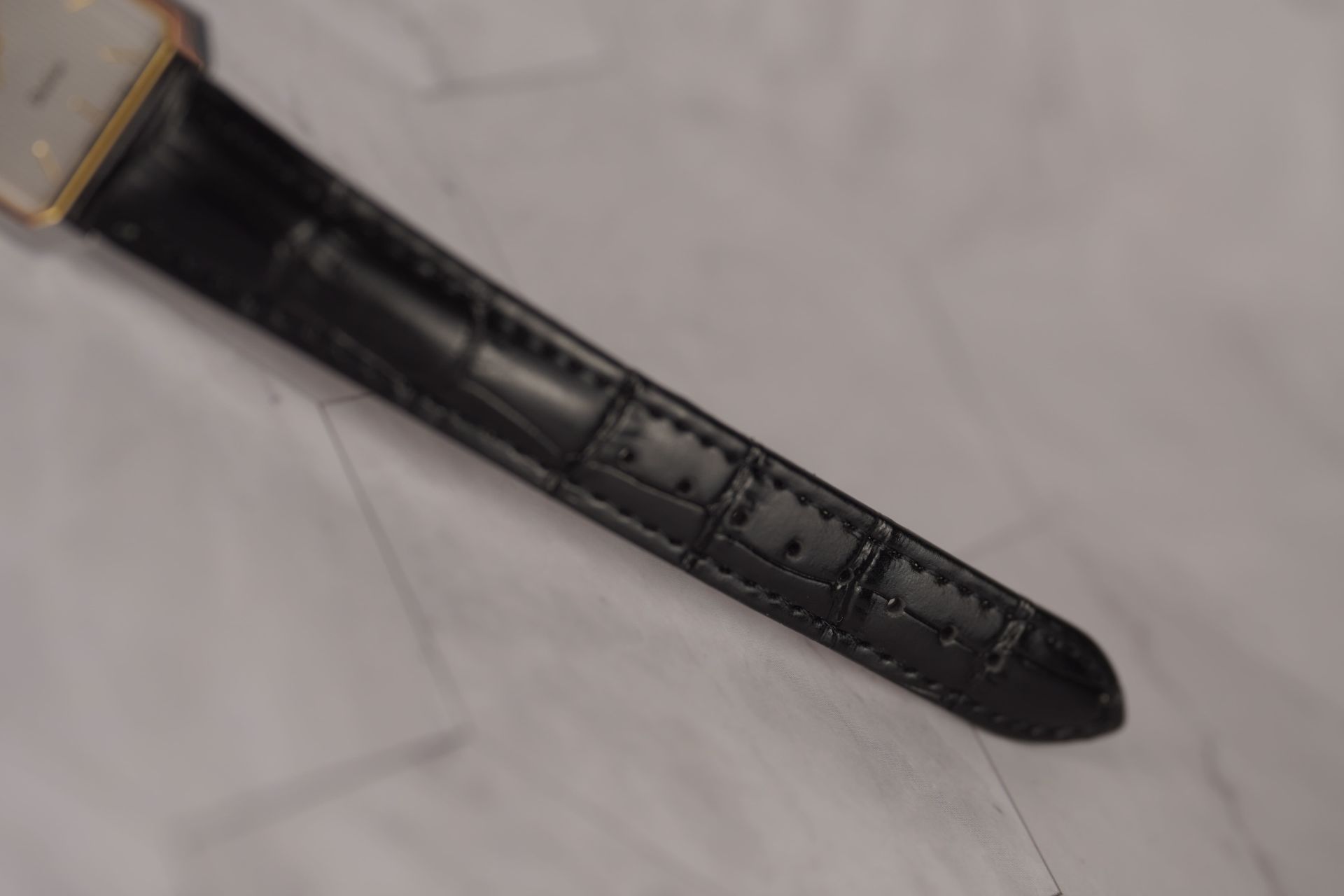 Le bracelet en cuir noir, complété par une boucle ardillon non originale, accentue son charme classique. Livrée seule, cette montre en bon état est une addition précieuse pour toute collection. Elle est accompagnée d’une garantie de 12 mois, assurant une parfaite tranquillité d’esprit.
