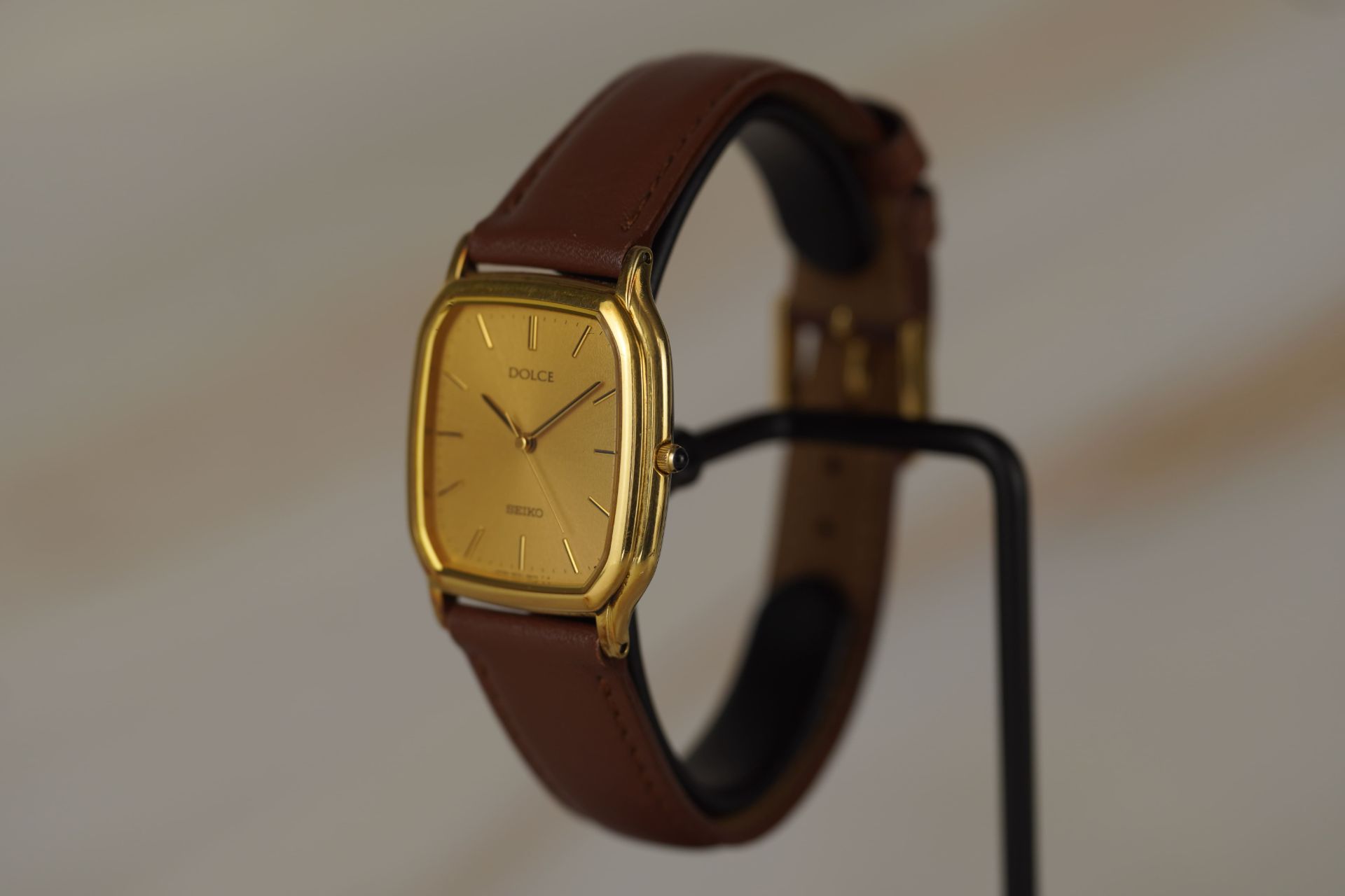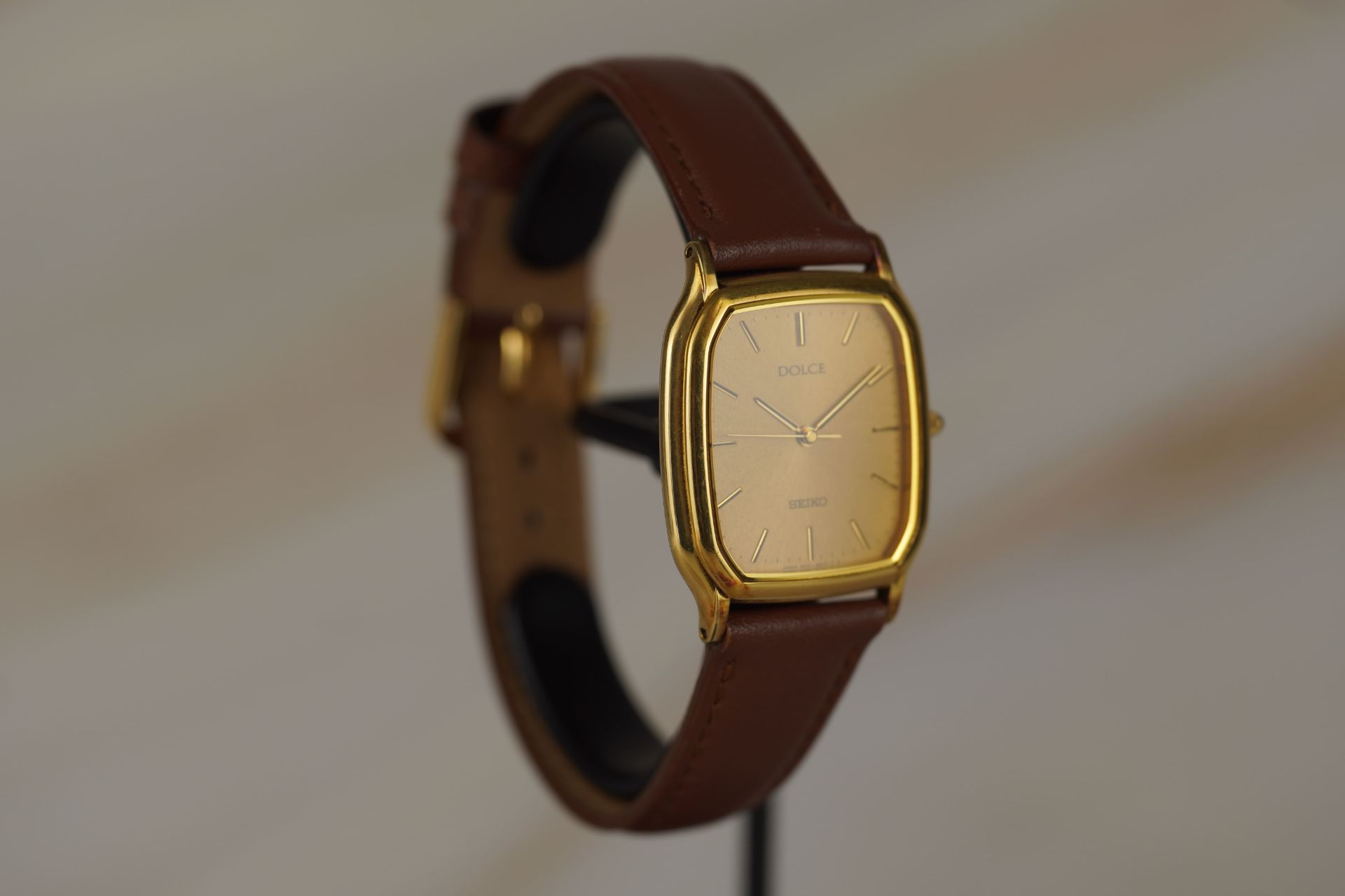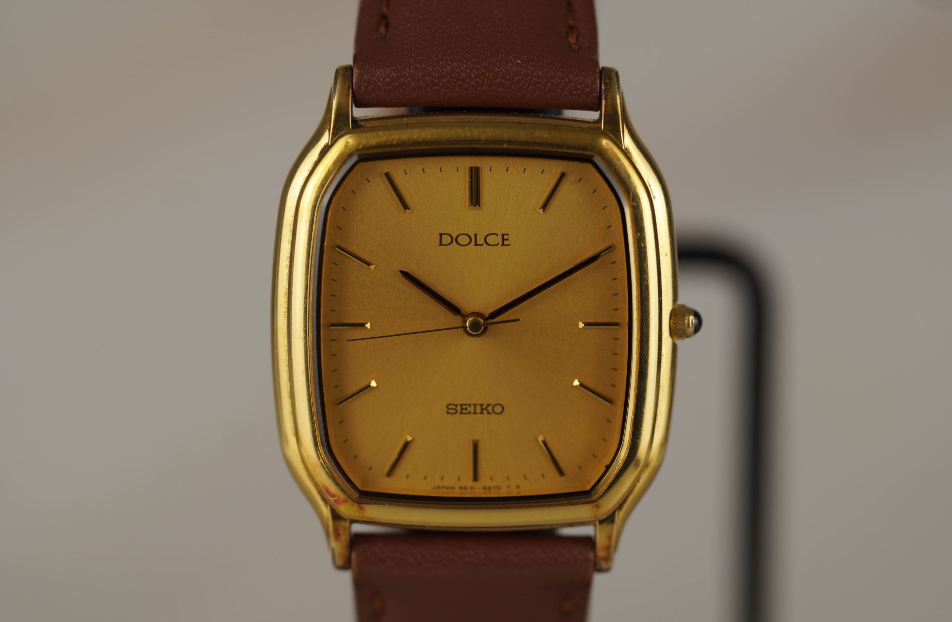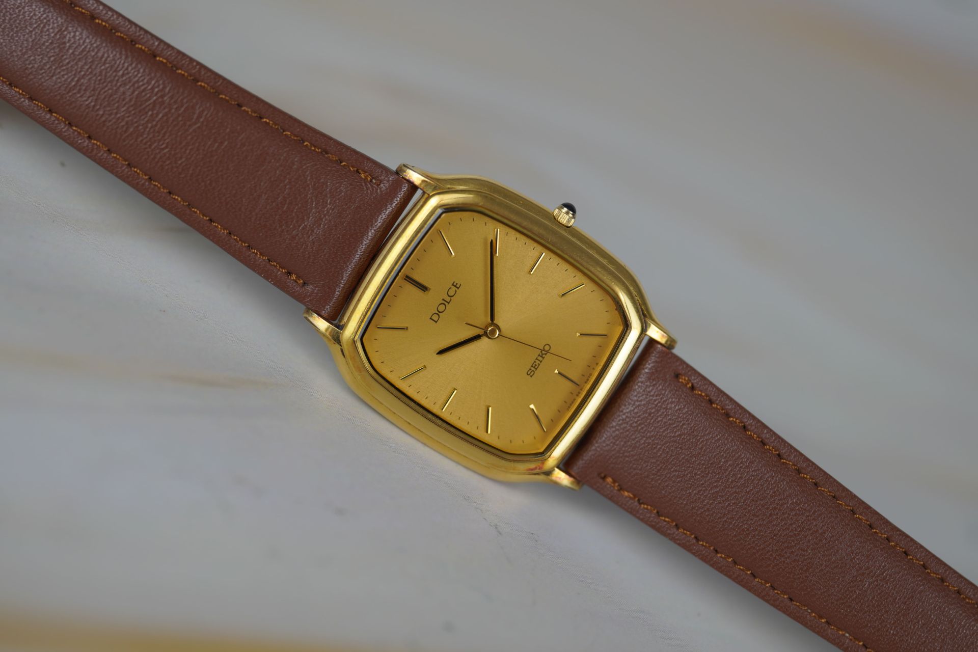 Découvrez l’élégance discrète avec cette montre Seiko Dolce « Tonneau », référence commerciale 5E31-5B30 (référence TOT-11134). Ce modèle unisexe, datant de 1993, incarne le raffinement avec son boîtier en acier de forme tonneau, mesurant 28.4mm de diamètre pour une épaisseur remarquable de seulement 5.5mm. Animée par un mouvement Quartz de précision, elle offre une lecture du temps fiable. Le bracelet en cuir brun non-original, agrémenté d’une boucle ardillon non-originale, s’intègre harmonieusement à l’esthétique générale. Son étanchéité de 3 ATM la protège des éclaboussures quotidiennes. La montre est livrée seule. Ce garde-temps est couvert par une garantie de 12 mois.