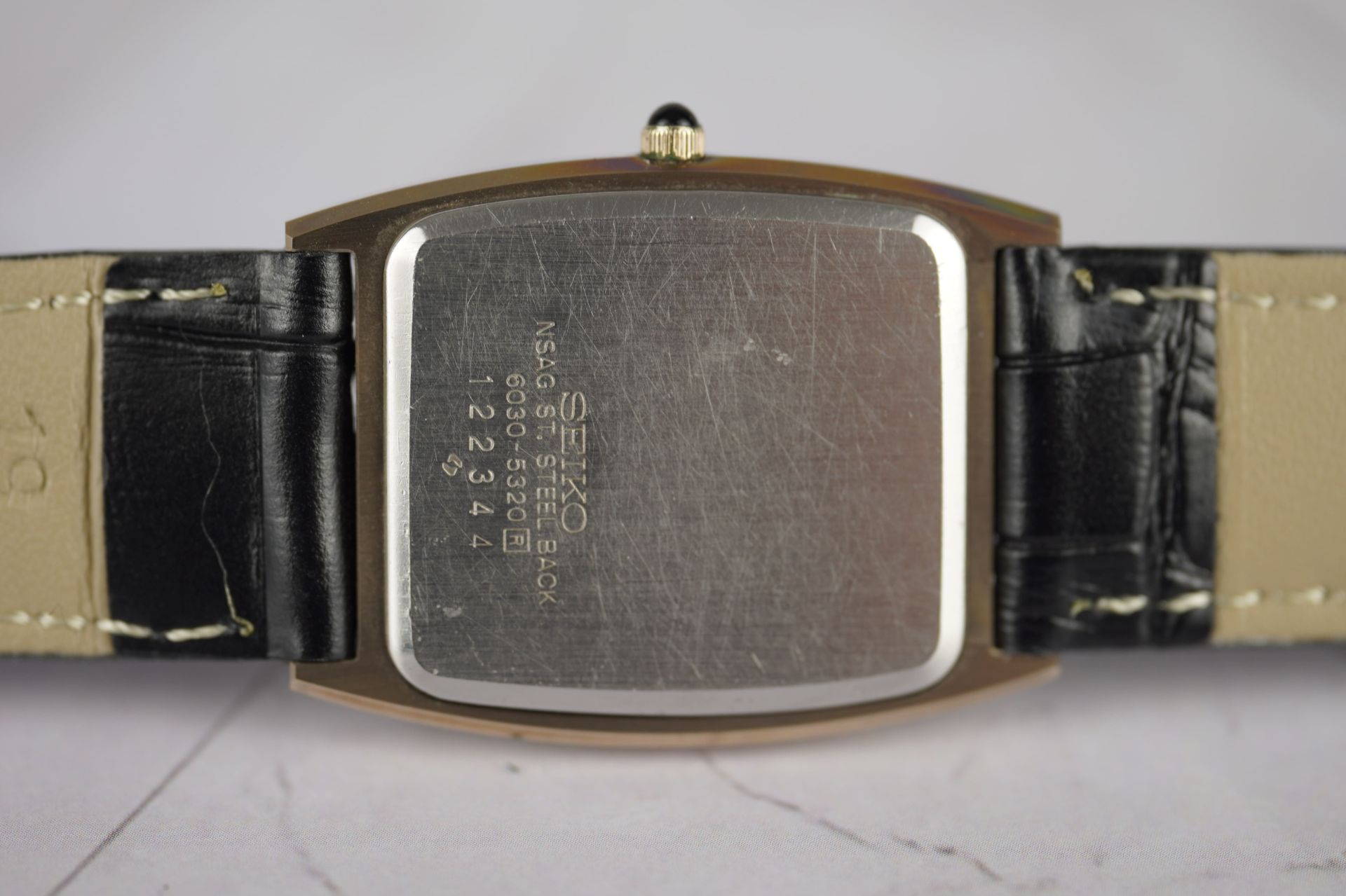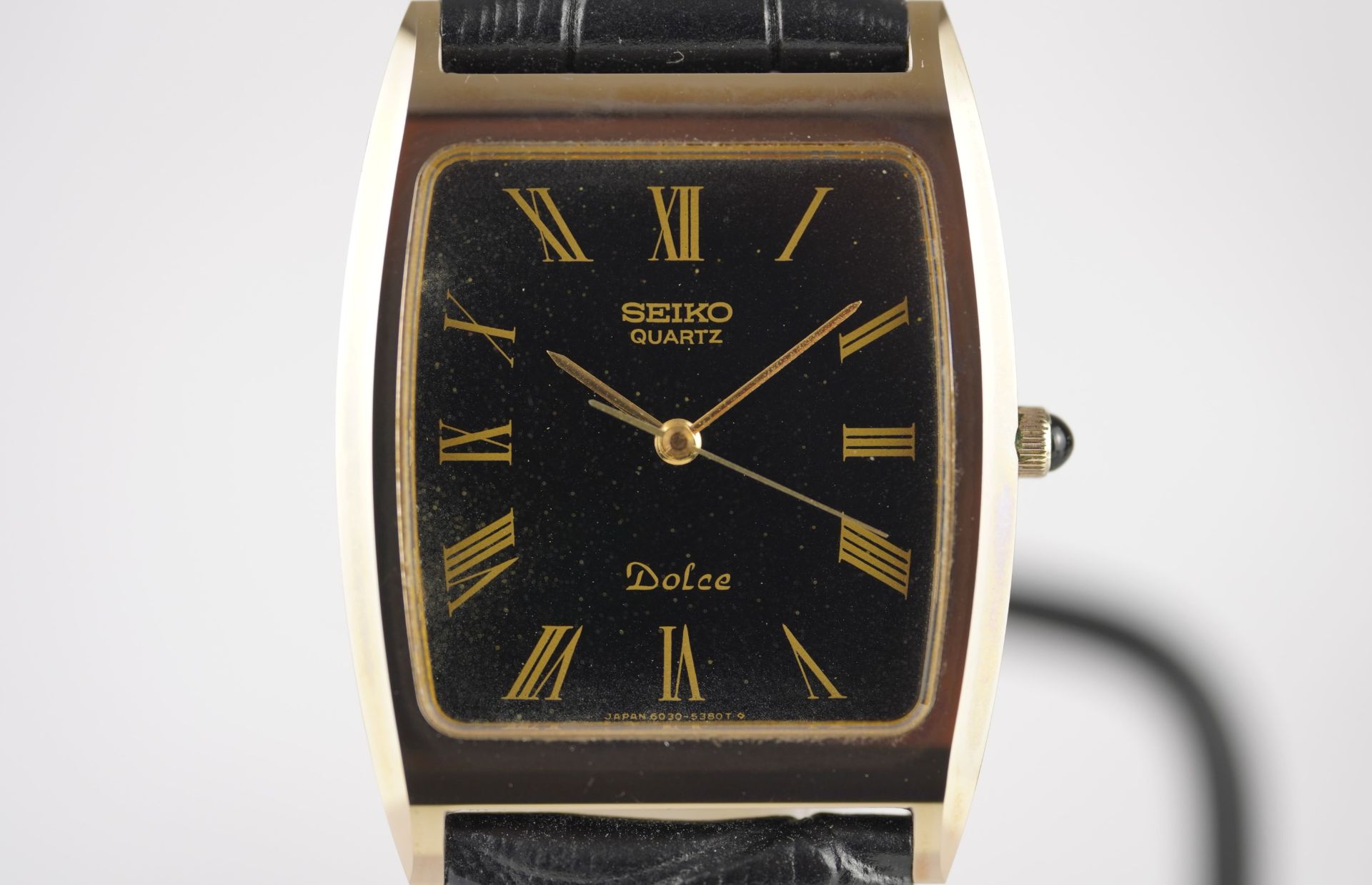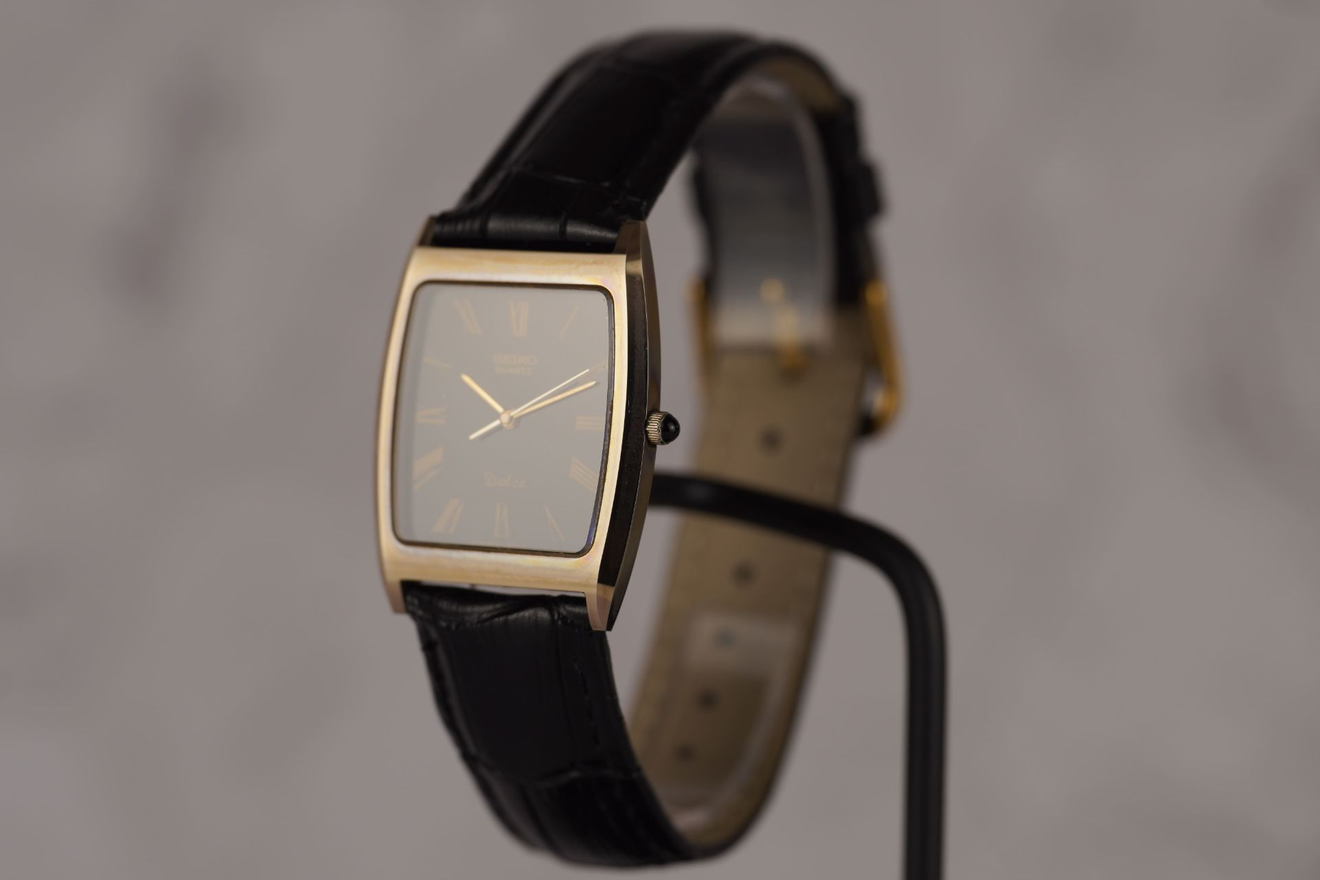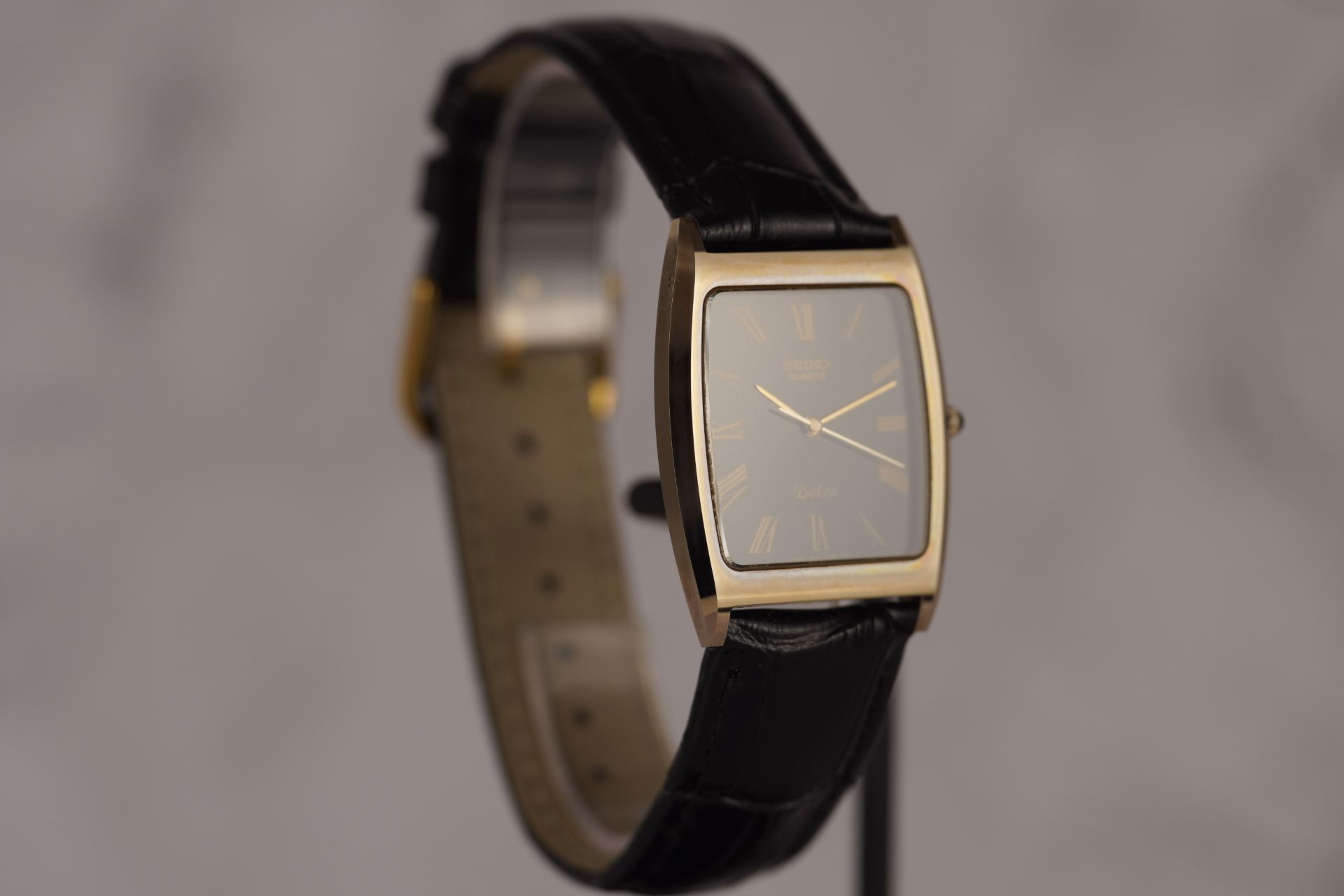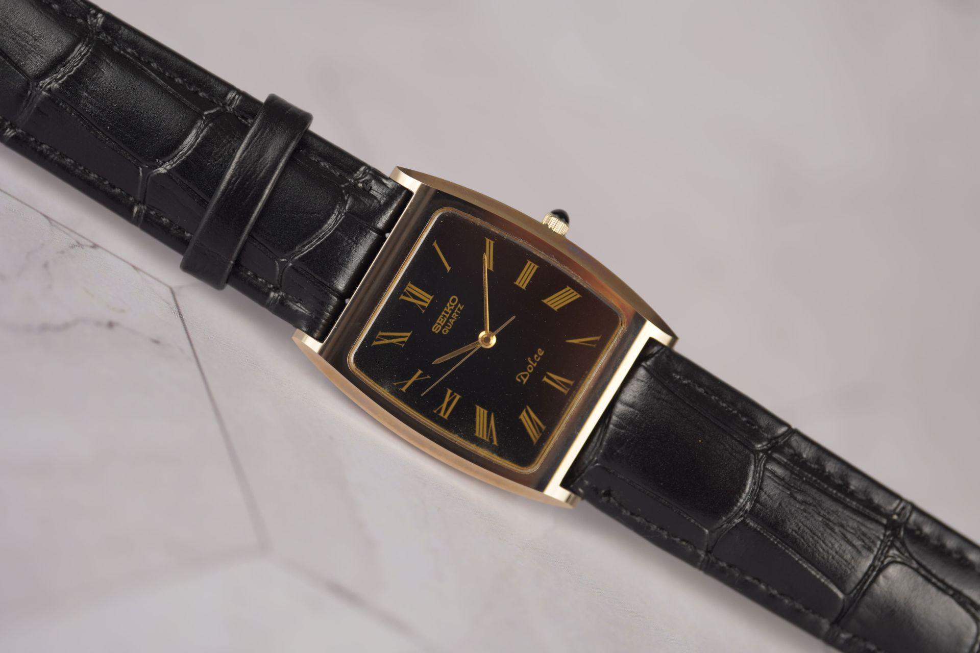 Découvrez la Seiko Dolce, Référence commerciale 6030-5320, un modèle unisexe datant de 1981. Ce garde-temps se distingue par son mouvement à Quartz précis, logé dans un boîtier en acier de 27.8 mm de diamètre et d’une finesse remarquable de 5.8 mm d’épaisseur. Son allure classique est complétée par un bracelet en cuir noir (non original) et une boucle ardillon (non originale), offrant un confort élégant au poignet. Présentée en bon état, cette montre est fournie avec une garantie de 12 mois, assurant sa fiabilité et sa performance.