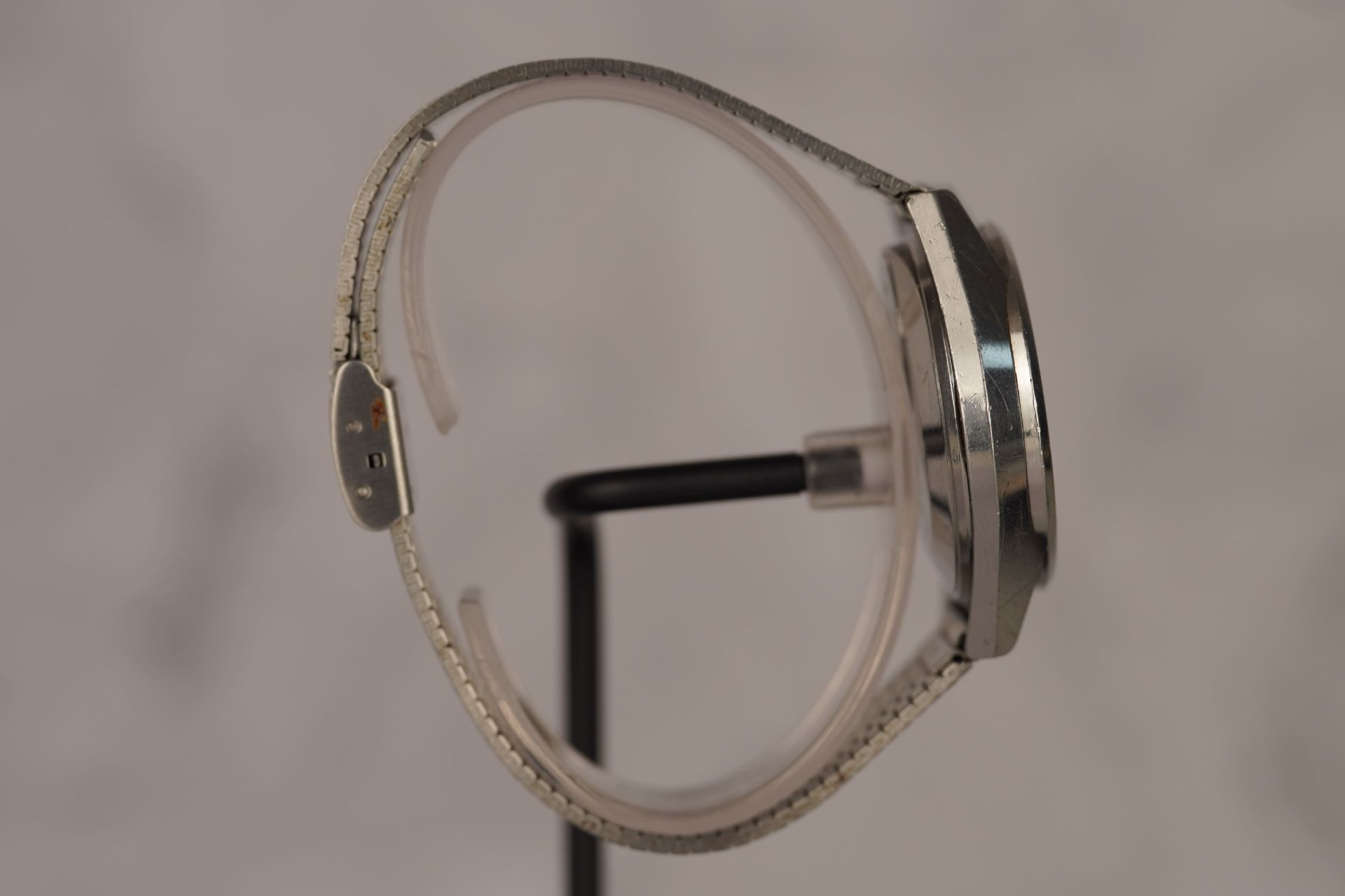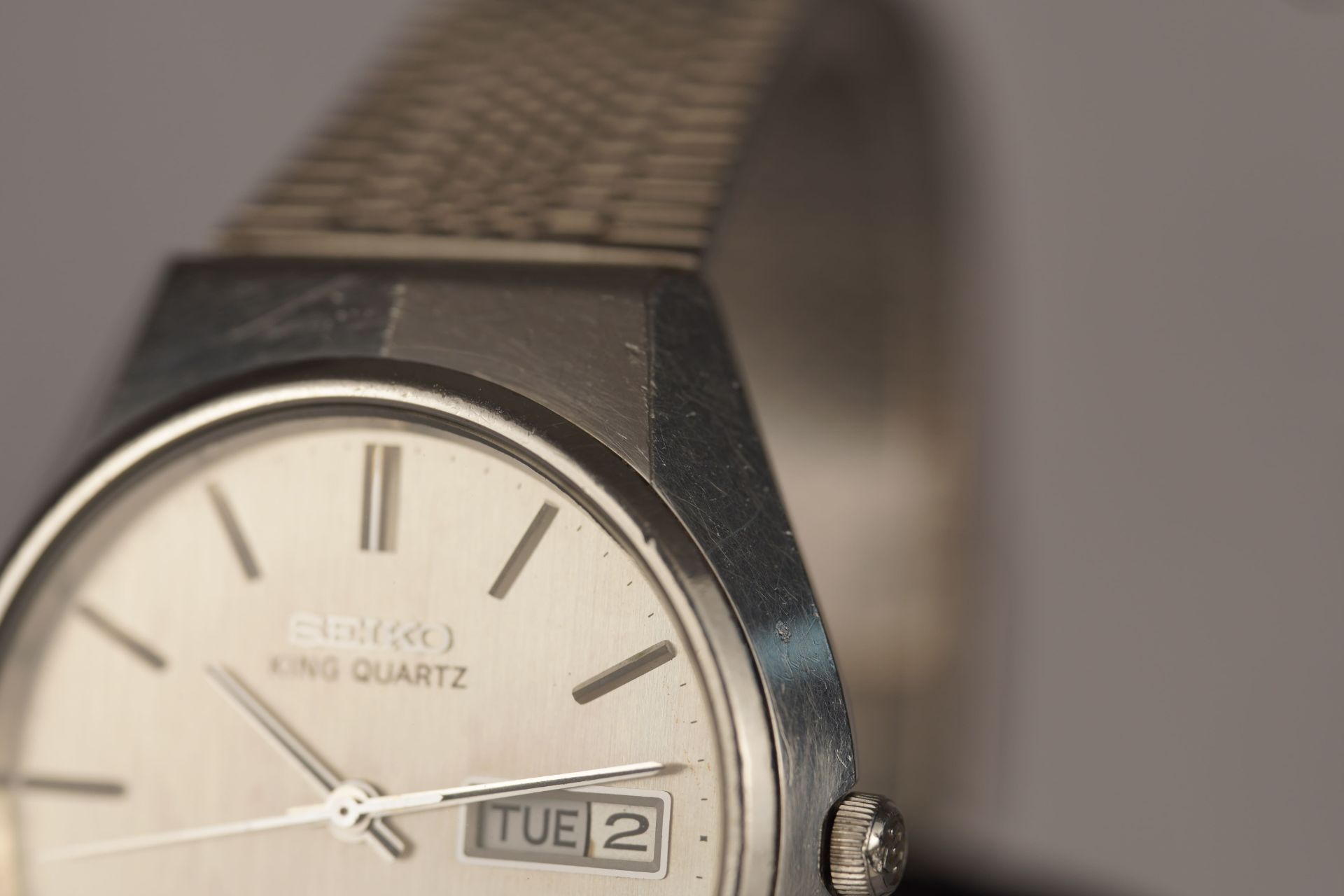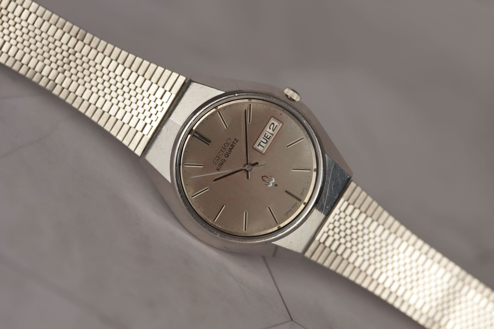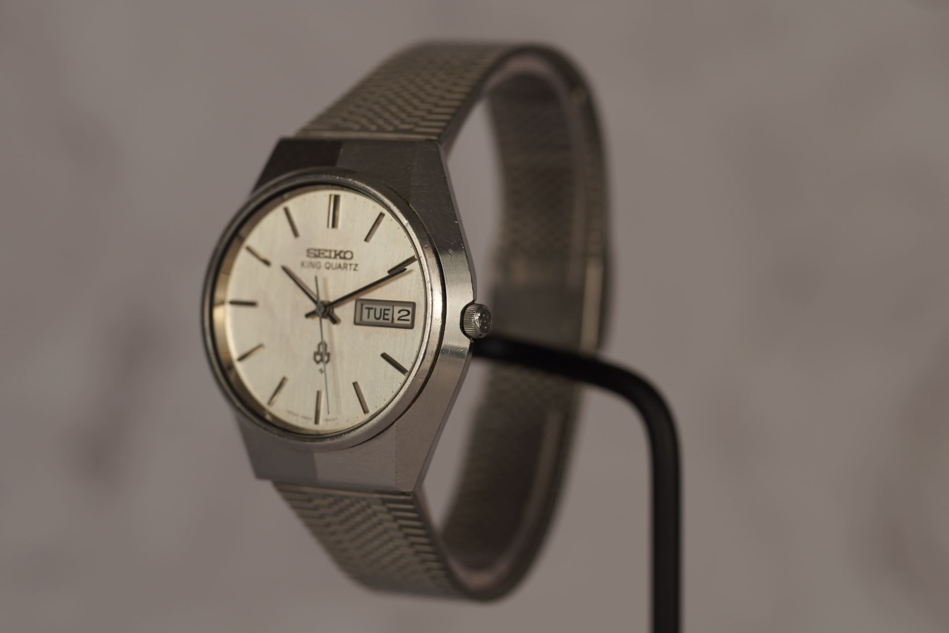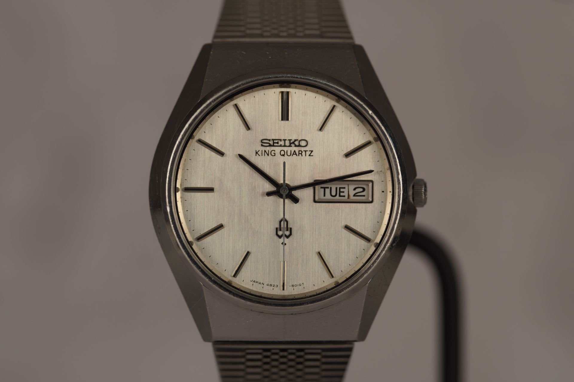 Découvrez la montre Seiko King Quartz (Réf. 4823-8010), une pièce unisexe de 1976 témoignant de l’ingénierie horlogère japonaise. Son boîtier en acier de 36.4mm de diamètre et 10.5mm d’épaisseur abrite un mouvement à Quartz, gage de précision. Le bracelet en acier non-original est complété par un fermoir bijoux, également non-original. Affichant un bon état général, cette montre est livrée seule. Elle est étanche à 3 ATM et est couverte par notre garantie de 12 mois.