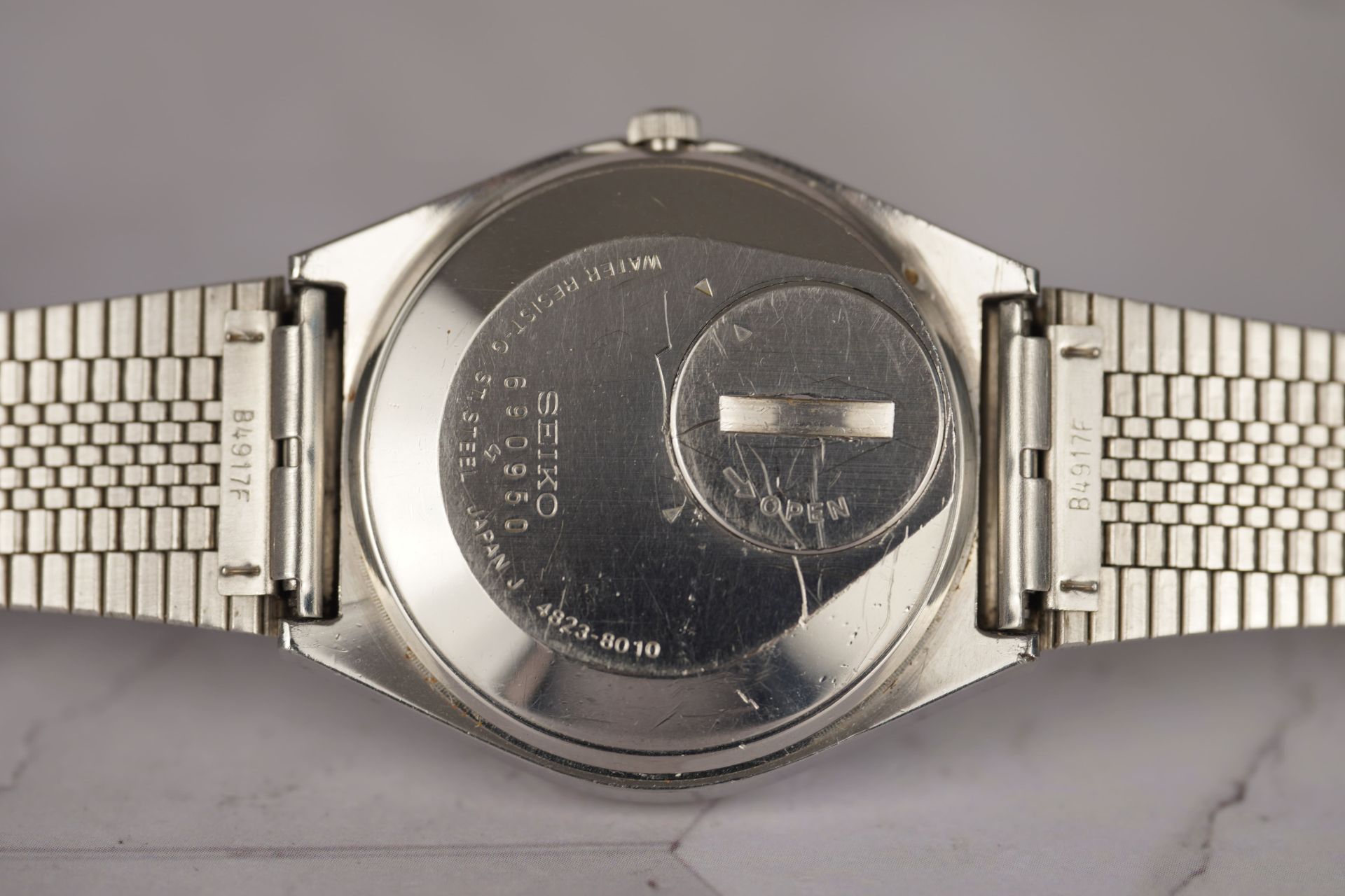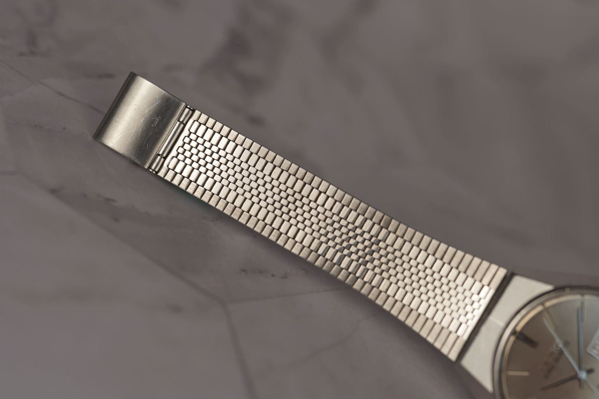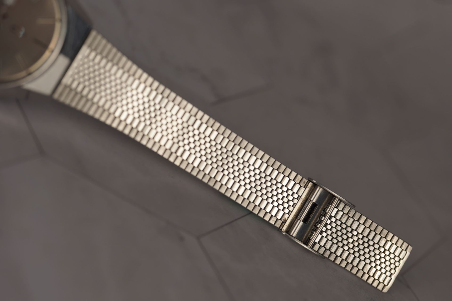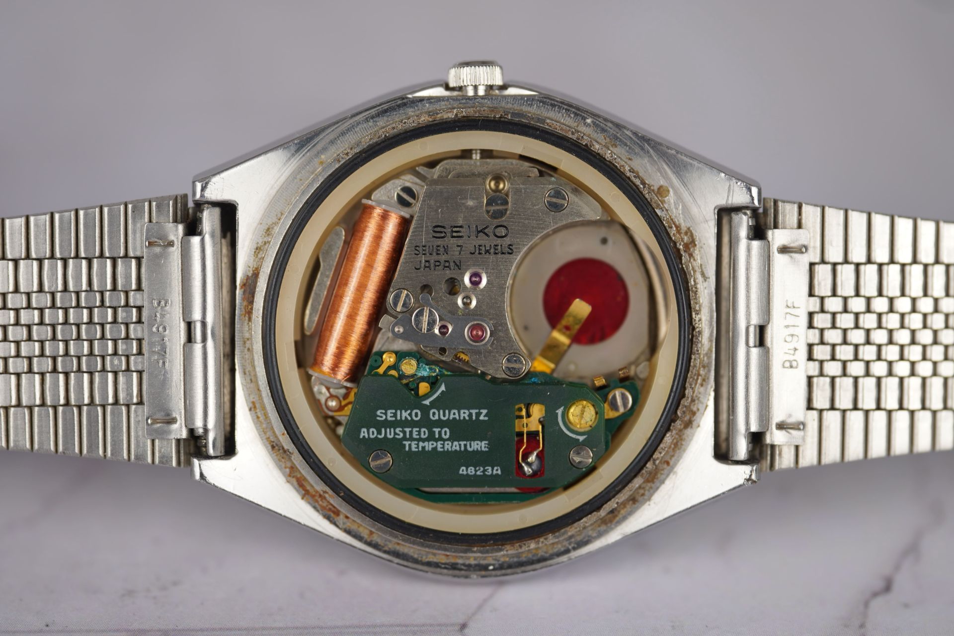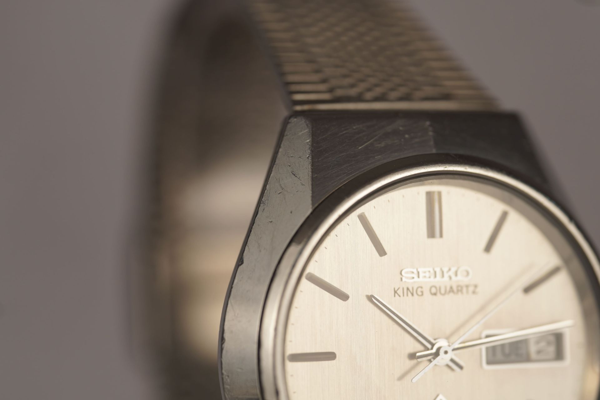 Découvrez la montre Seiko King Quartz (Réf. 4823-8010), une pièce unisexe de 1976 témoignant de l’ingénierie horlogère japonaise. Son boîtier en acier de 36.4mm de diamètre et 10.5mm d’épaisseur abrite un mouvement à Quartz, gage de précision. Le bracelet en acier non-original est complété par un fermoir bijoux, également non-original. Affichant un bon état général, cette montre est livrée seule. Elle est étanche à 3 ATM et est couverte par notre garantie de 12 mois.