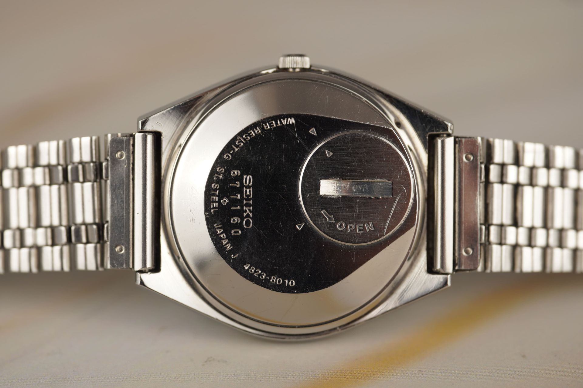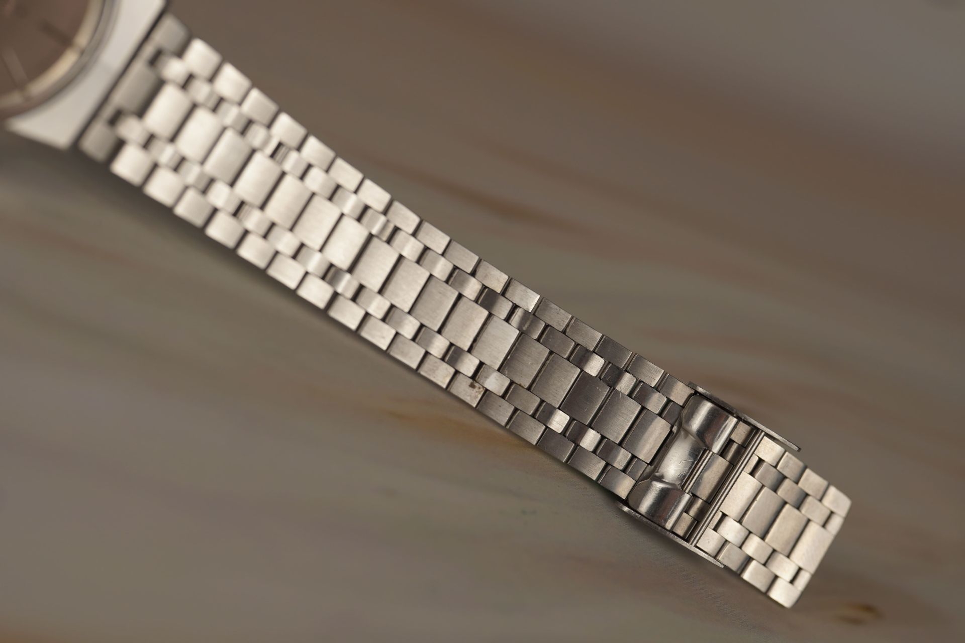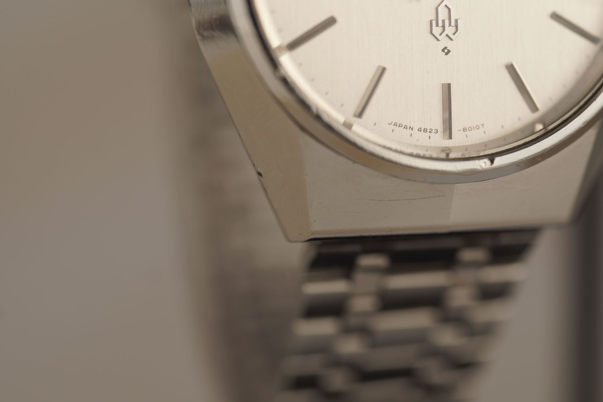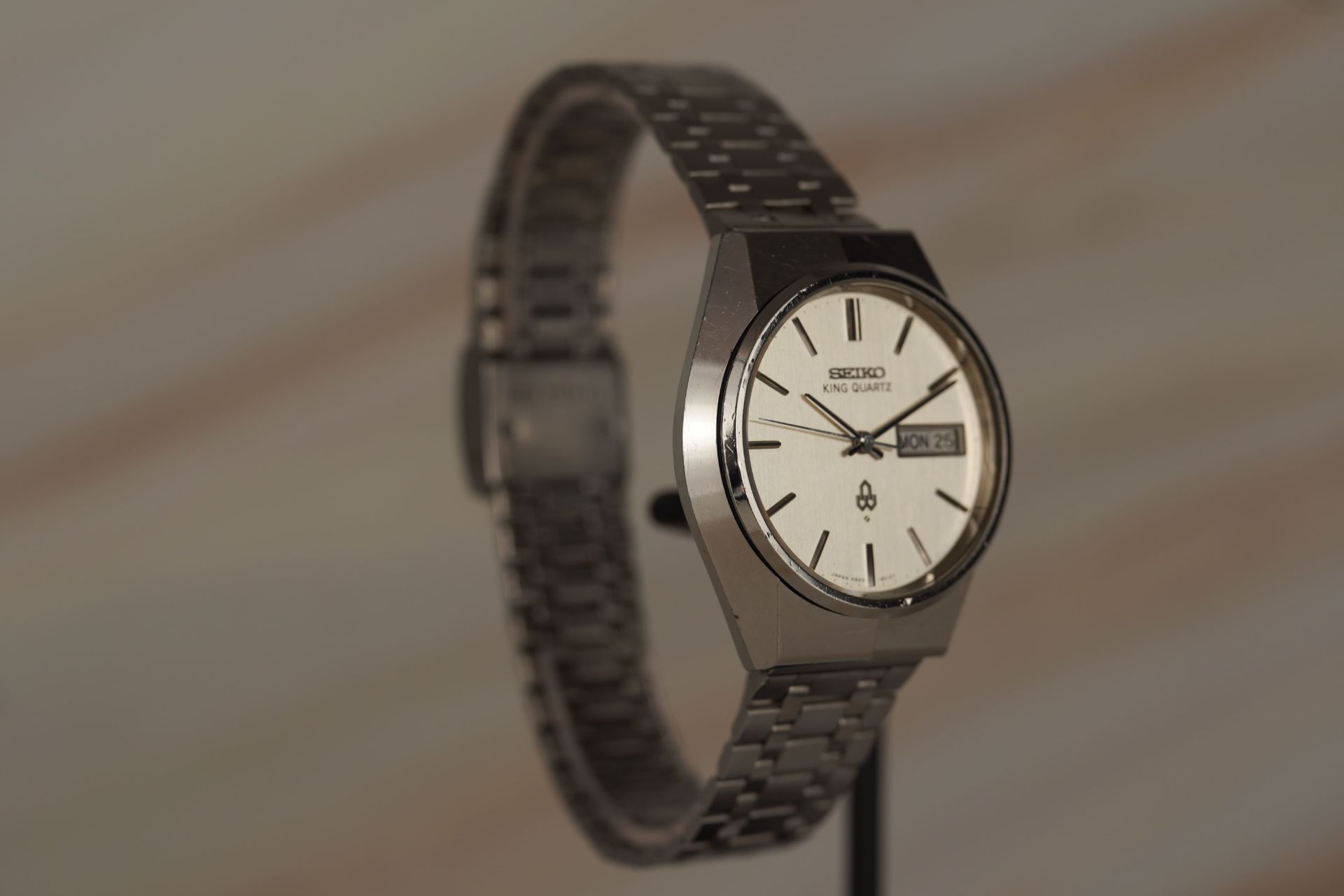 Découvrez la Seiko King Quartz, Référence commerciale 4823-8010 (Référence TOT : TOT-11080), une pièce unisexe de 1976. Son boîtier en acier de 36 mm de diamètre et 10,9 mm d’épaisseur abrite un mouvement Quartz précis. Bien que son bracelet et sa boucle « fermoir bijoux » ne soient pas d’origine, ils n’ôtent rien à son charme. Avec une étanchéité de 3 ATM, cette montre vintage en bon état est un témoignage de l’ingénierie horlogère de Seiko. Une garantie de 12 mois accompagne cette montre, livrée seule.