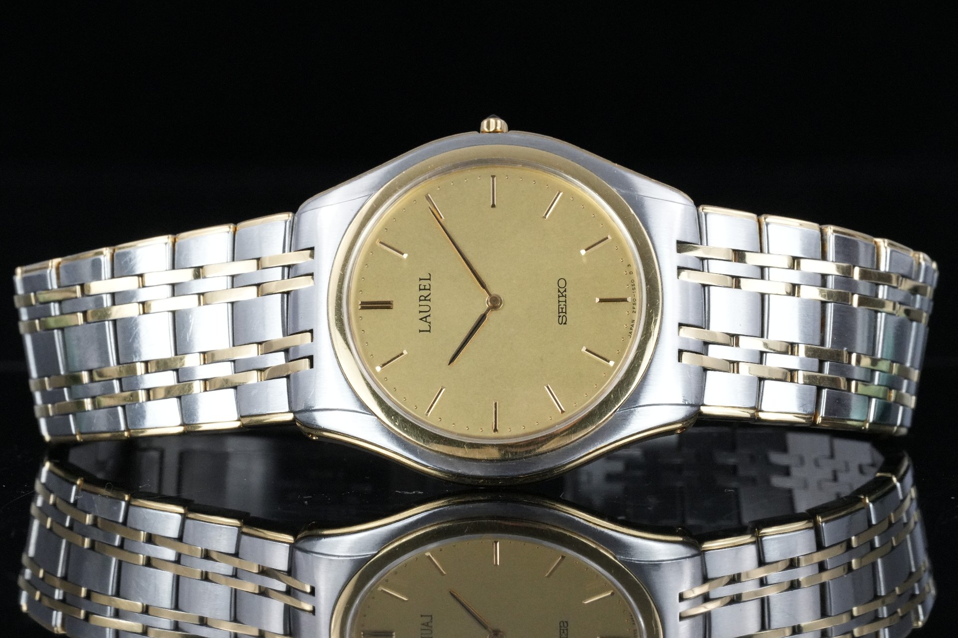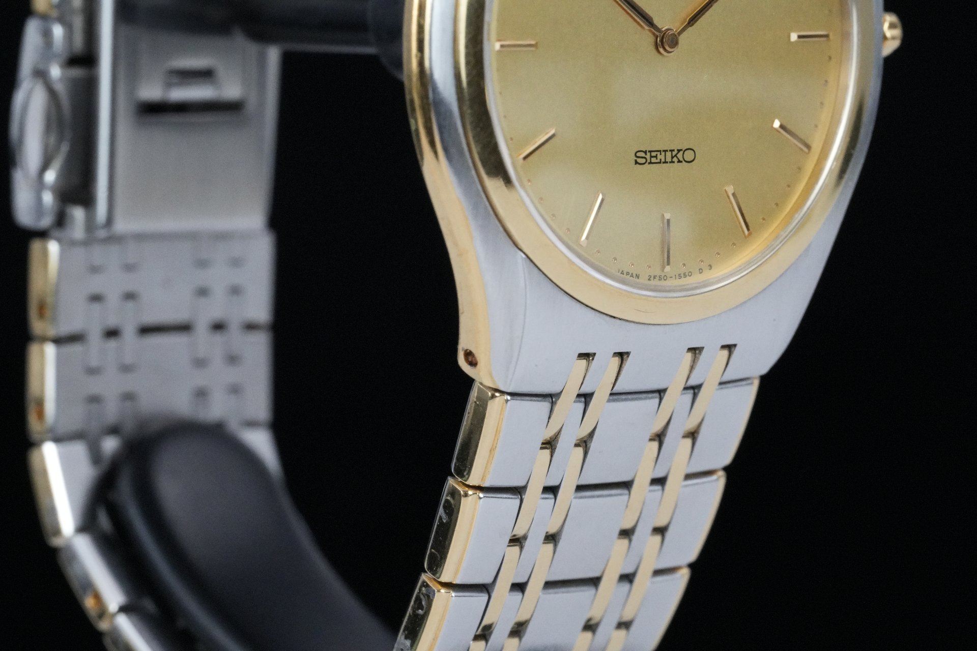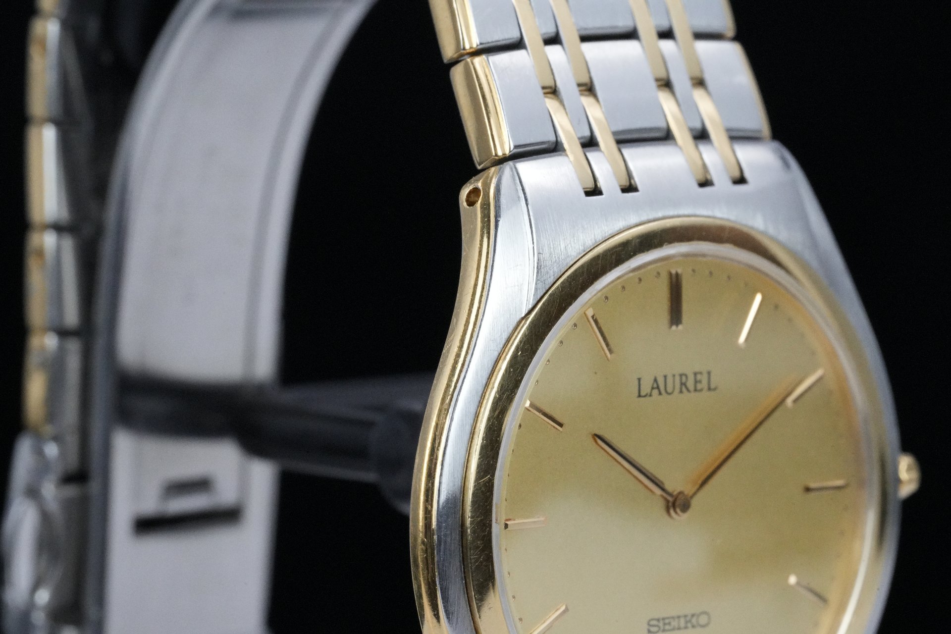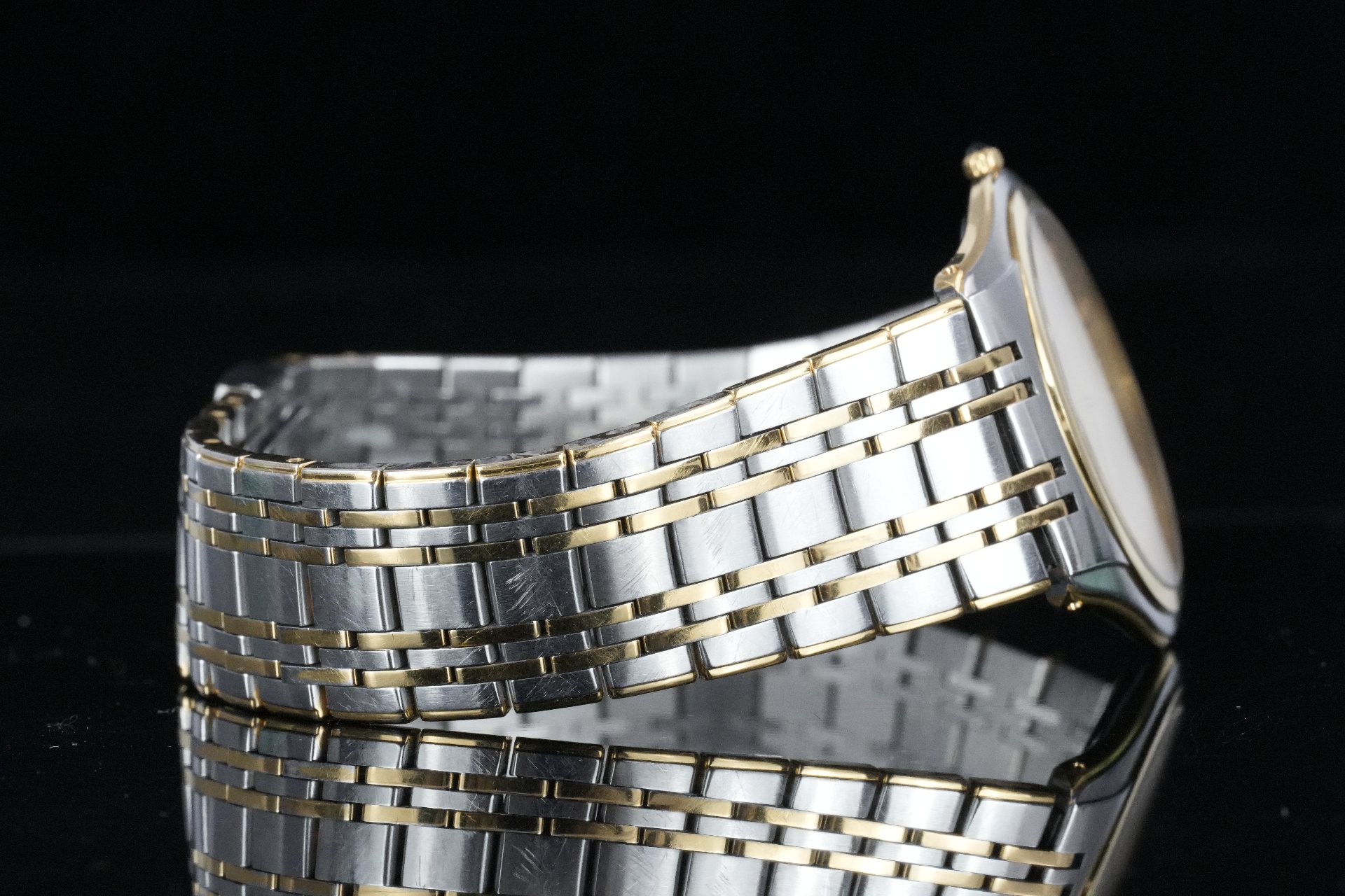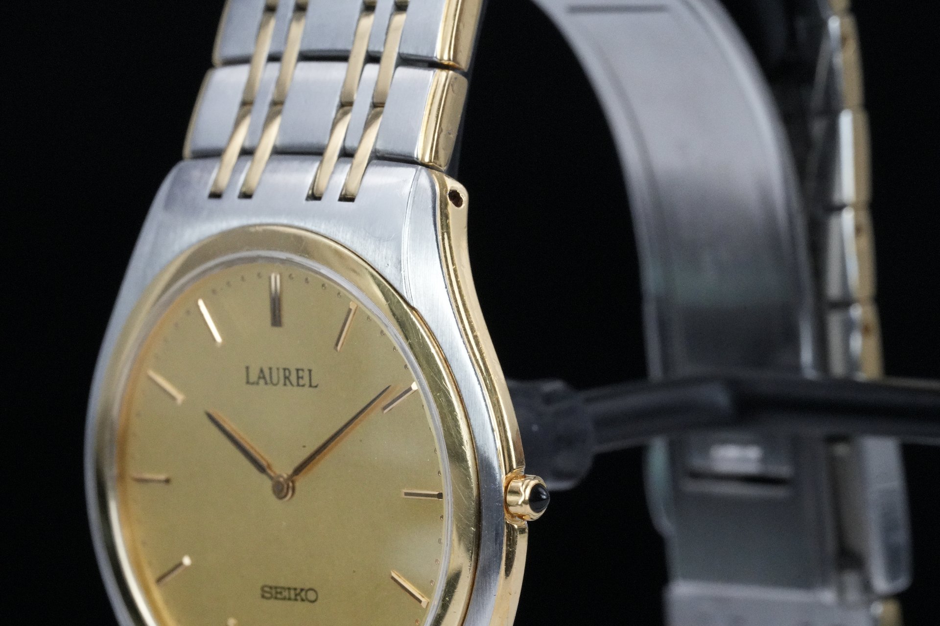 Découvrez l’élégance intemporelle de la Seiko Laurel (référence commerciale 2F50-0310, référence TOT-10393), une pièce unisexe au charme discret. Son boîtier en Or/Acier de 33 mm de diamètre et 4.7 mm d’épaisseur abrite un mouvement à Quartz d’une fiabilité éprouvée. Le bracelet original en Acier bicolore de 18 cm, parfaitement intégré, est complété par une boucle déployante originale, garantissant confort et sécurité au poignet. Cette montre, livrée seule, est en bon état et bénéficie d’une garantie de 12 mois.