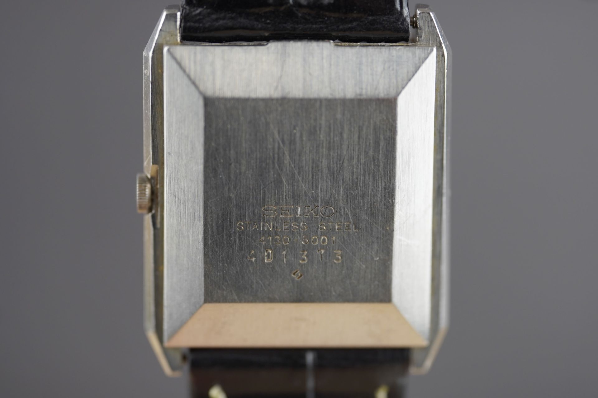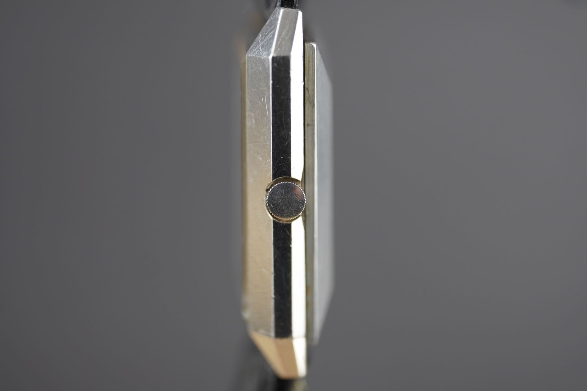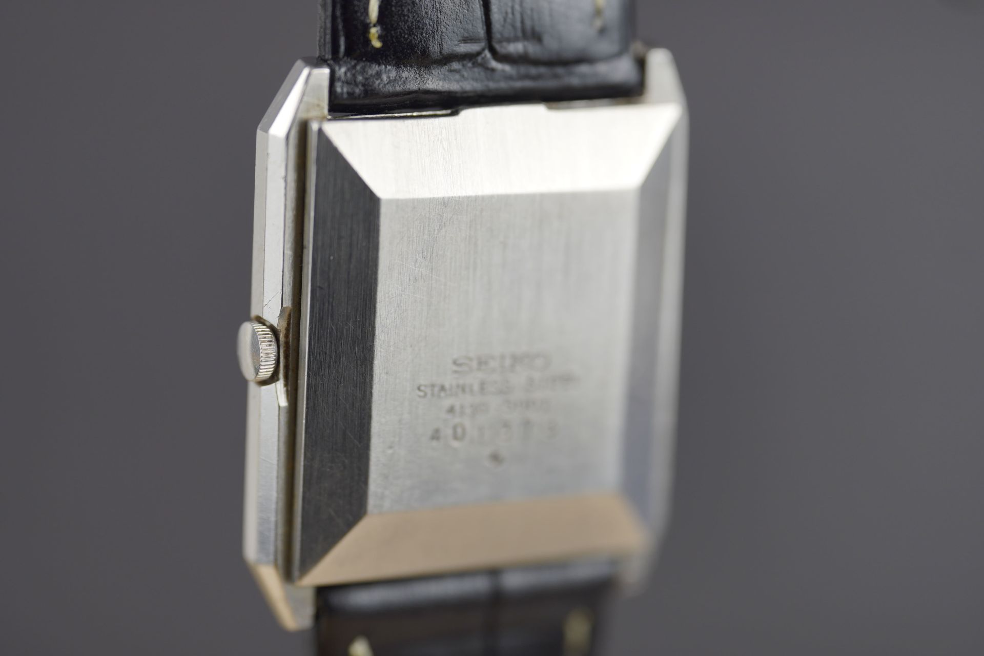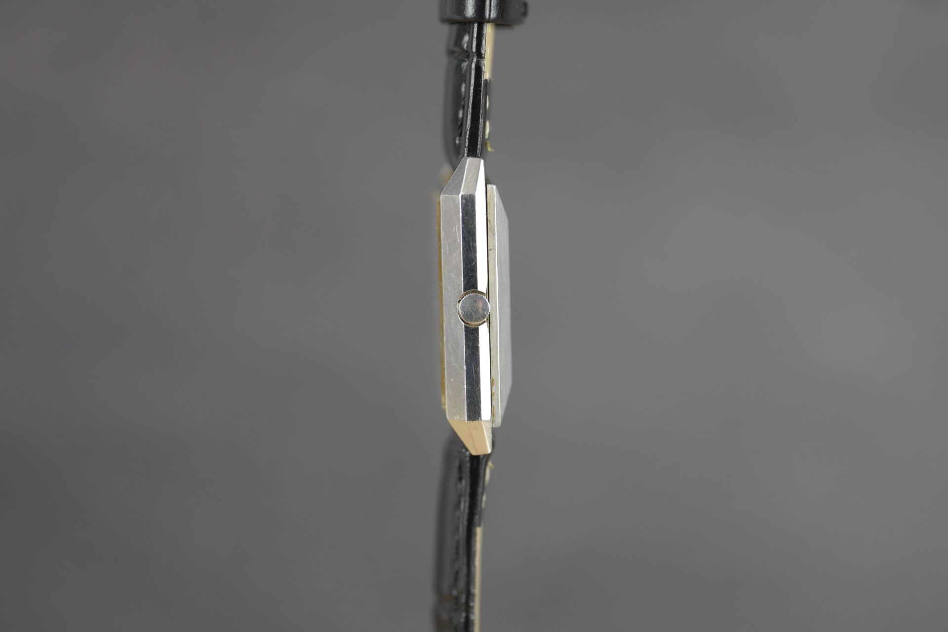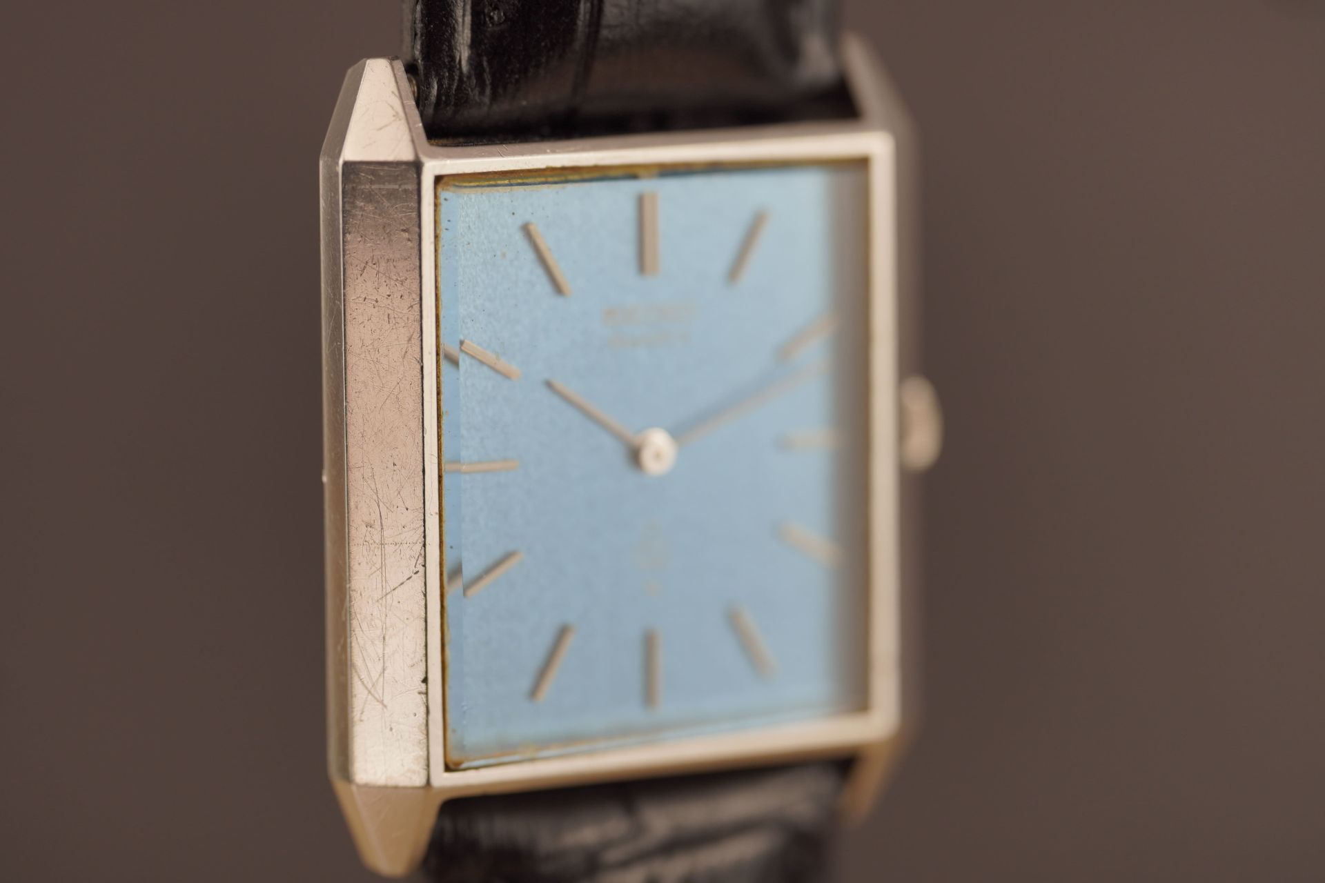 Découvrez le charme intemporel de la Seiko « Tank » Quartz, une pièce unisexe qui évoque l’élégance classique. Son boîtier en acier de 28 mm de diamètre et de seulement 8,2 mm d’épaisseur abrite un mouvement Quartz précis, symbolisant la fiabilité à l’état pur. Le bracelet en cuir noir, non-original, et sa boucle ardillon, également non-originale, s’harmonisent parfaitement avec le design épuré de cette montre. Produite en 1974, cette Seiko « Tank » est livrée seule et bénéficie d’une garantie de 12 mois.